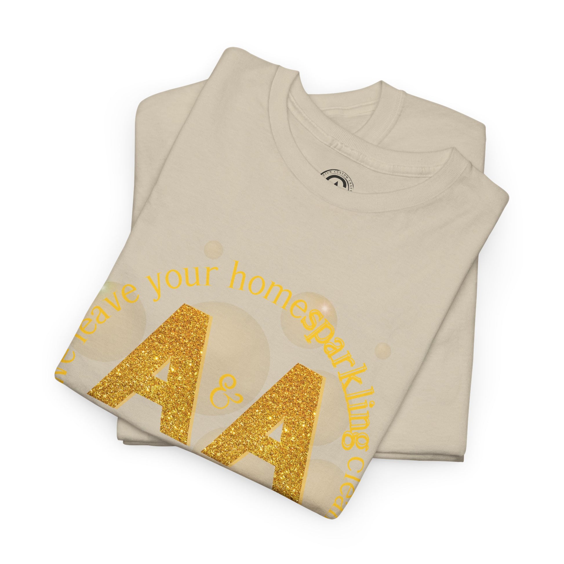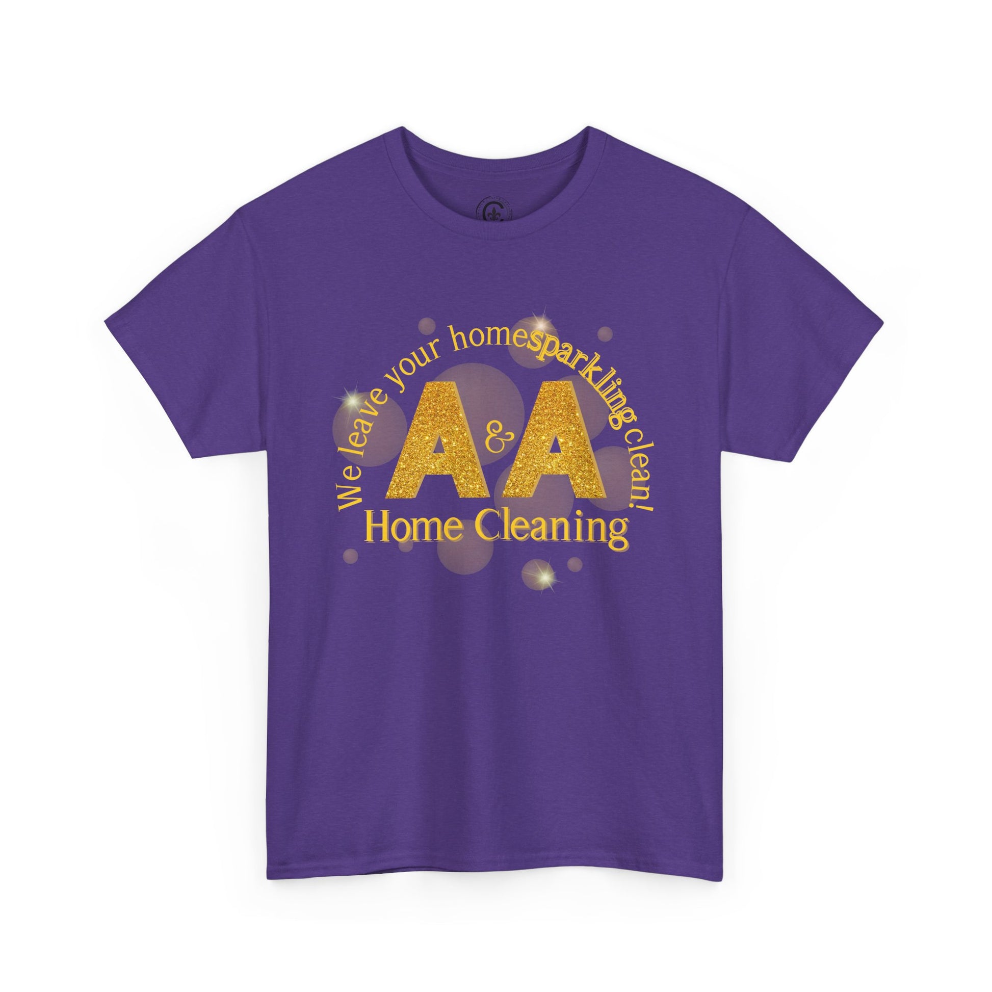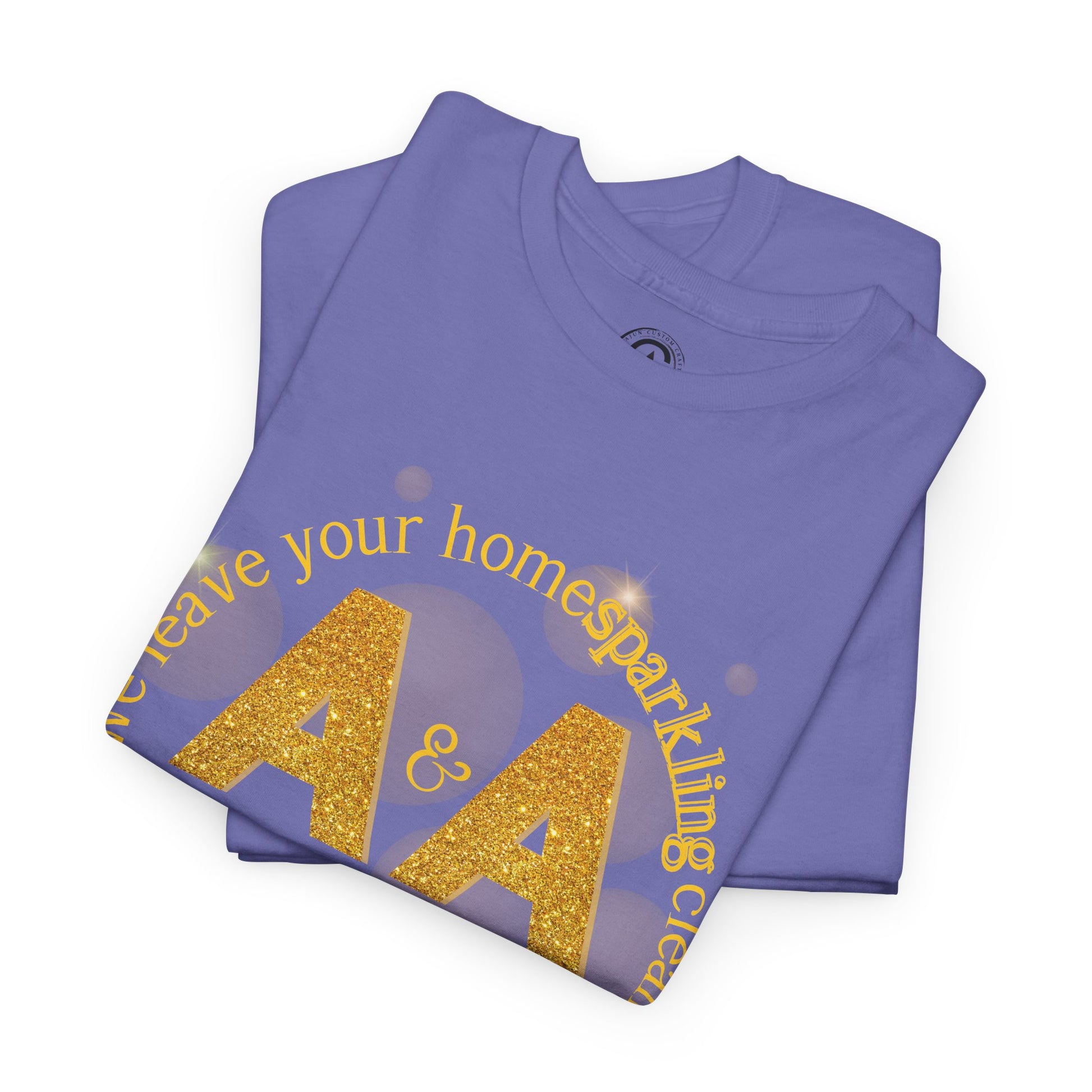 A&A Cleaning Services, Logo, Gold on Purple Crew Neck unisex tshirt, Gildan