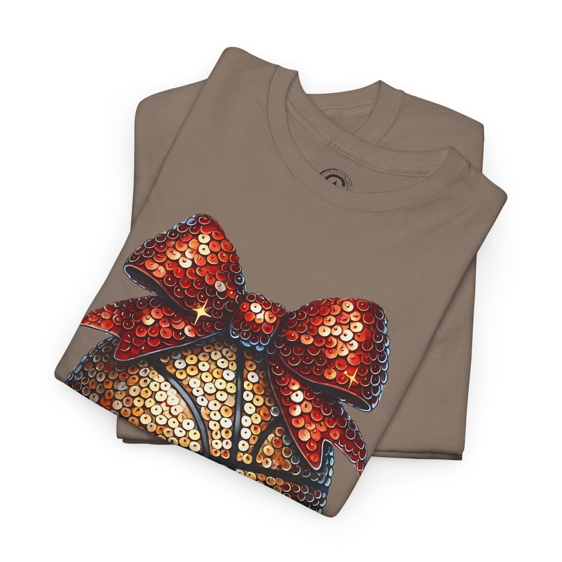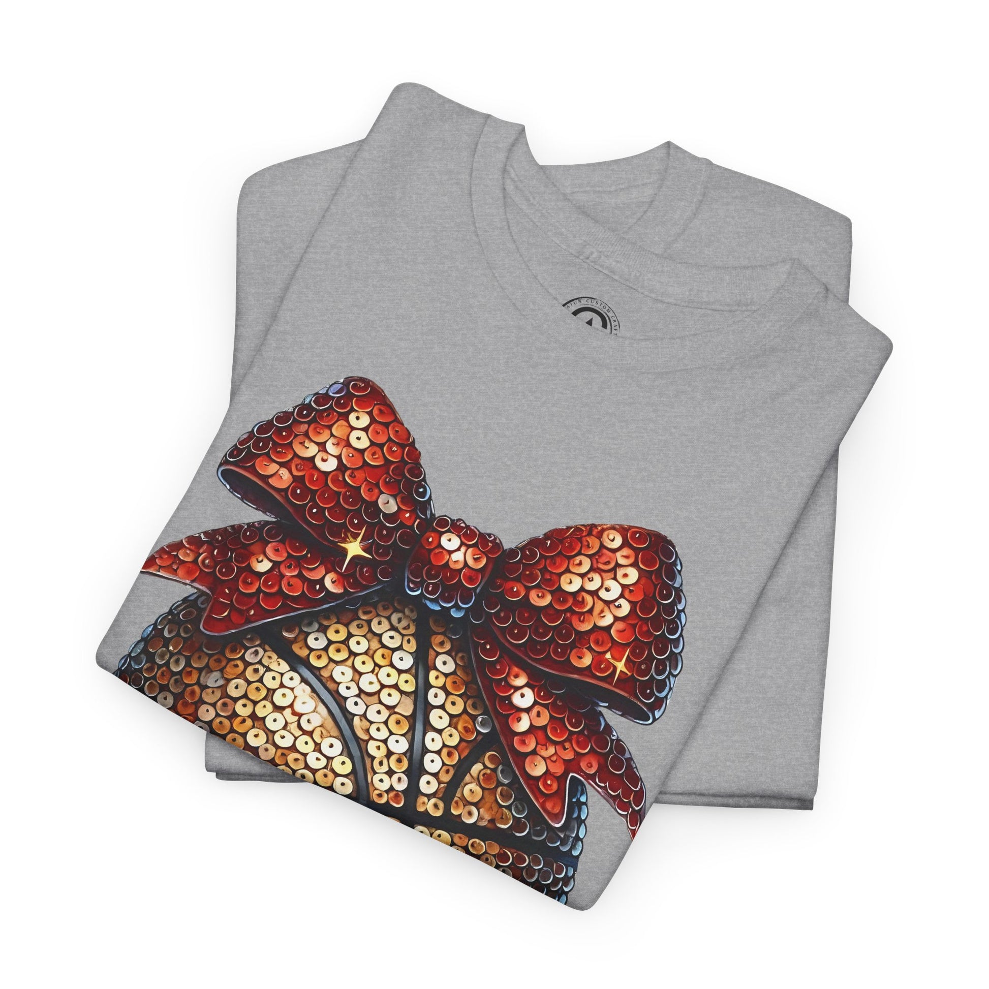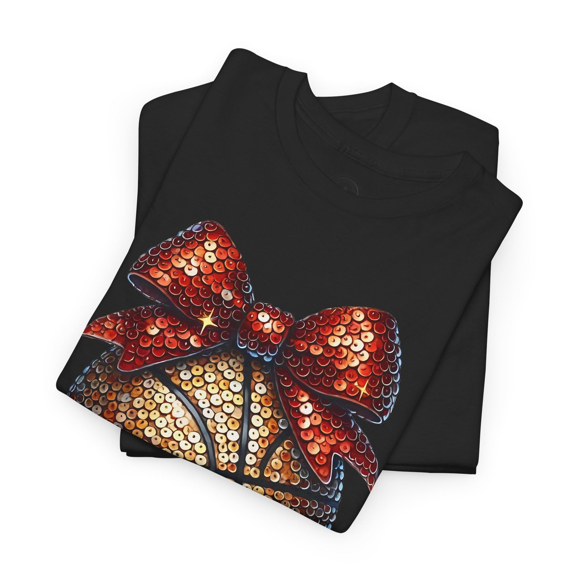 Basketball Glitter with a Bow Tee: Unisex Heavy Cotton Shirt for Sports Lovers, Gift, Basketball Fans