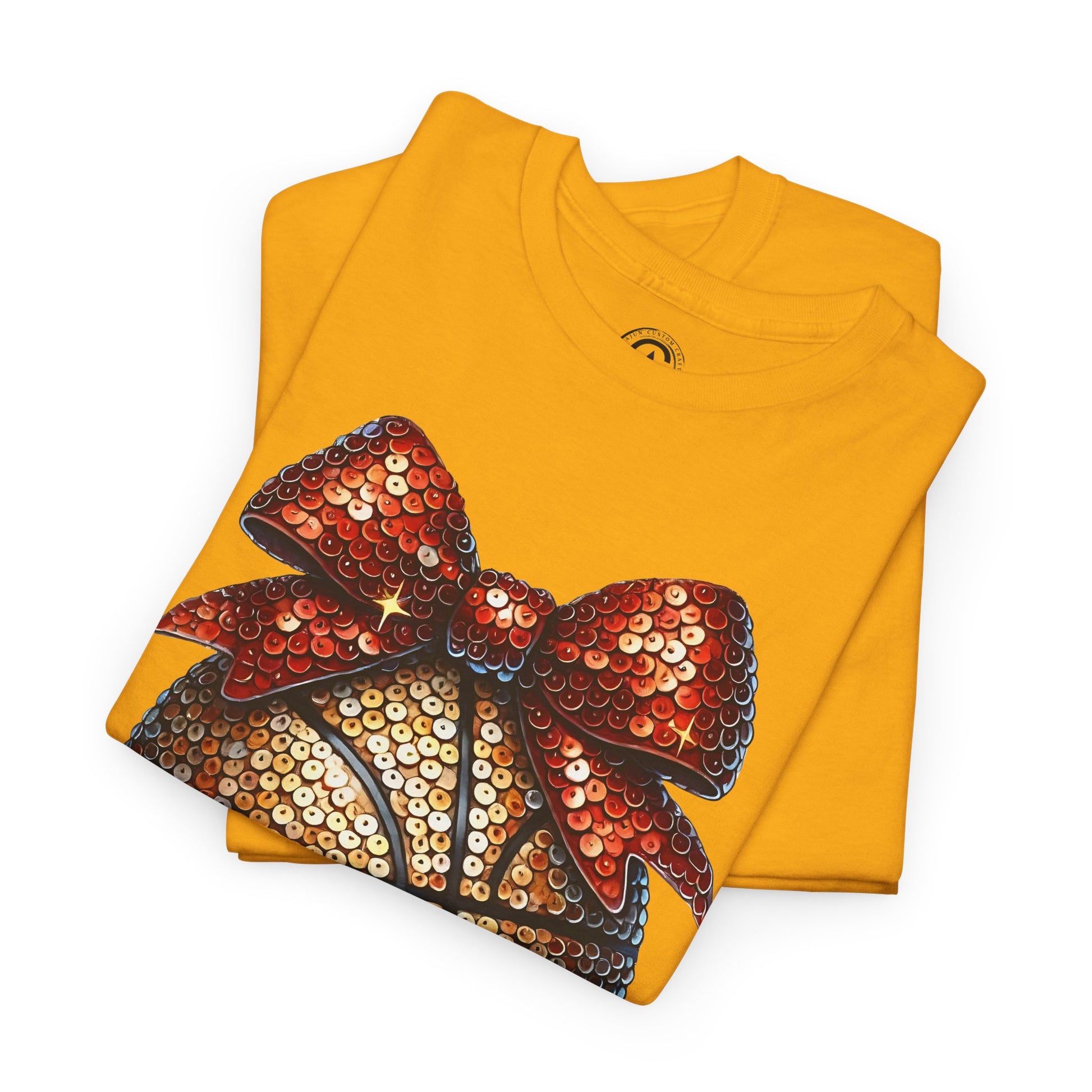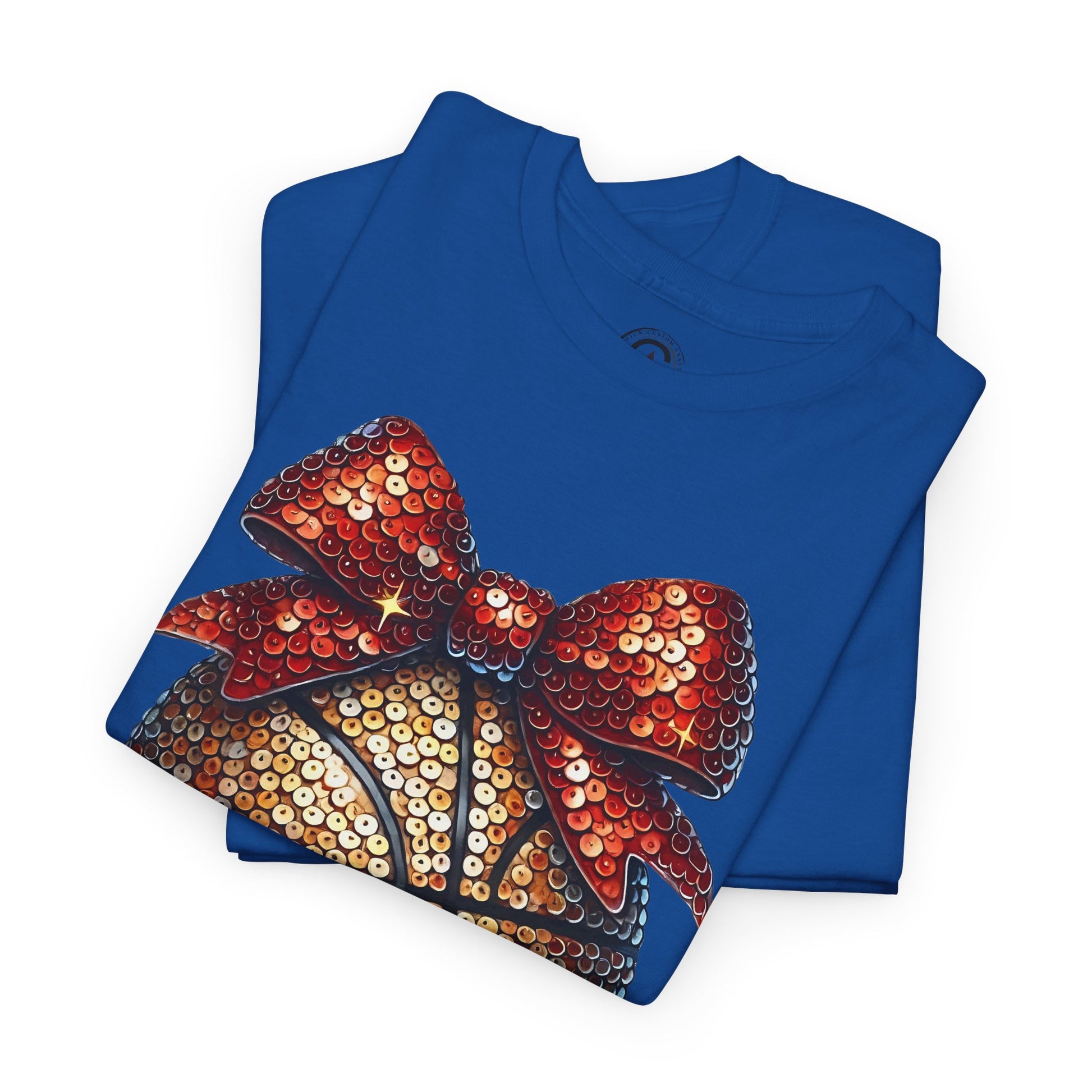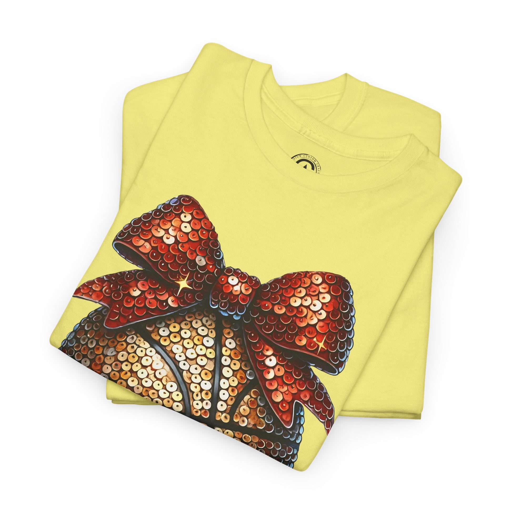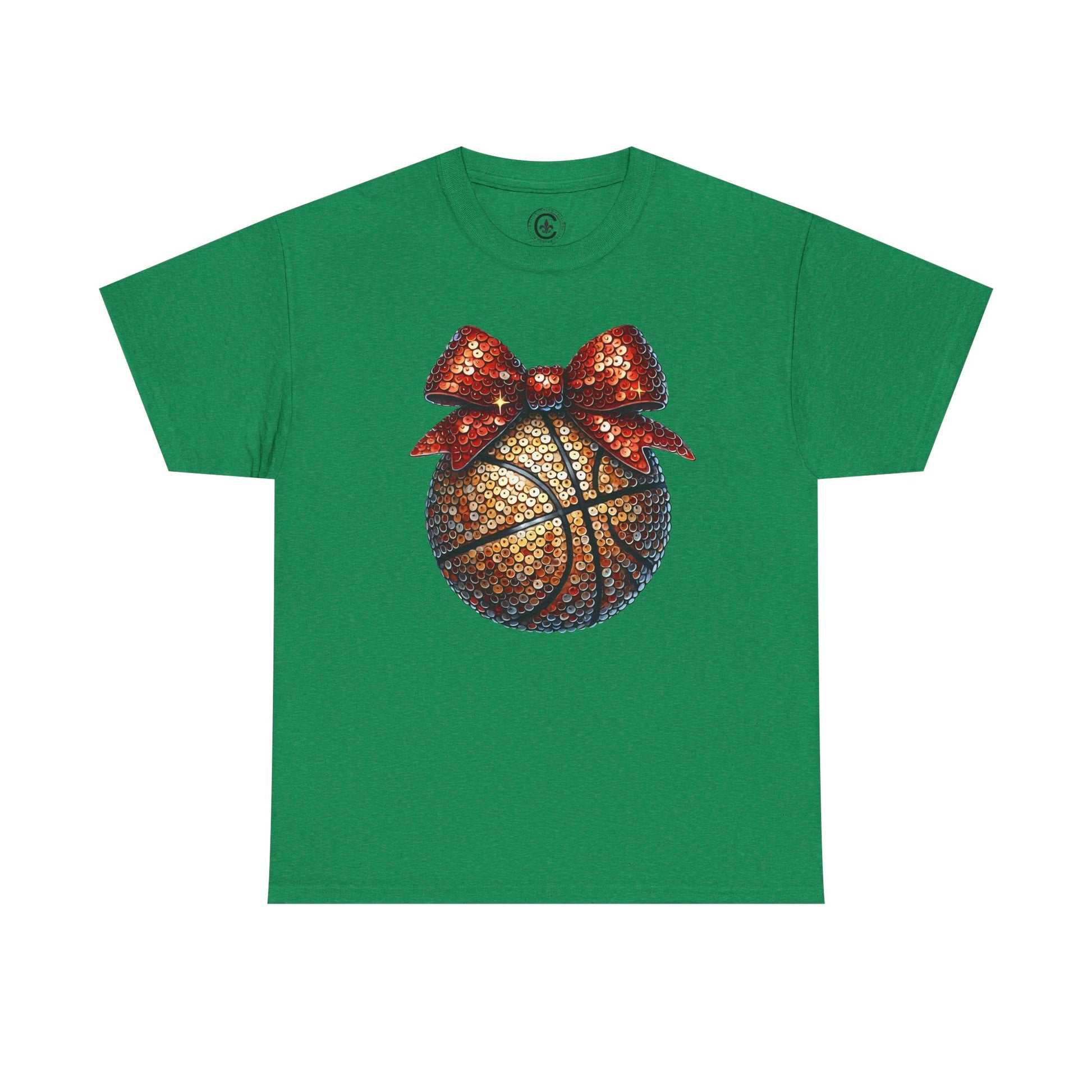 Basketball Glitter with a Bow Tee: Unisex Heavy Cotton Shirt for Sports Lovers, Gift, Basketball Fans