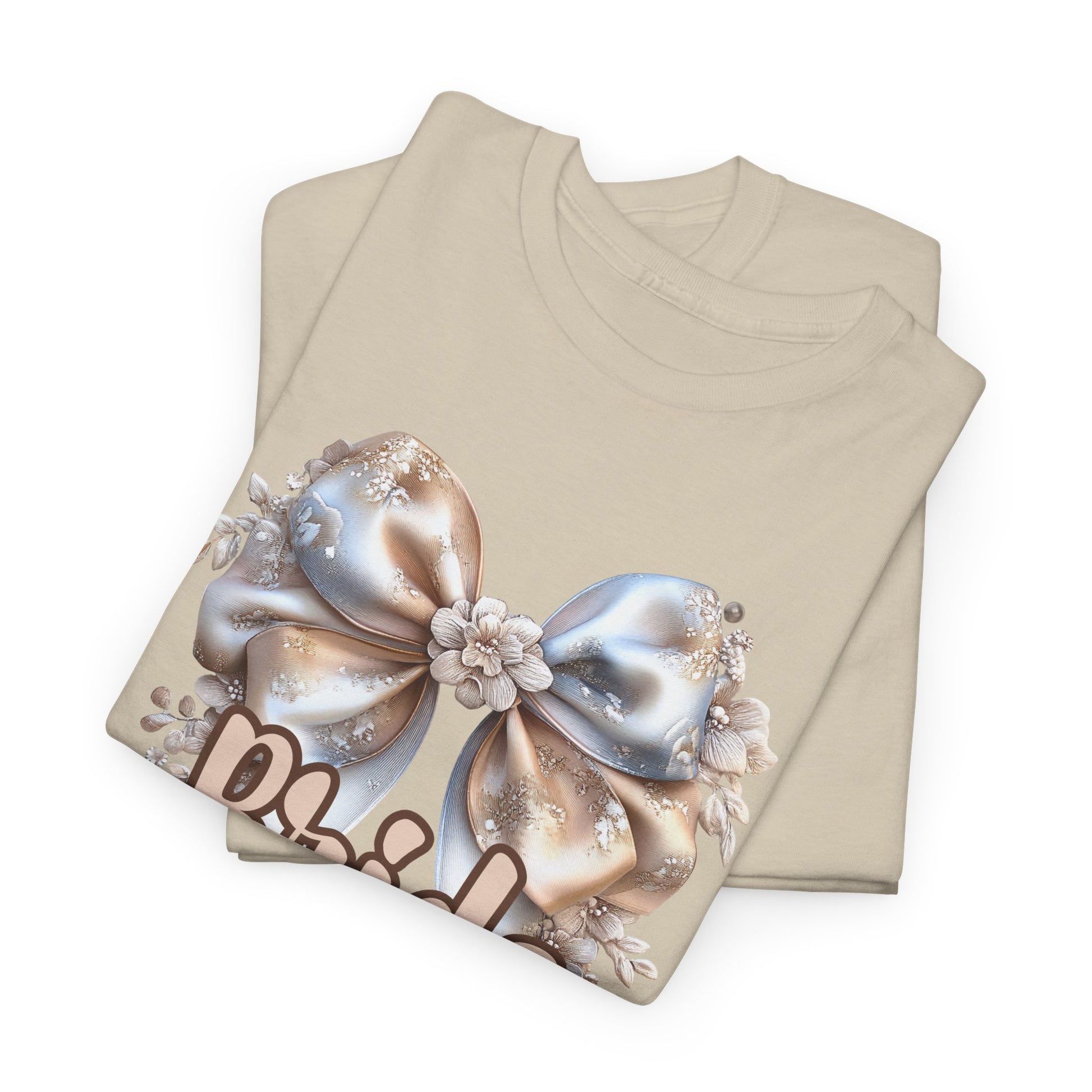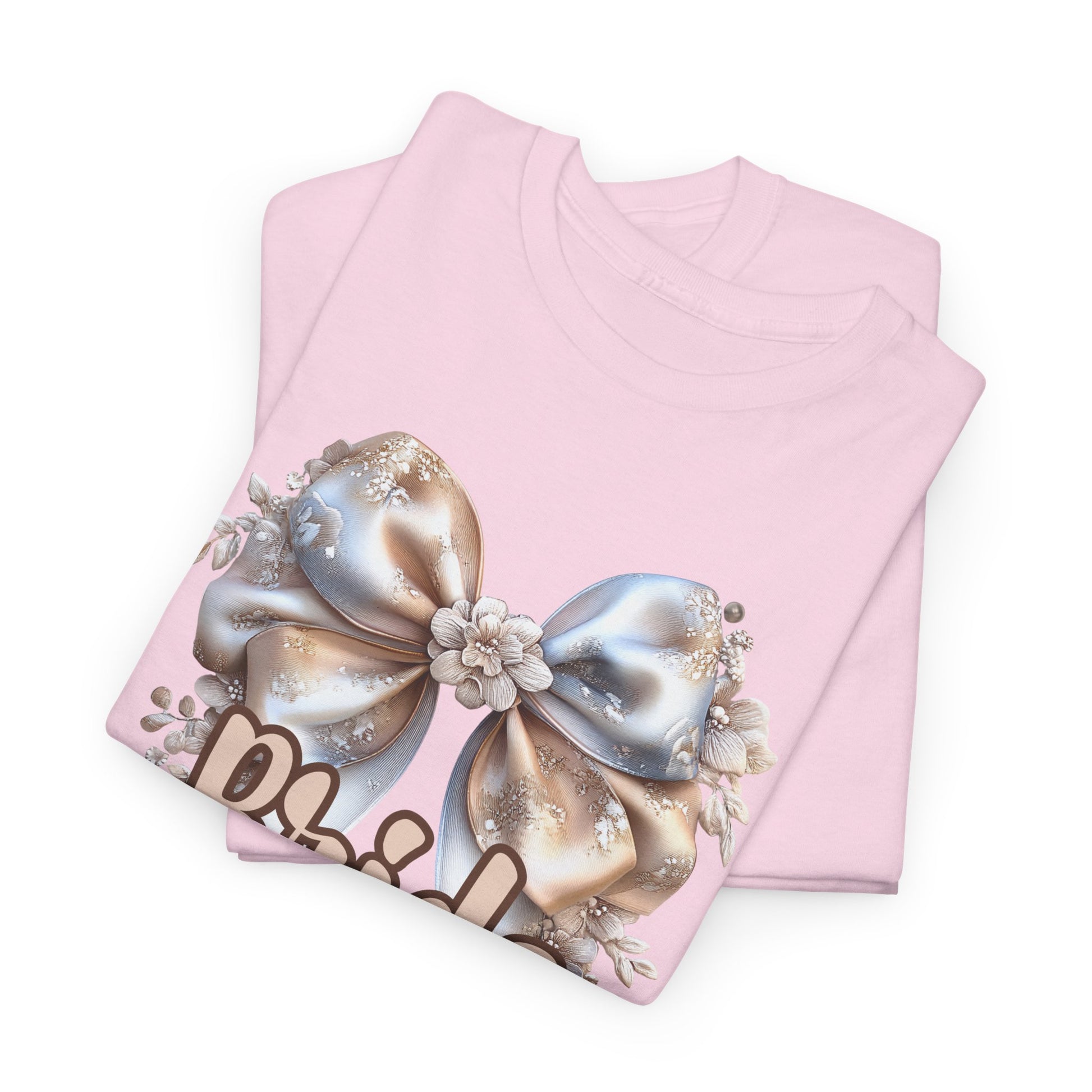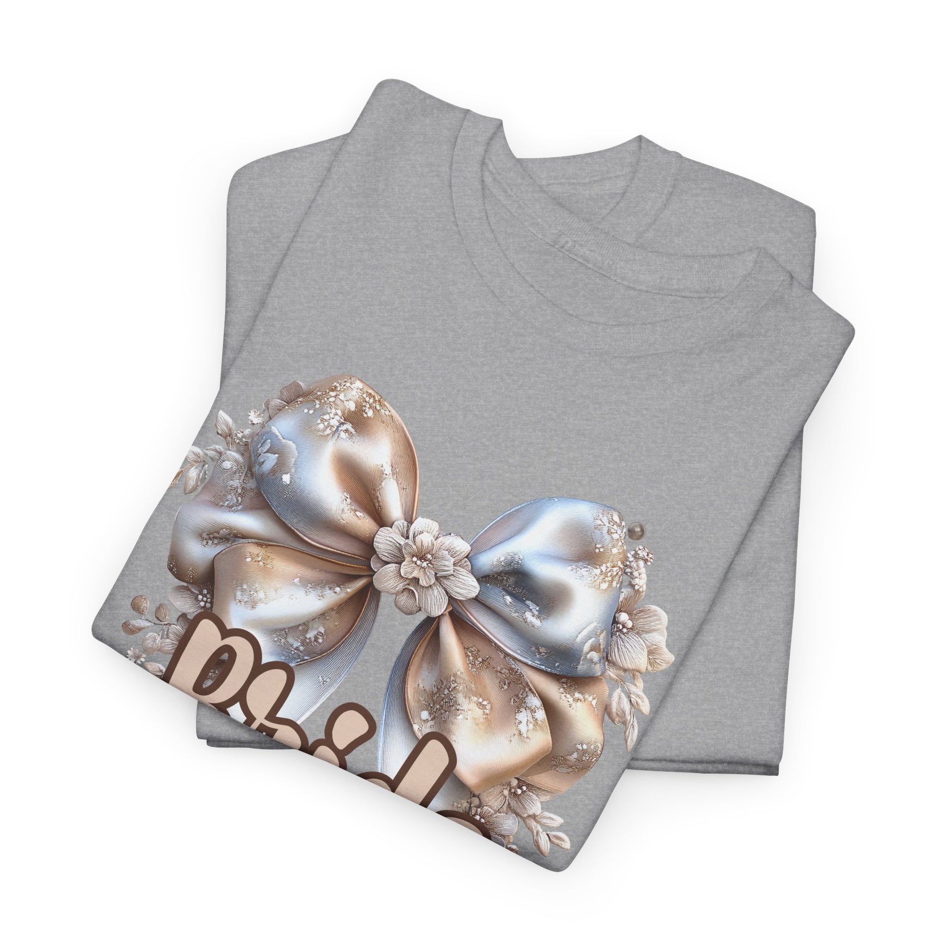 Introducing this stylish Unisex Heavy Cotton Tee, perfect for celebrating love and special moments. With its eye-catching design featuring a beautiful bow and the word 'Bride,' this tee sets a joyful and celebratory atmosphere. Ideal for brides-to-be and their bridal parties, it seamlessly fits into bachelorette parties, bridal showers, or casual wedding events. Made from soft, durable fabric, it promises comfort that lasts through any celebration. Whether you're dancing the night away or enjoying a cozy get-together, this tee is a must-have for anyone looking to showcase their excitement and style during wedding festivities and beyond.