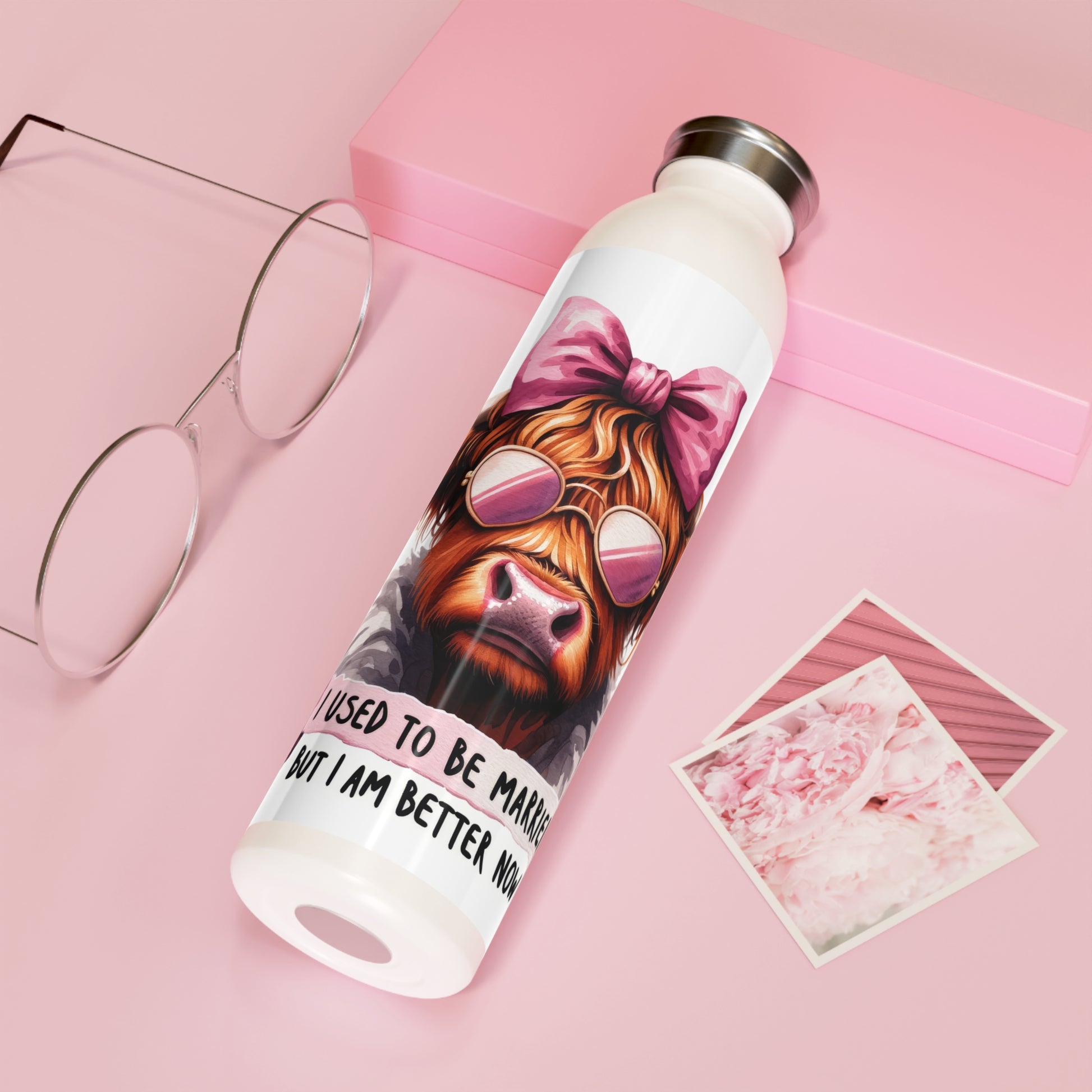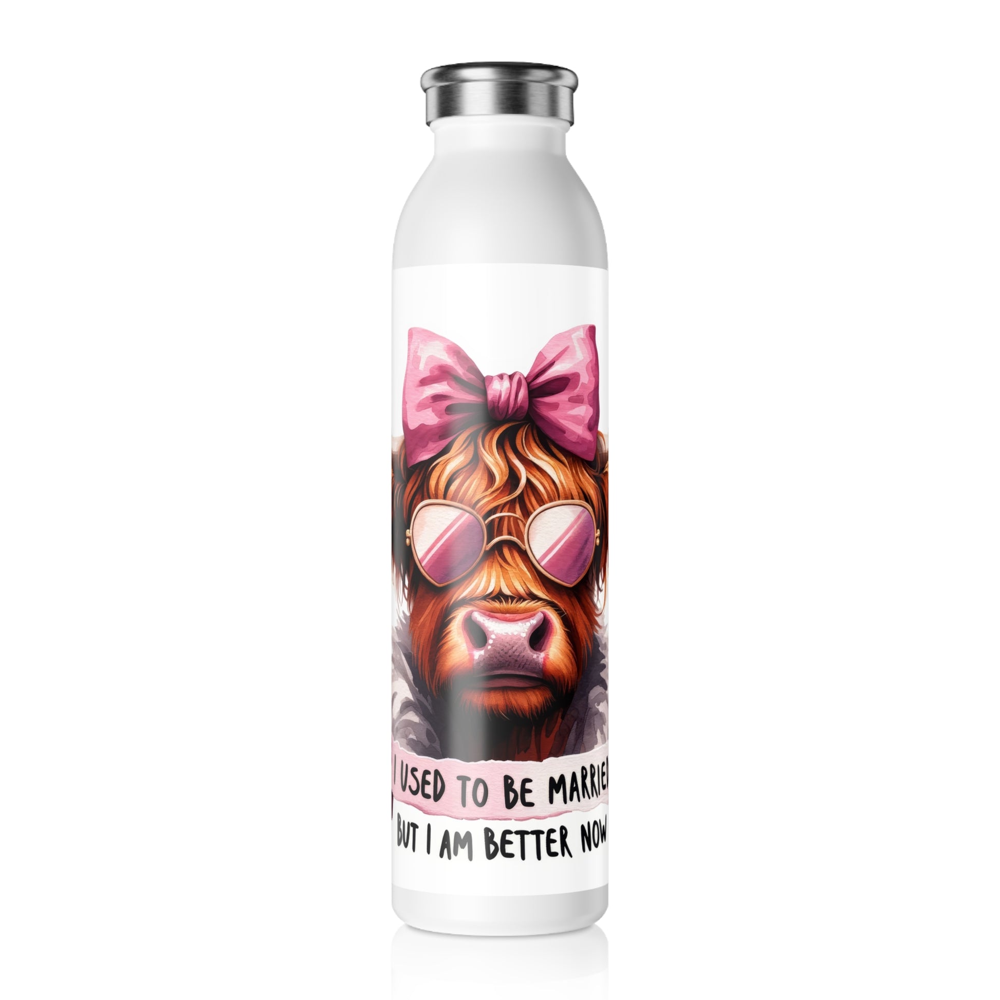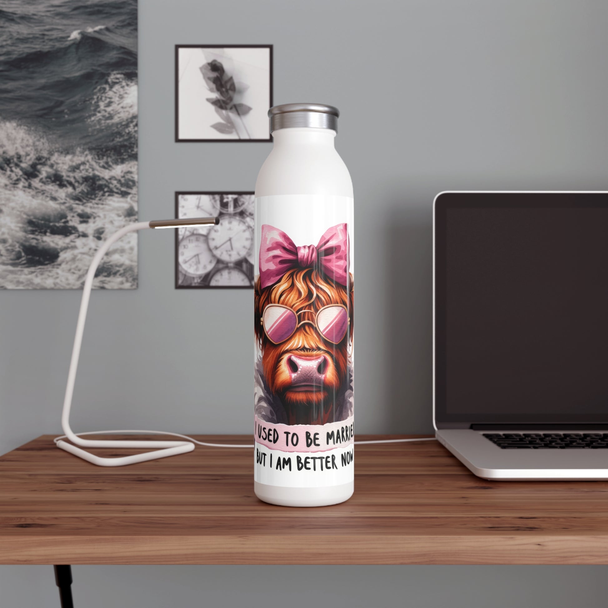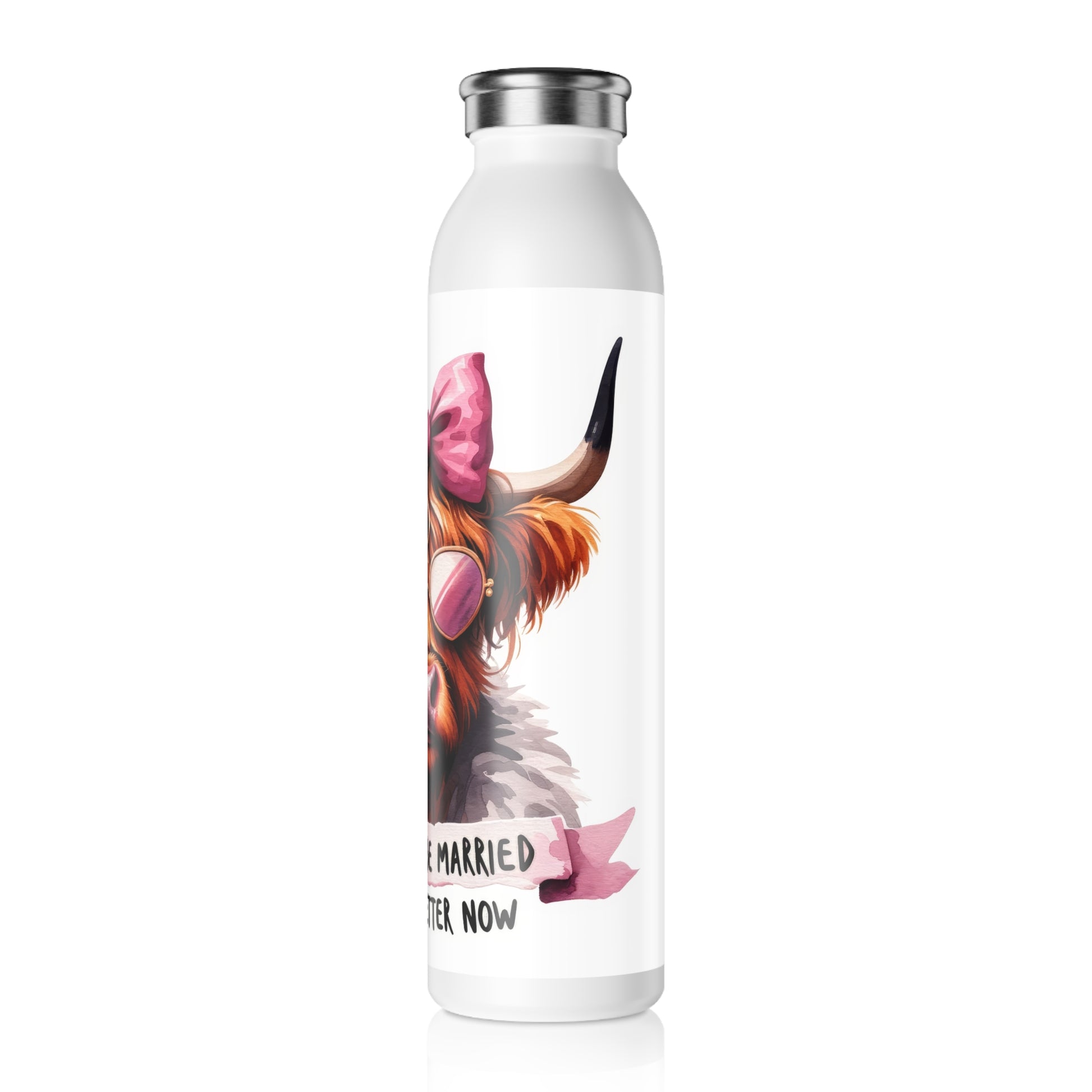 Chic Highland Cow Slim Water Bottle, Funny Gift for Her, Cute Sports Hydration Flask, Travel Bottle for Daily Use, Perfect for Birthdays