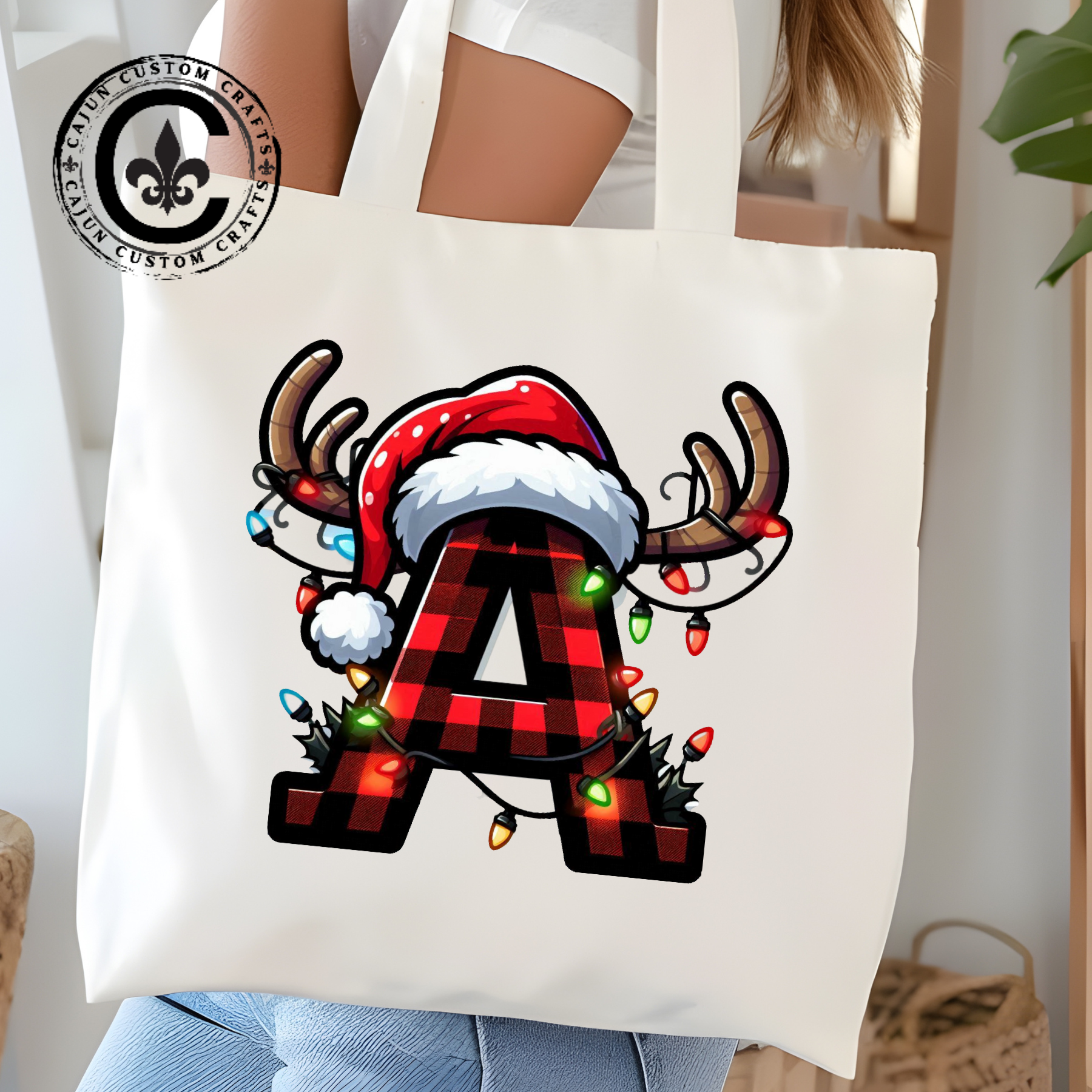 Christmas Monogram A Cotton Canvas Tote Bag, Personalized Holiday Tote, Eco-Friendly Gift, Stylish Shopping Bag, Reusable Christmas Shopper