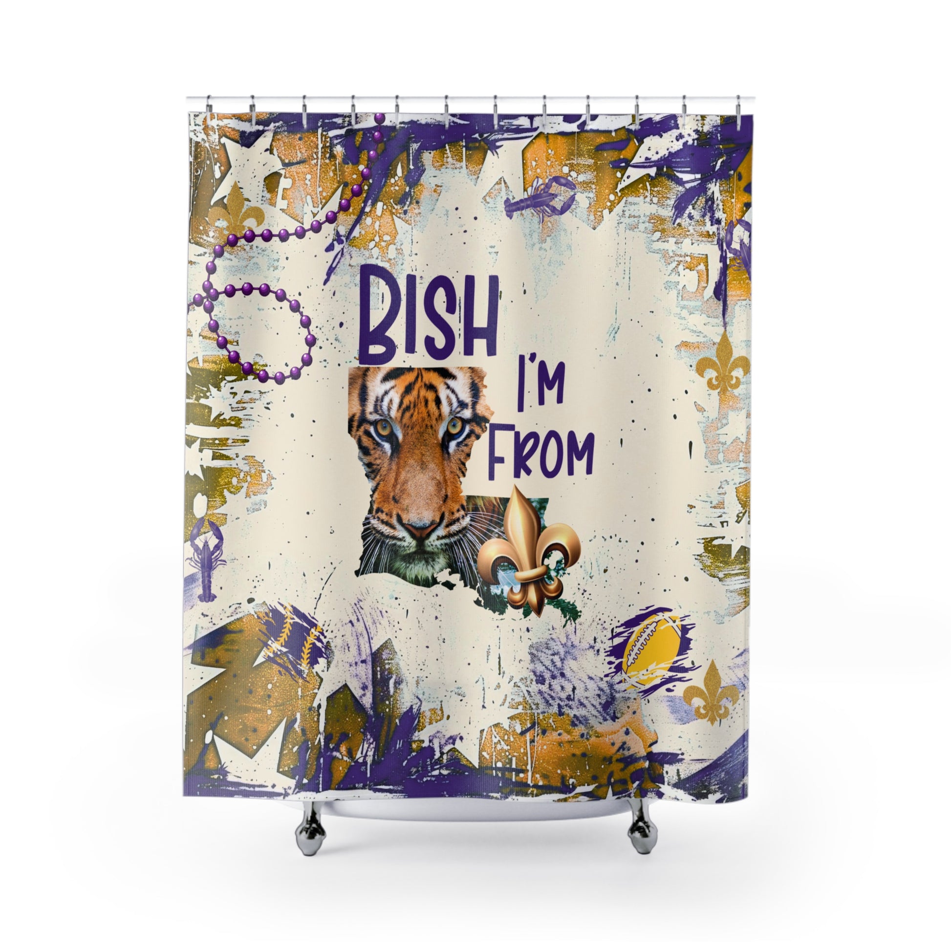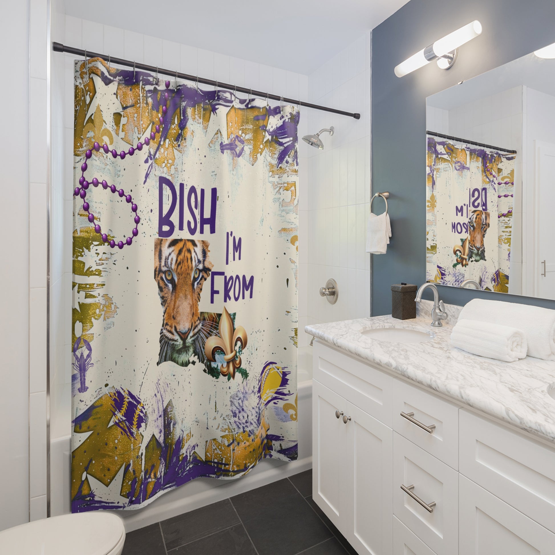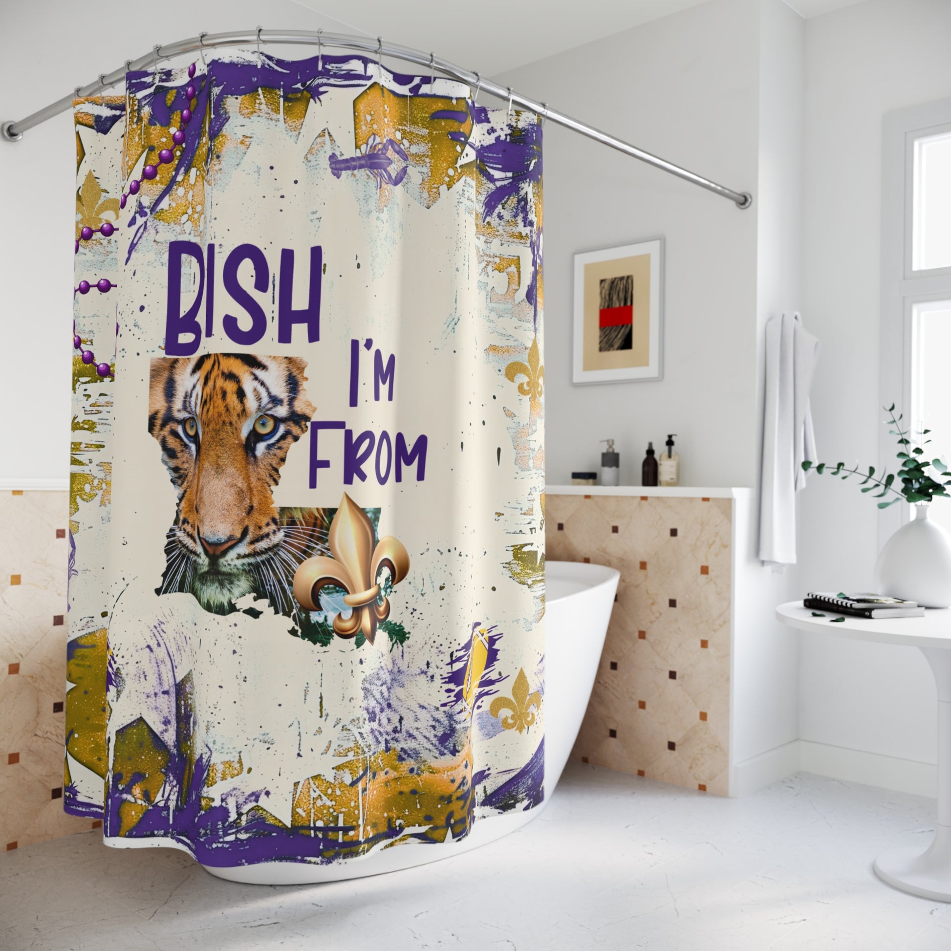 Colorful Shower Curtain with Tiger Design, I'm From Louisiana, Tiger pride in your bathroom!