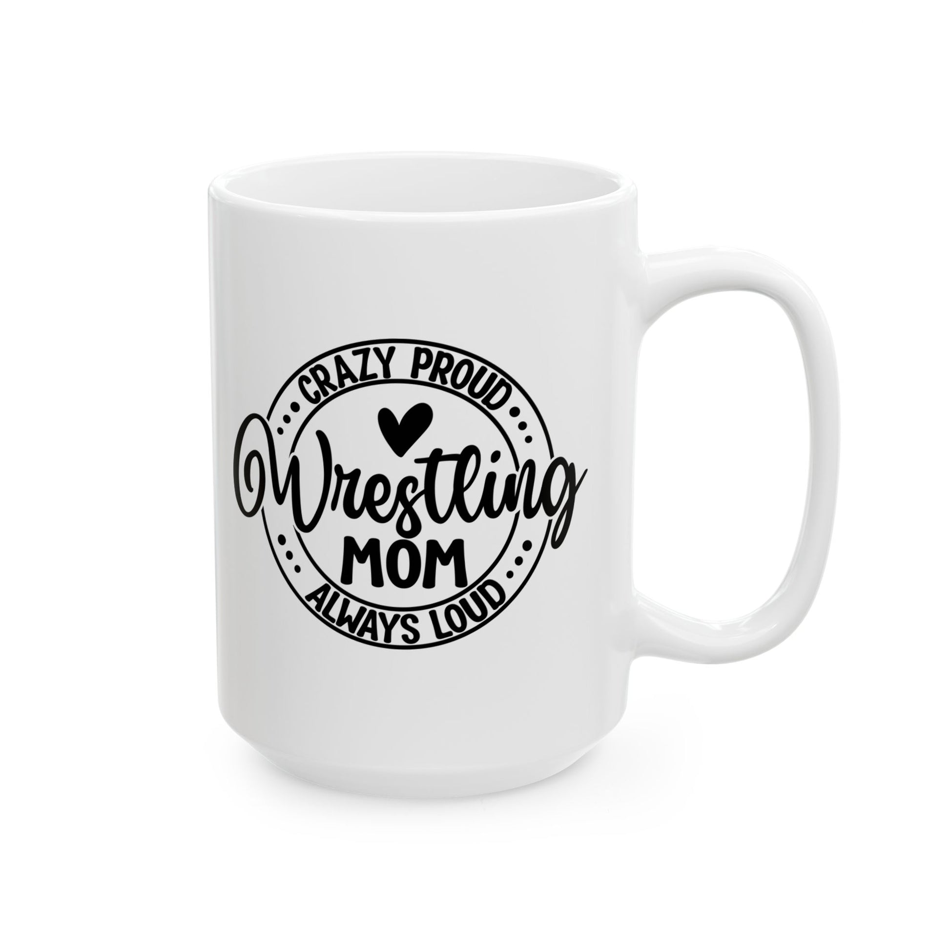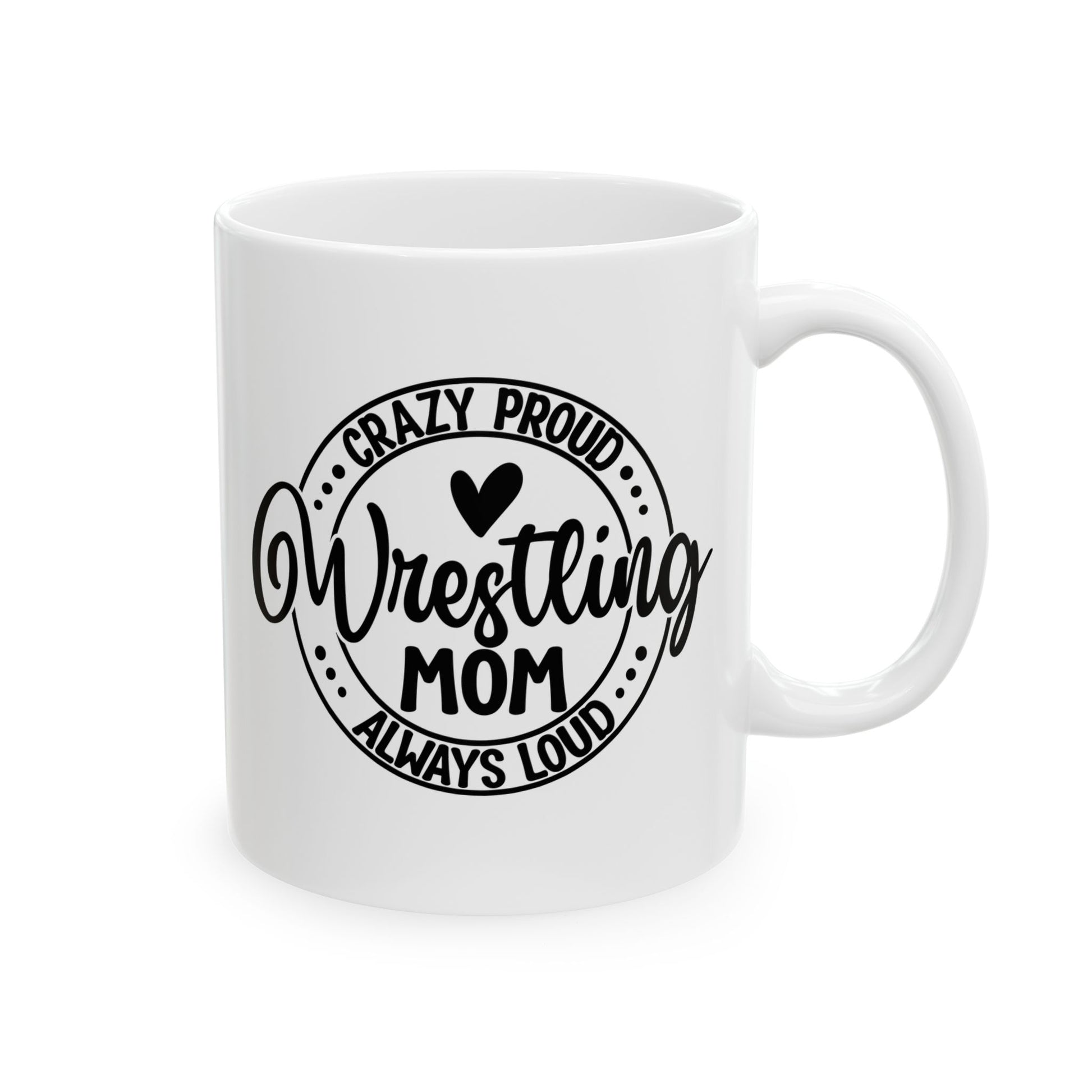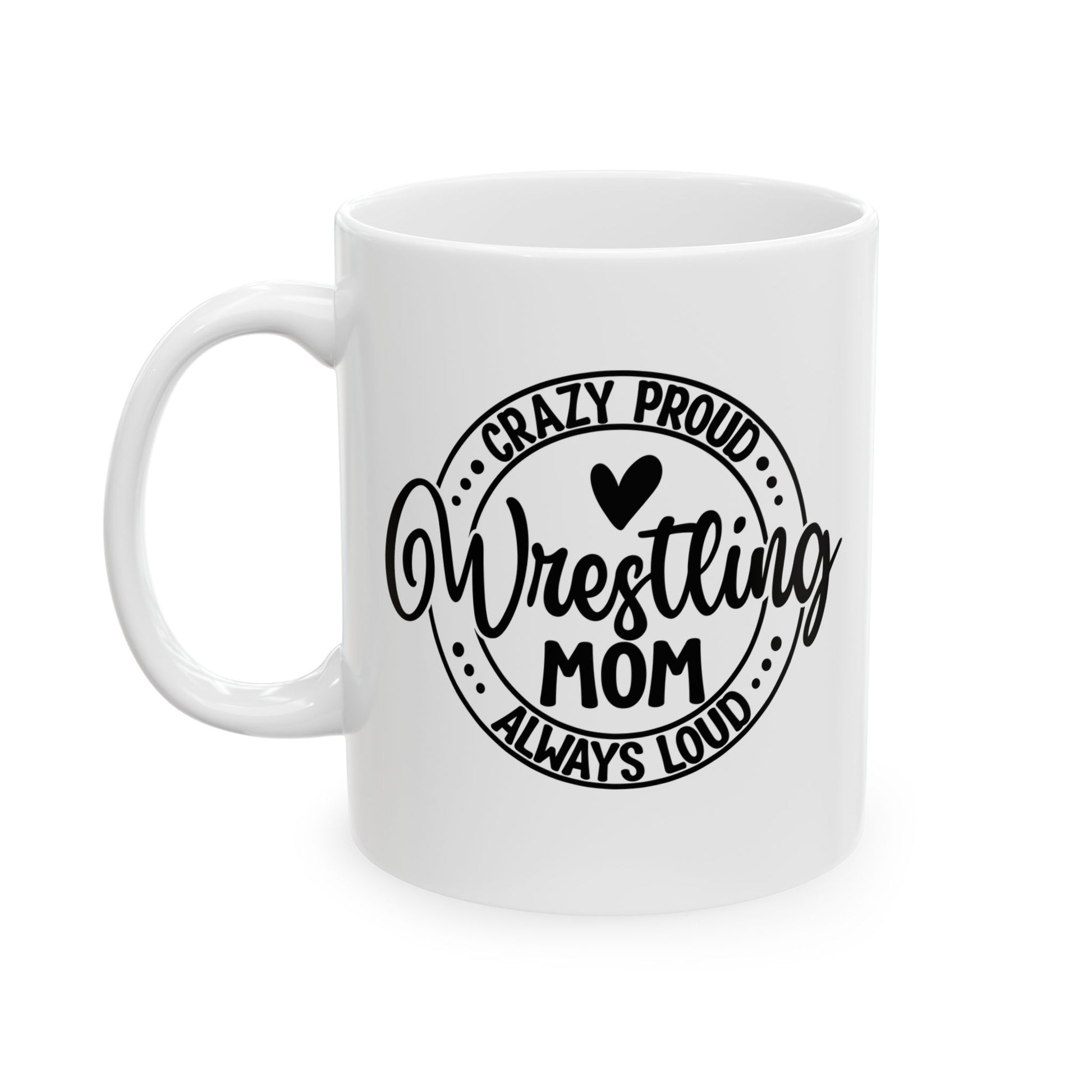Crazy Loud Wrestling Mom Coffee Lover's Ceramic Mug, Inspirational Gift, Handlettered Quote, Great for Birthdays, Home Office, Cozy Vibes, Unique Design