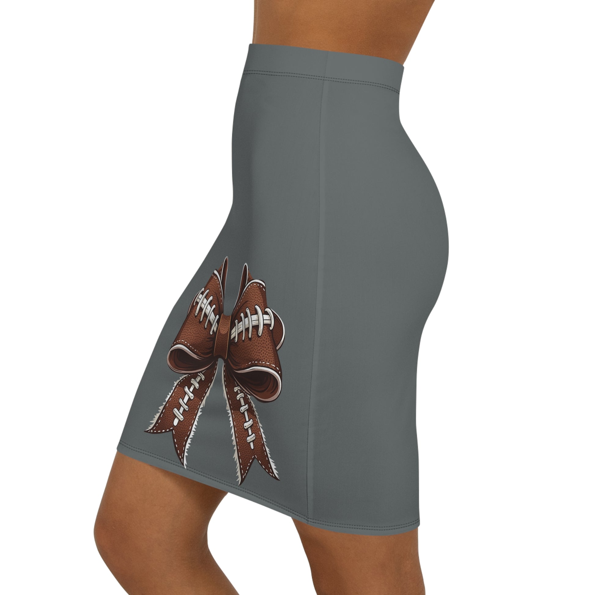 Dark Grey Football Bow Women's Pencil Skirt, Stylish SkirtFun Night Out, Team Spirit! Game Day, homecoming