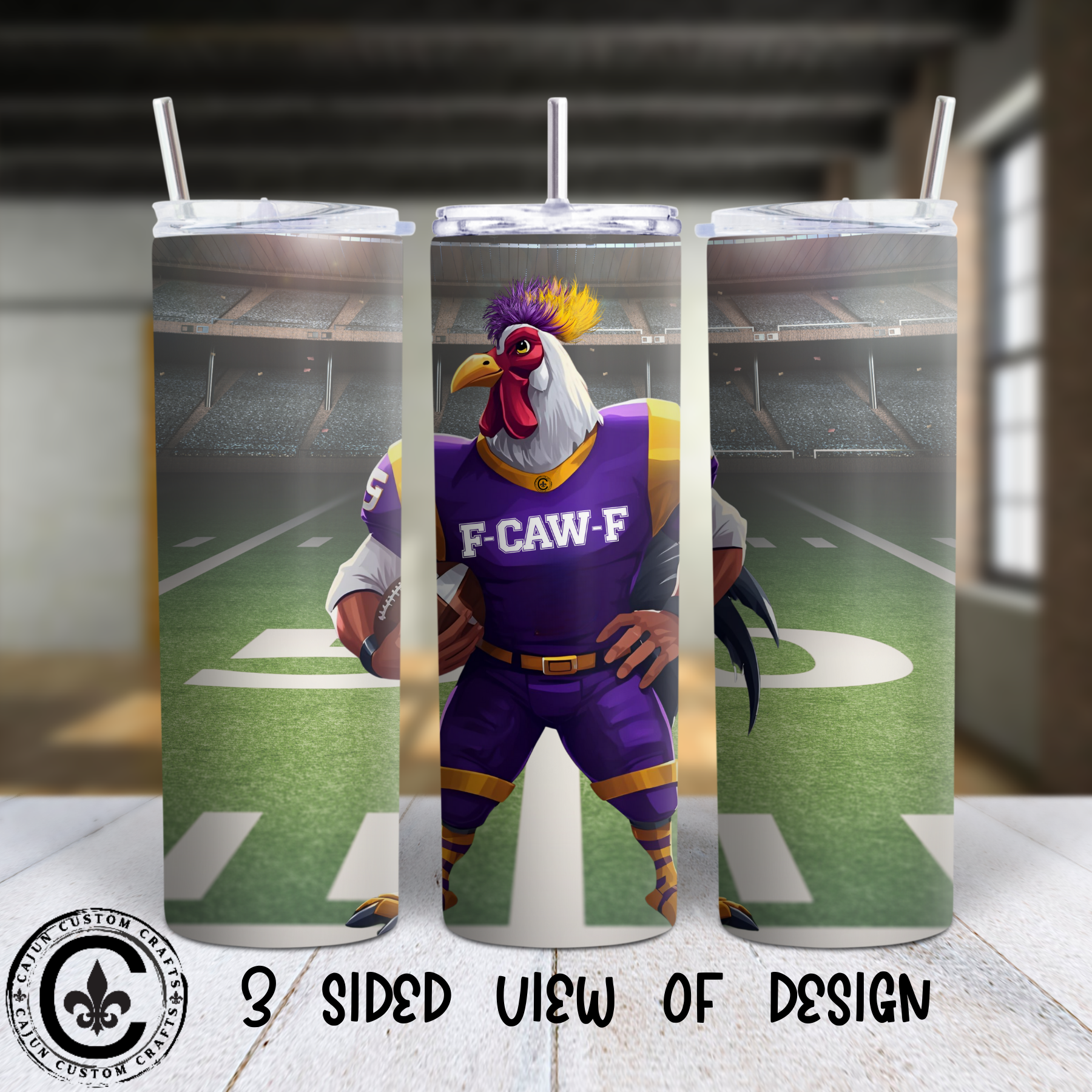 F-CAW-F Football Player,Rooster, Purple and Gold, 20 ounce Tumbler