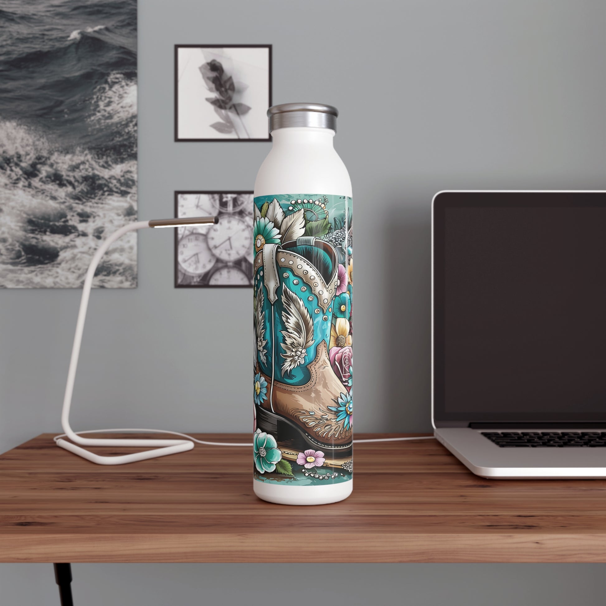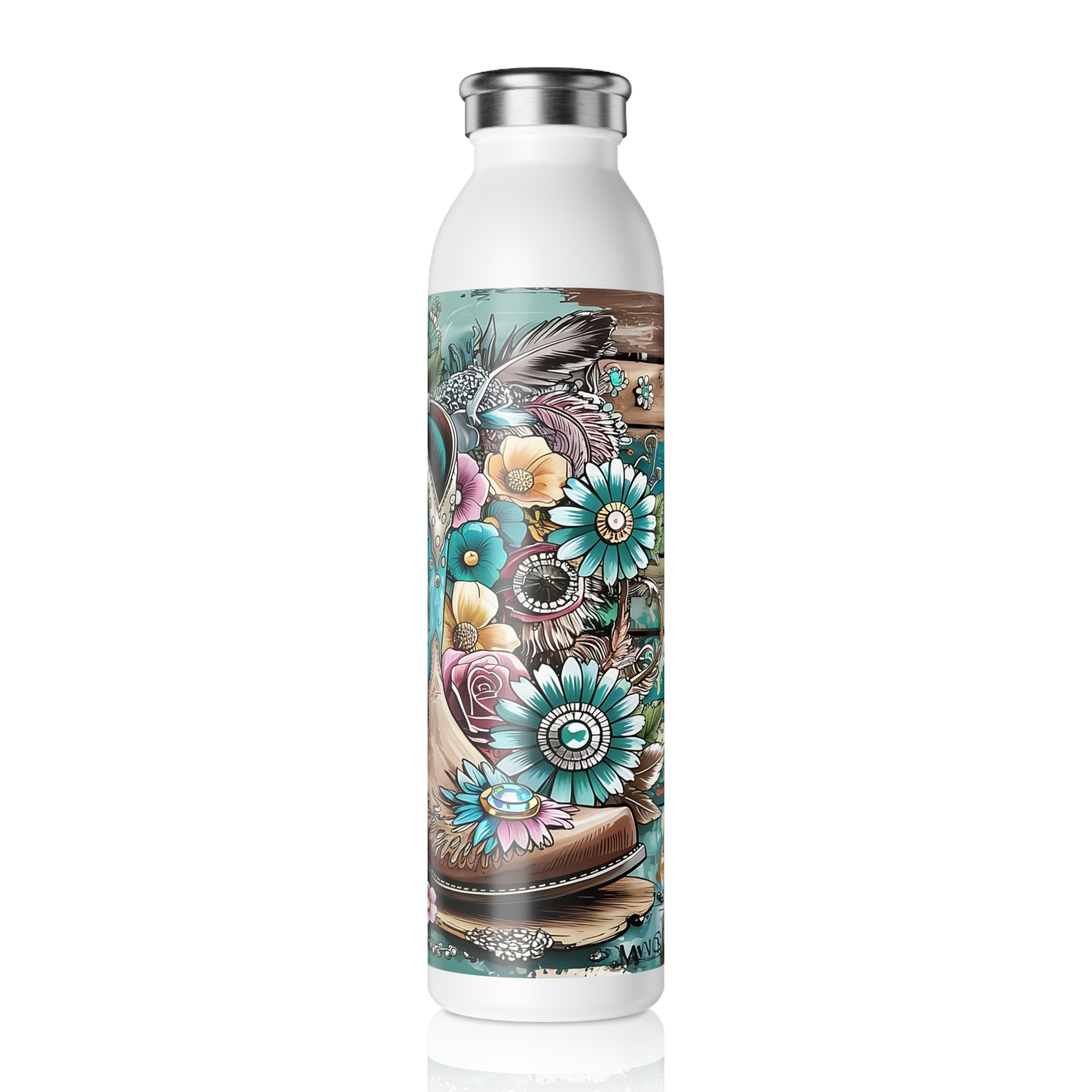 Floral Cowboy Slim Water Bottle - Western Decor, Eco-Friendly Hydration, Gift for Cowgirls, Outdoor Adventures, Unique Gym Bottle
