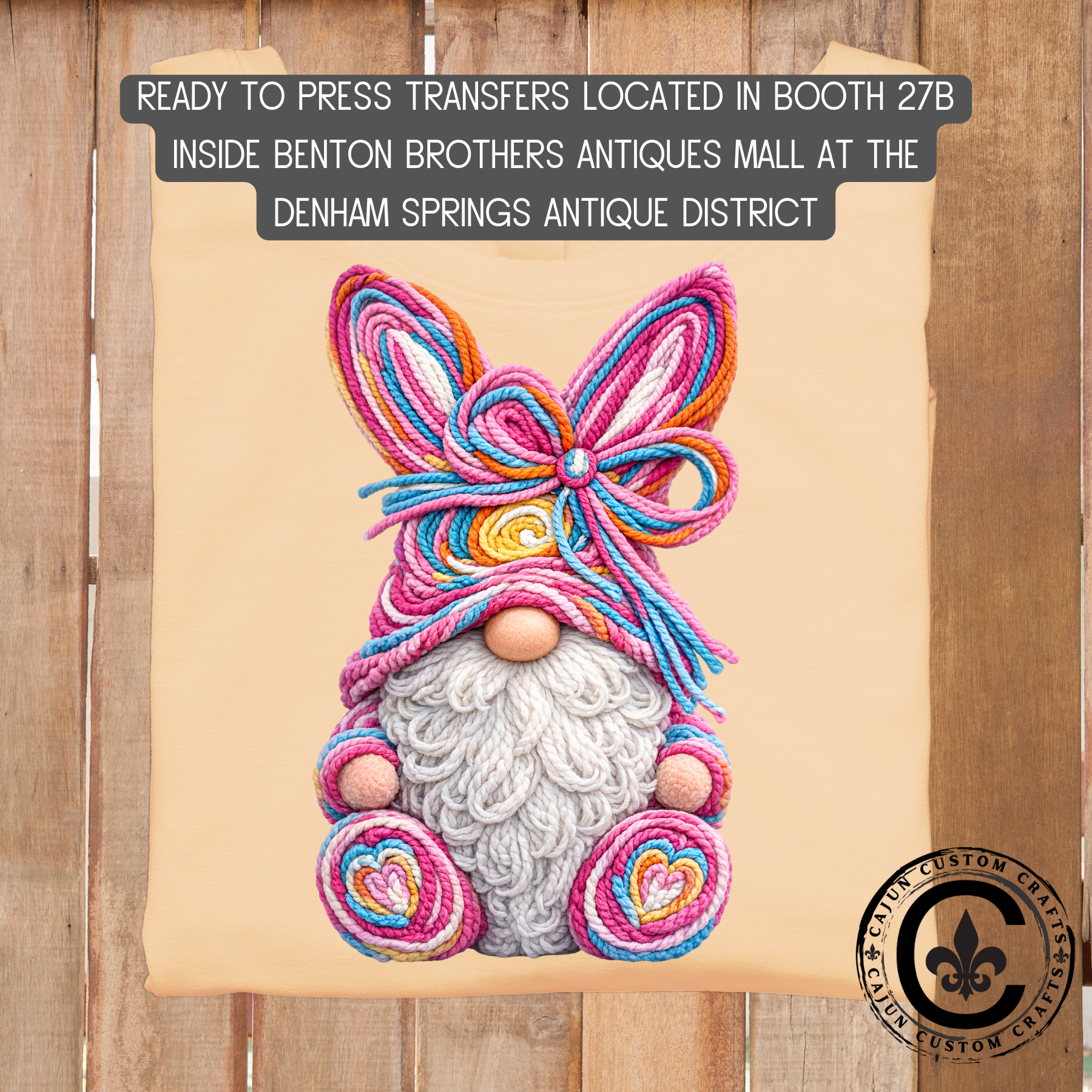 faux yarn gnome bunny dtf transfer, tshirt, tumbler, jewelry