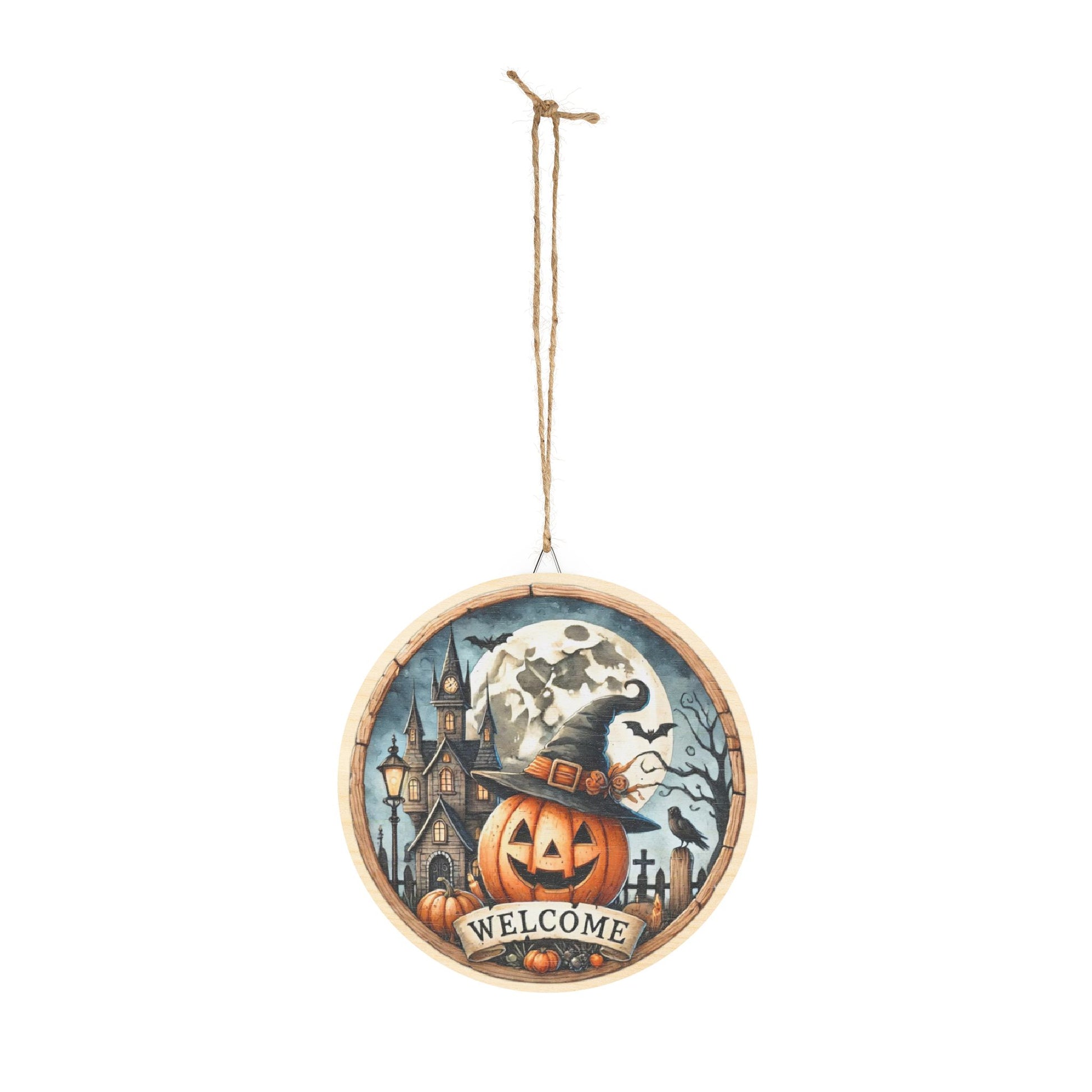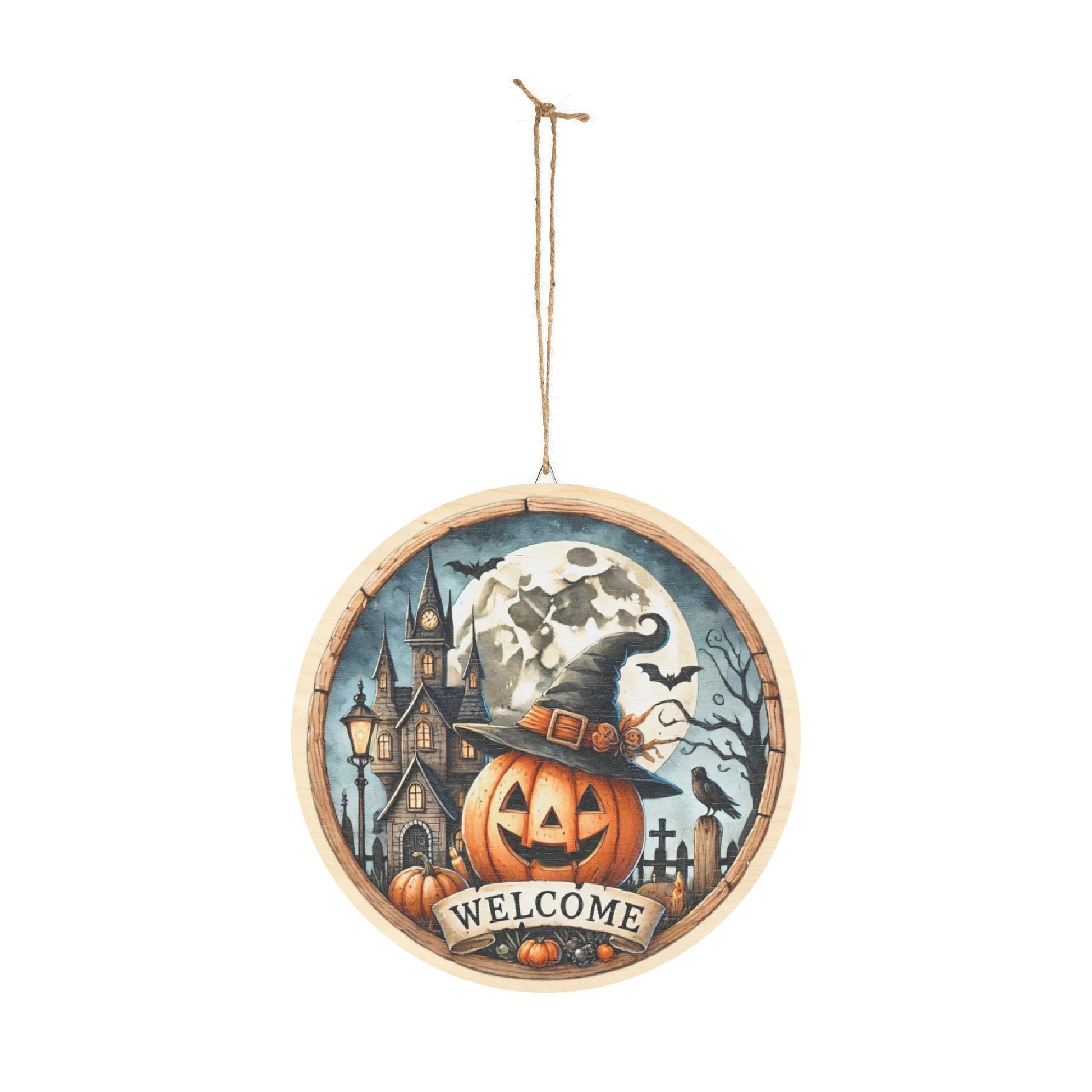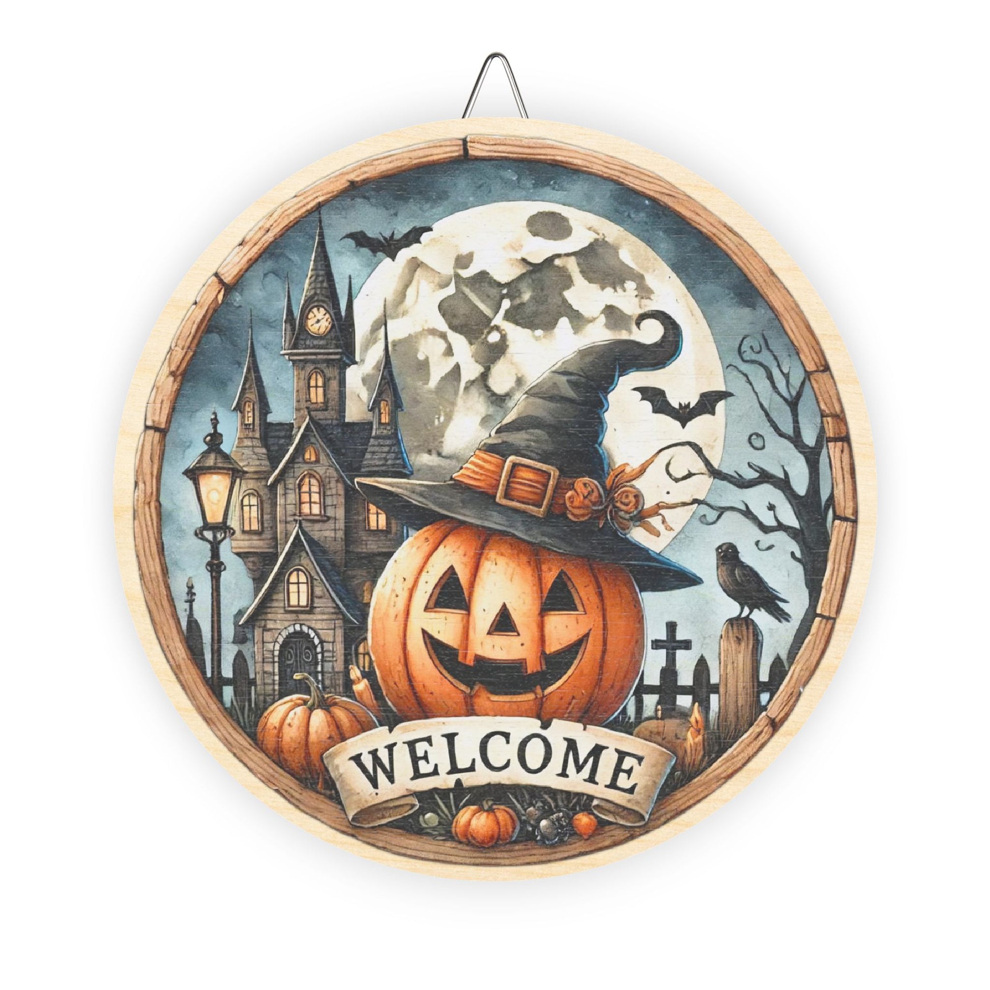 Halloween Welcome wooden door sign, mantle, entry table, decor, Pumpkin and haunted house