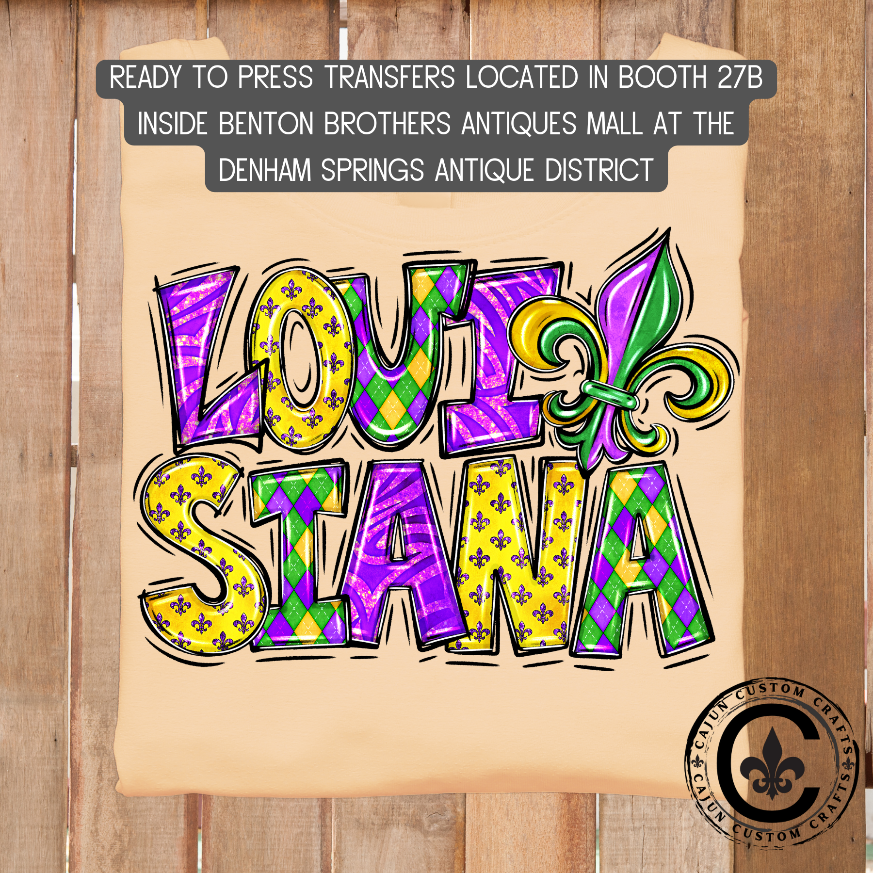 We offer shipping and local pick up at Benton Brother's Antique Mall in the Antique Village of Denham Springs, LA where we have a booth of ready to pick up items as well as DTF Transfers.