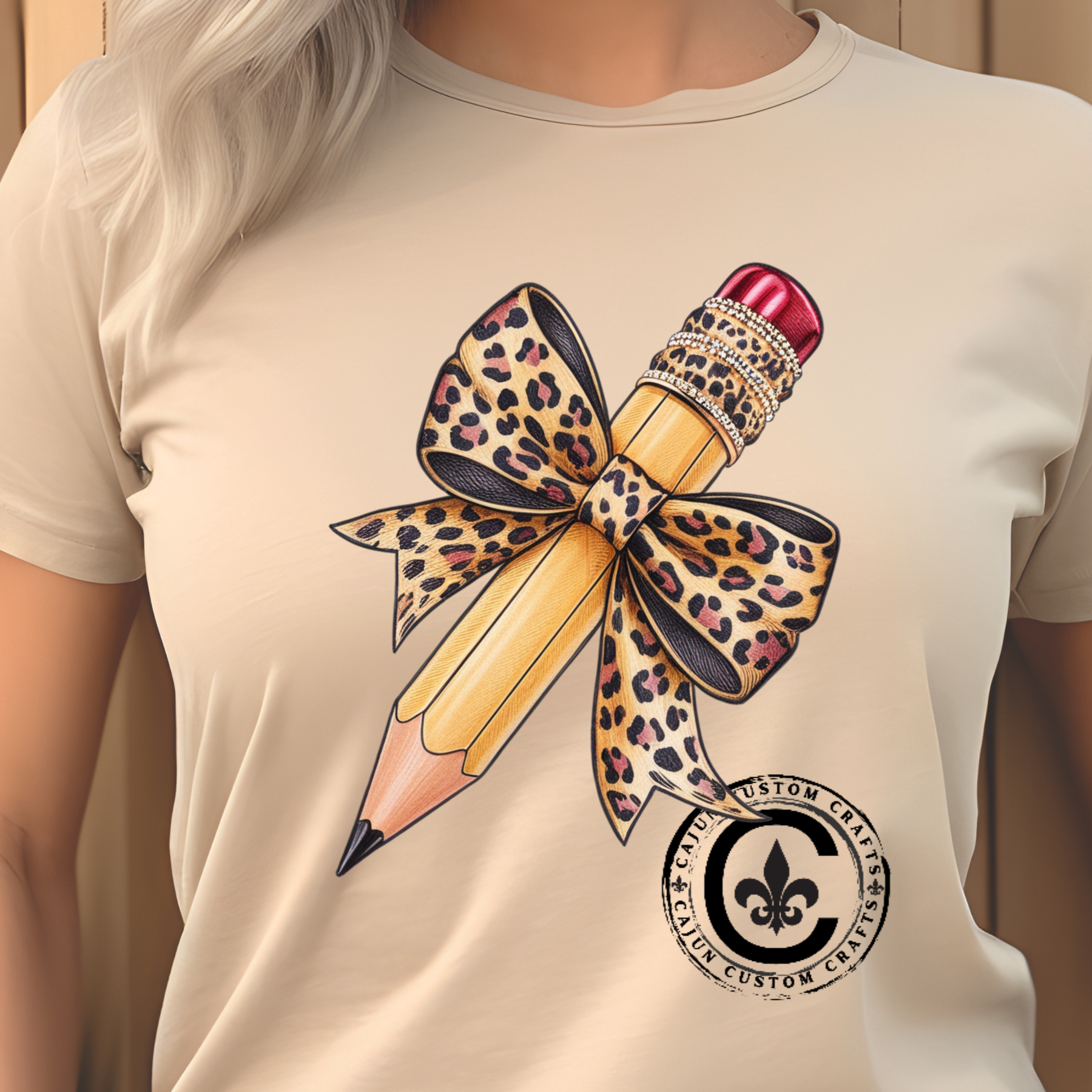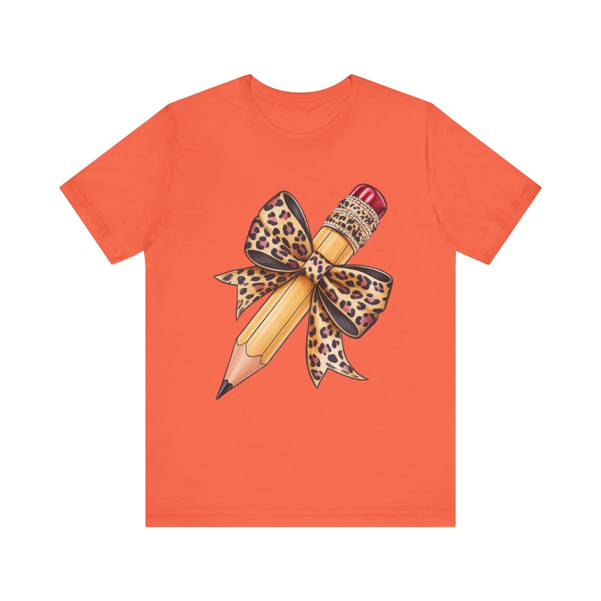 Leopard Bow Pencil Tee - Cute Teacher Gift, Back to School Outfit, Art Lover Shirt, Classroom Apparel, Fun Educational Shirt