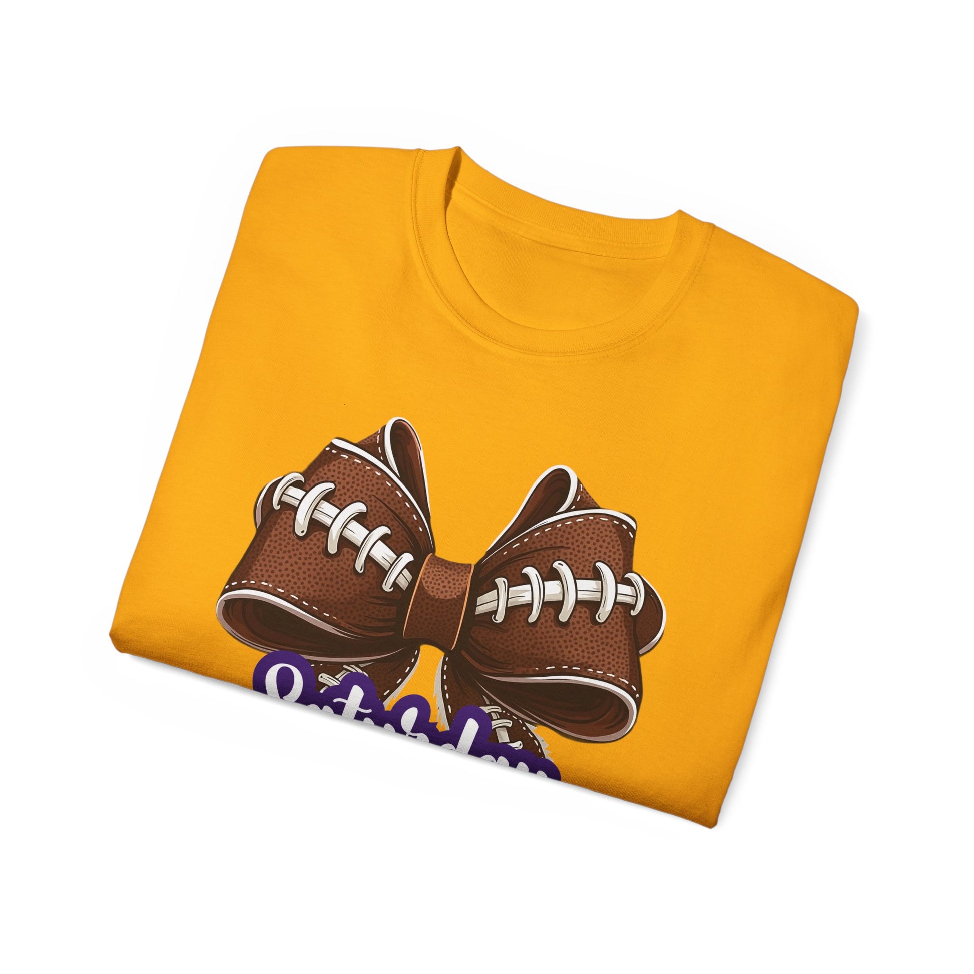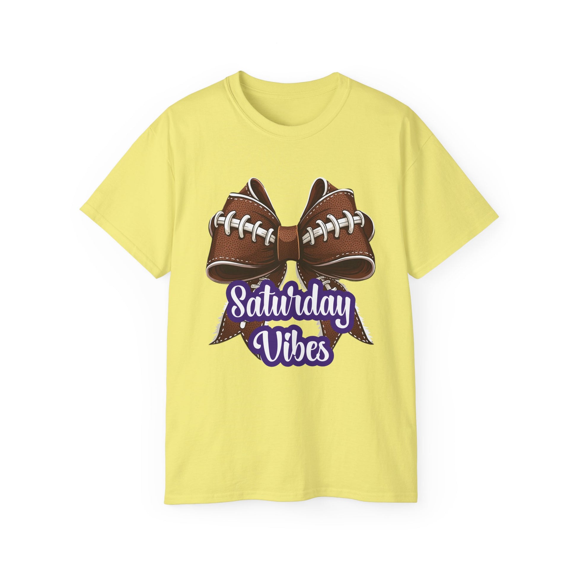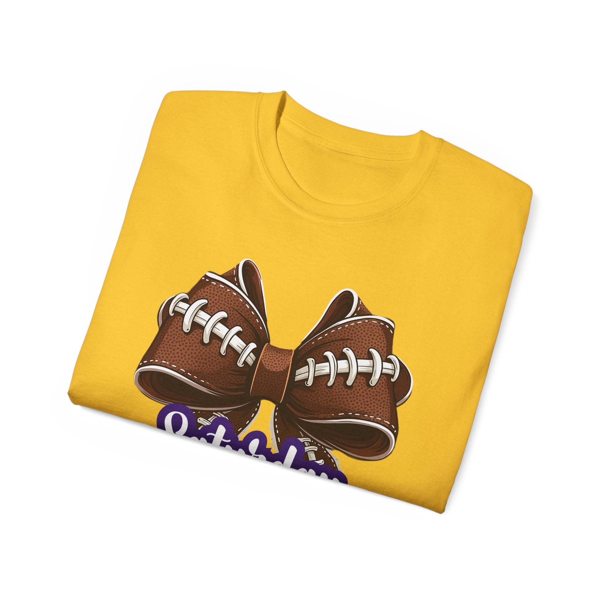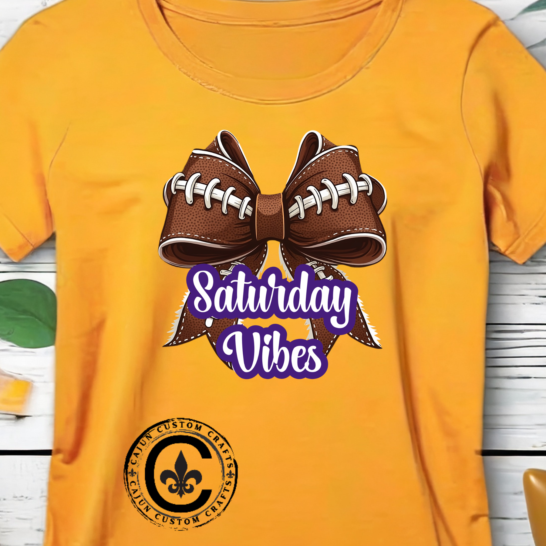 LSU Gold Day, Football Bow, Saturday Vibes, Tee, Cute Football T-Shirt, Gift for Sports Lovers, Unique Football Apparel, Casual Everyday Wear