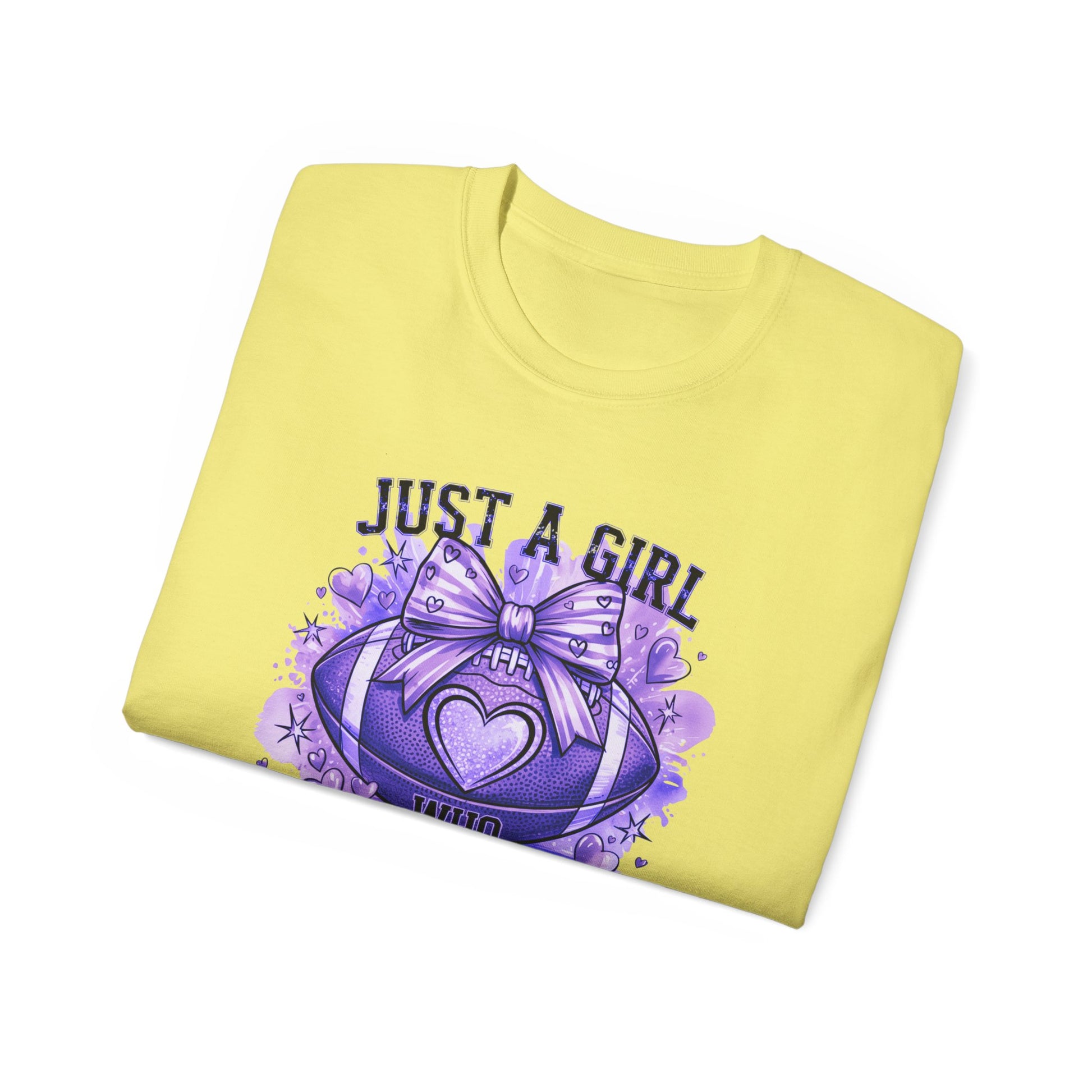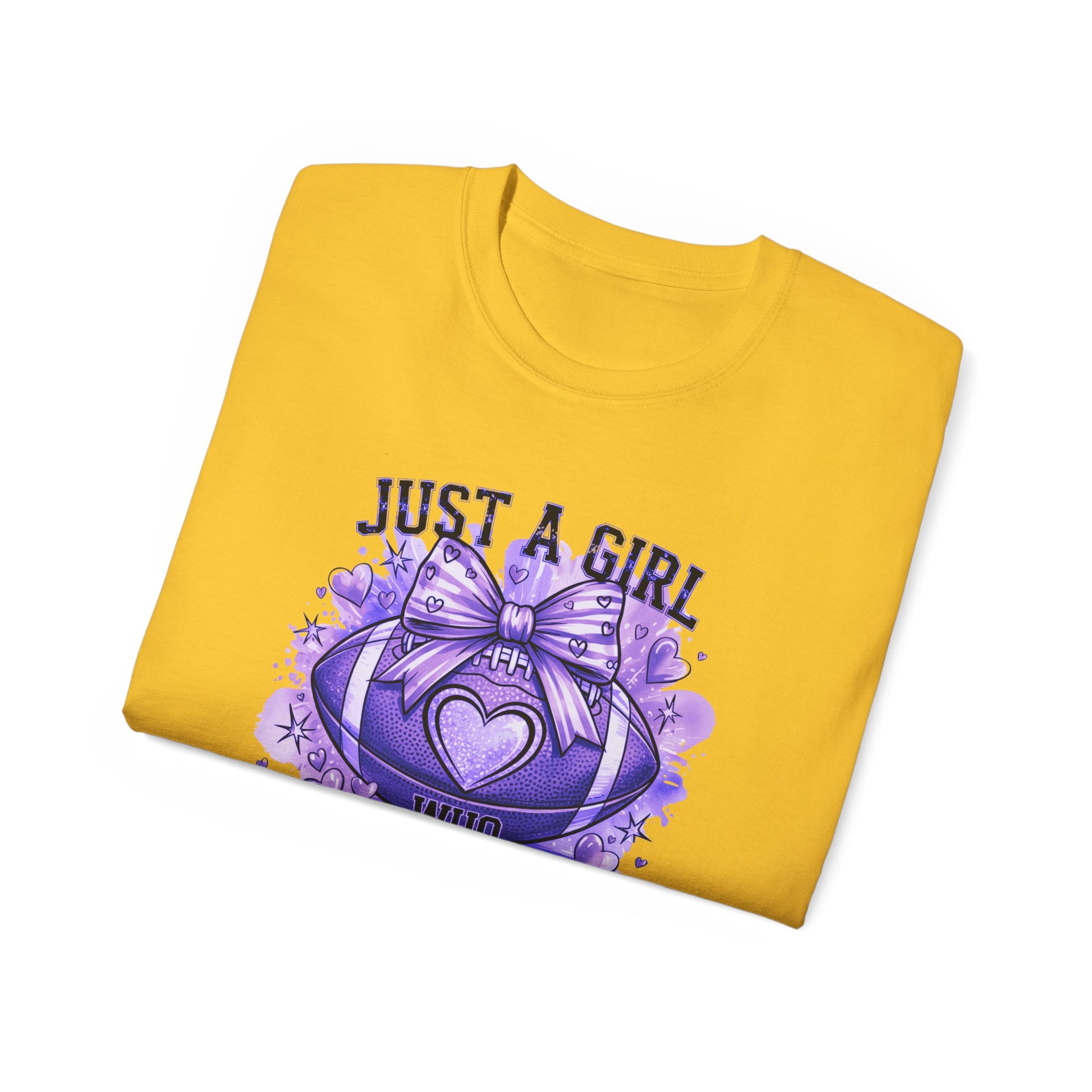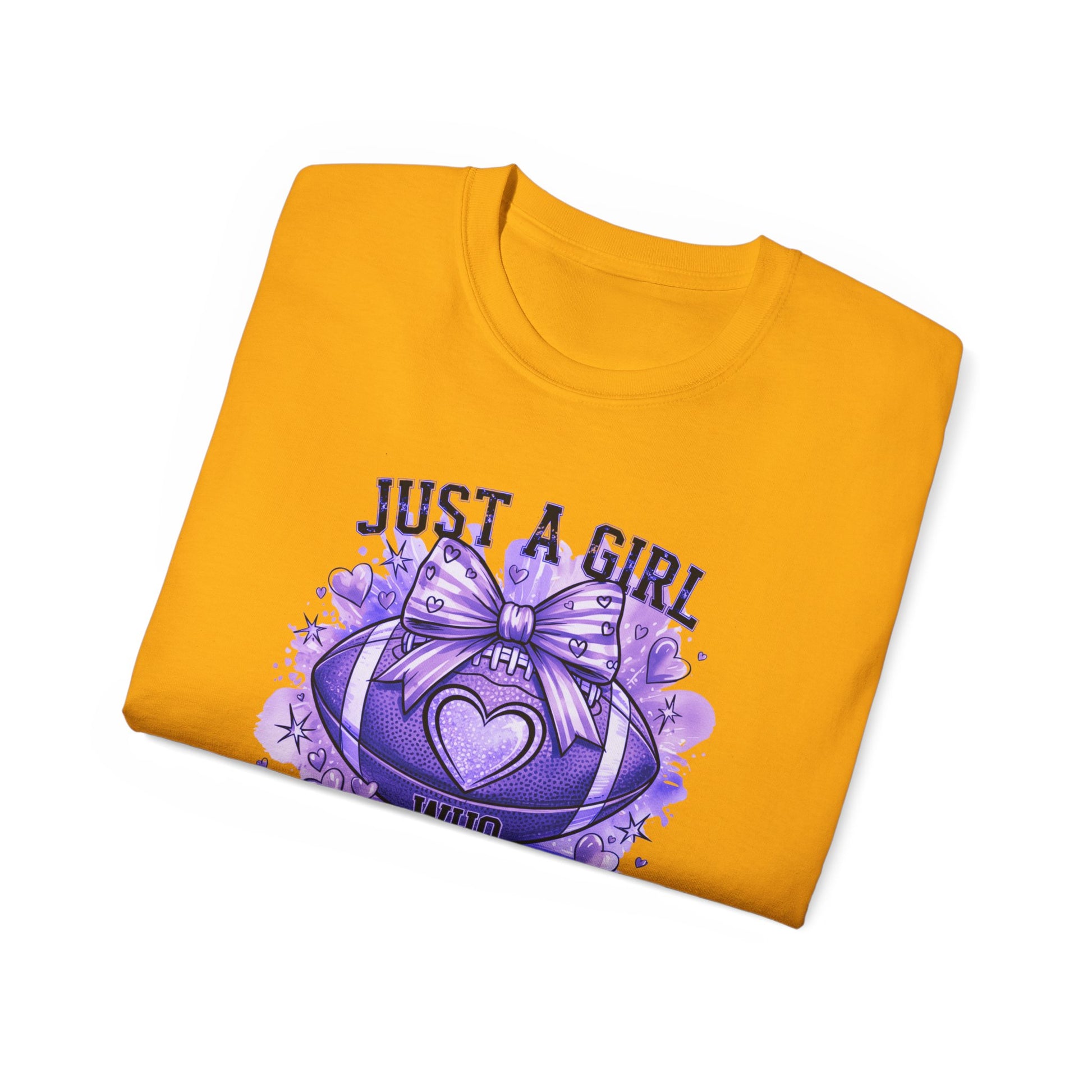 LSU Gold Day, Just a Girl Who Loves Football Tee, Cute Football T-Shirt, Gift for Sports Lovers, Unique Football Apparel, Casual Everyday Wear