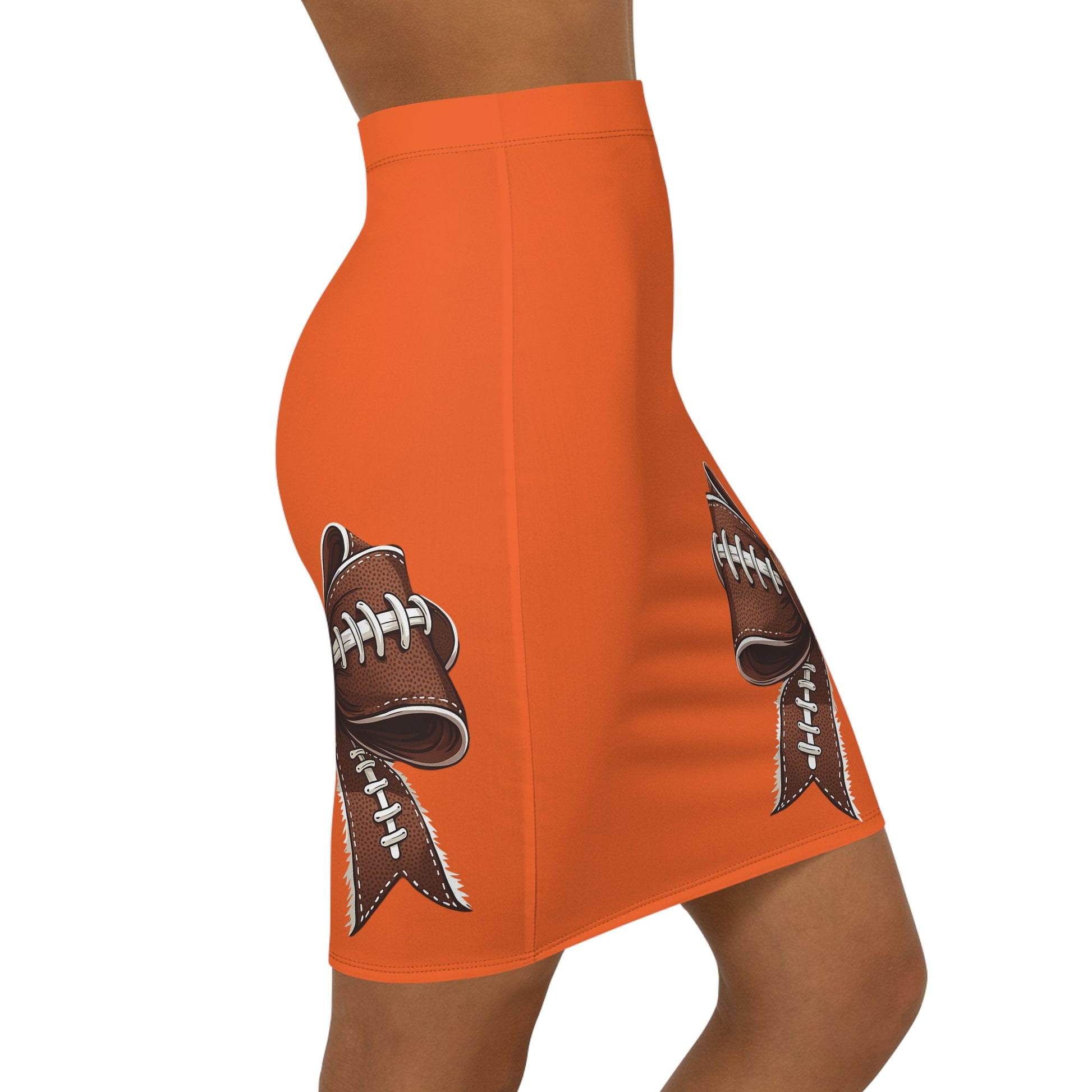 Orange Football Bow Women's Pencil Skirt, Stylish Skirt Fun Night Out, Team Spirit! Game Day, homecoming