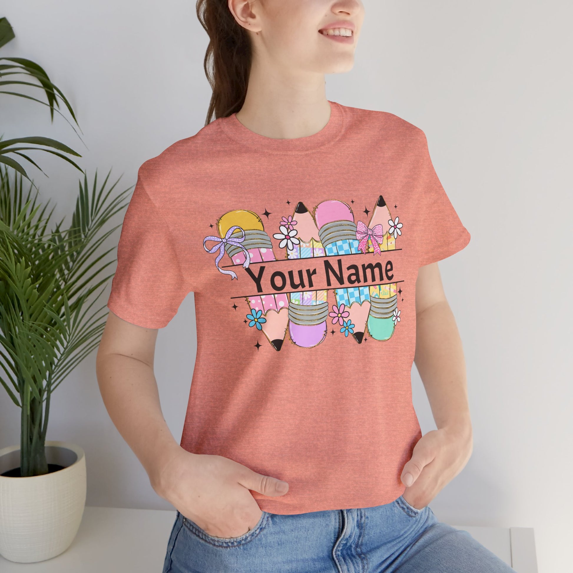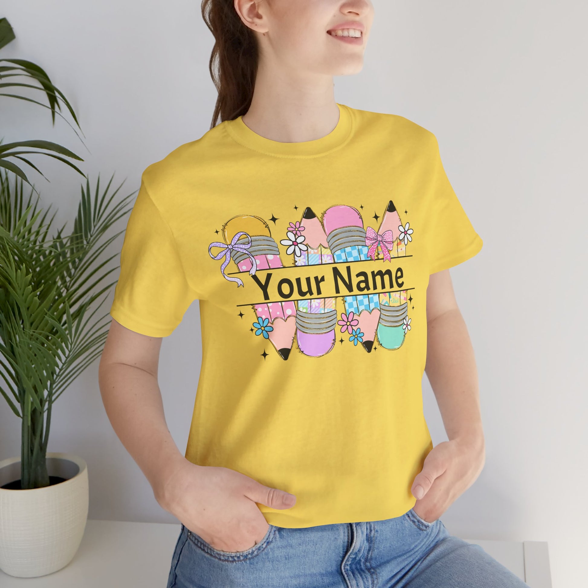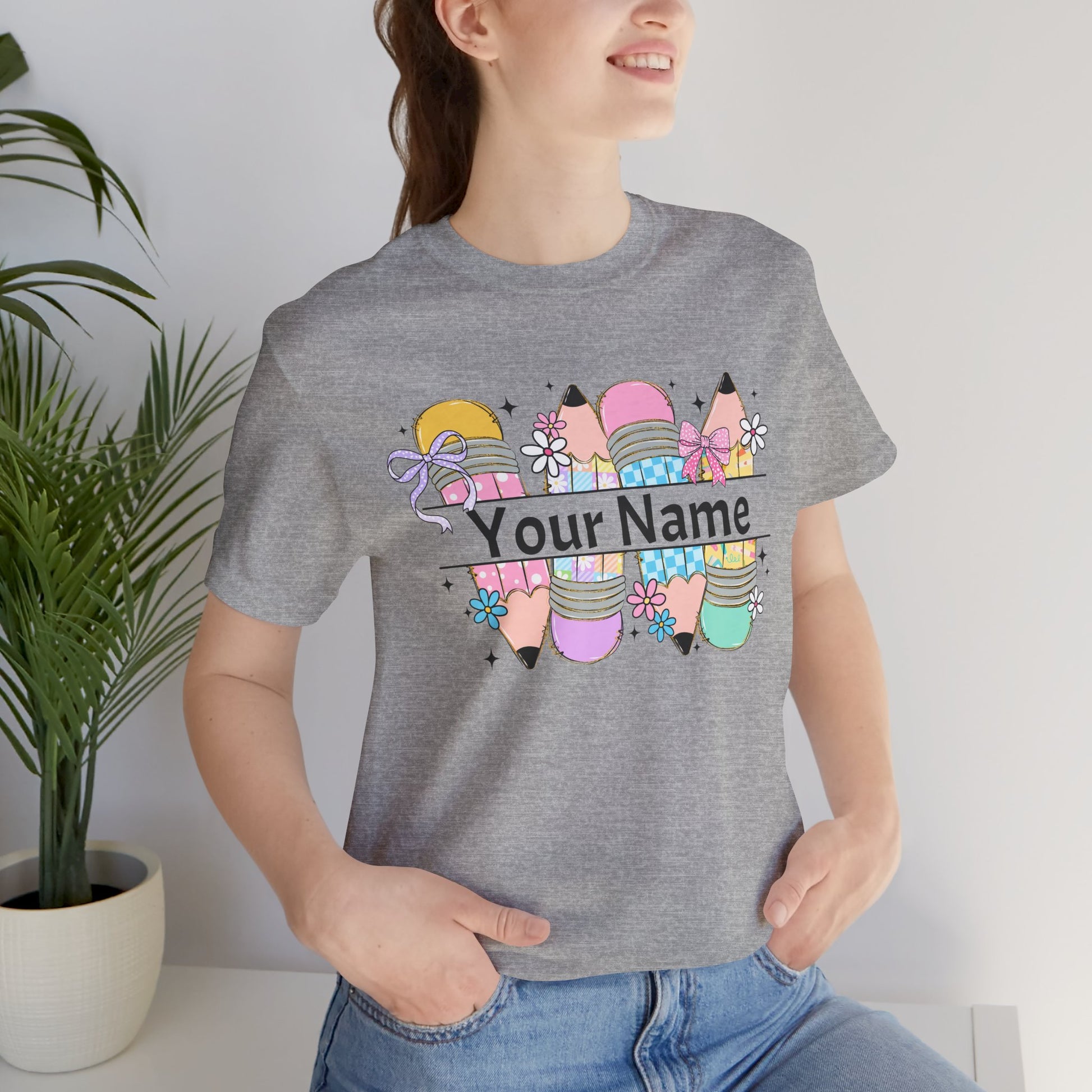 Personalized Back to School Pencil with your name design, on a bella canvas shirt