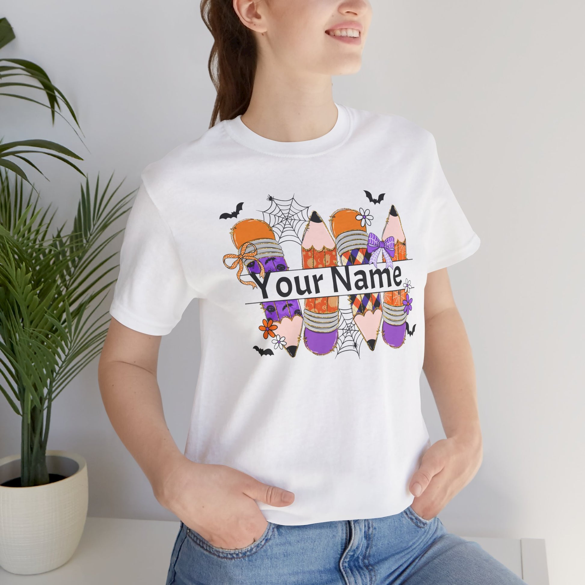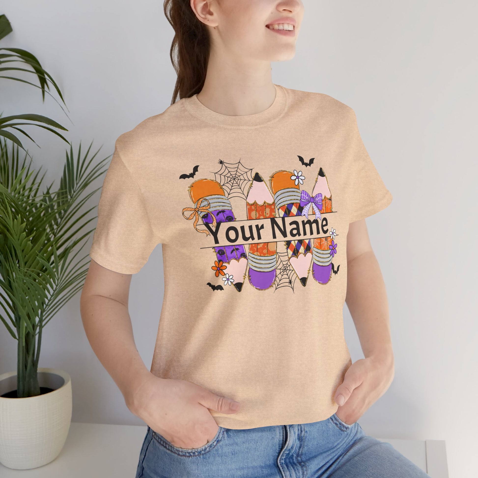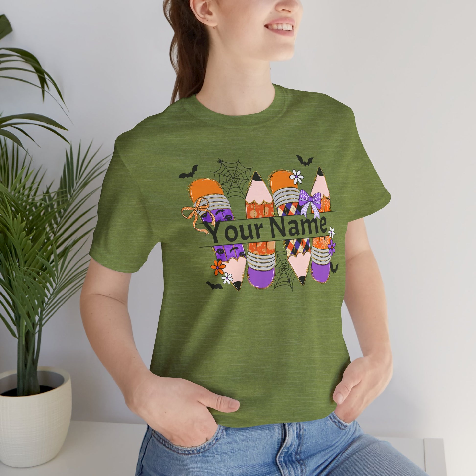 Personalized Halloween School Pencil with your name design, on a bella canvas shirt