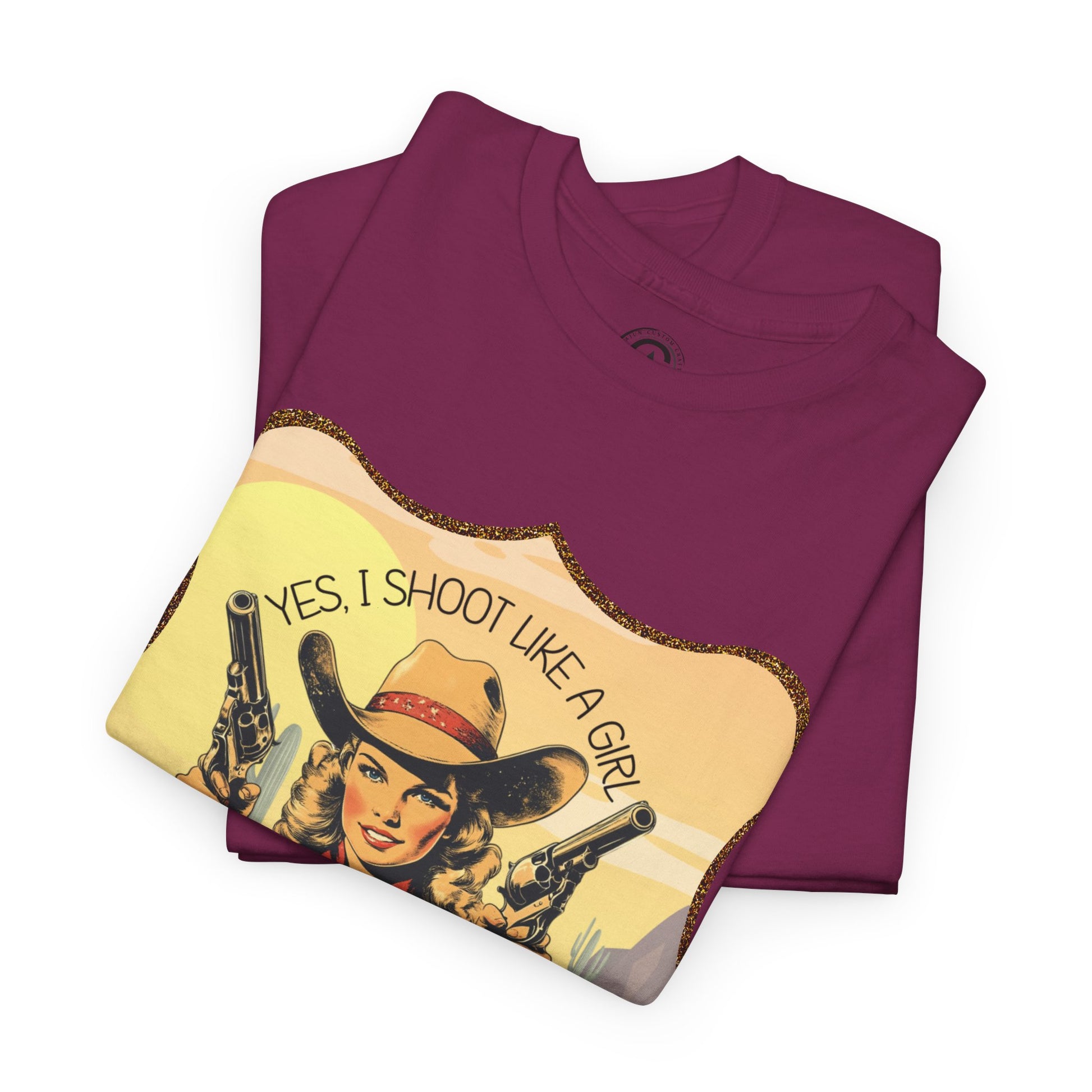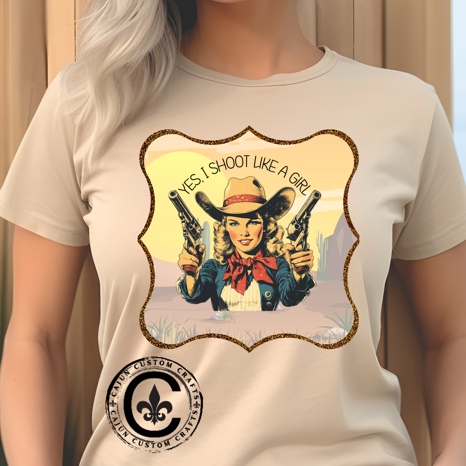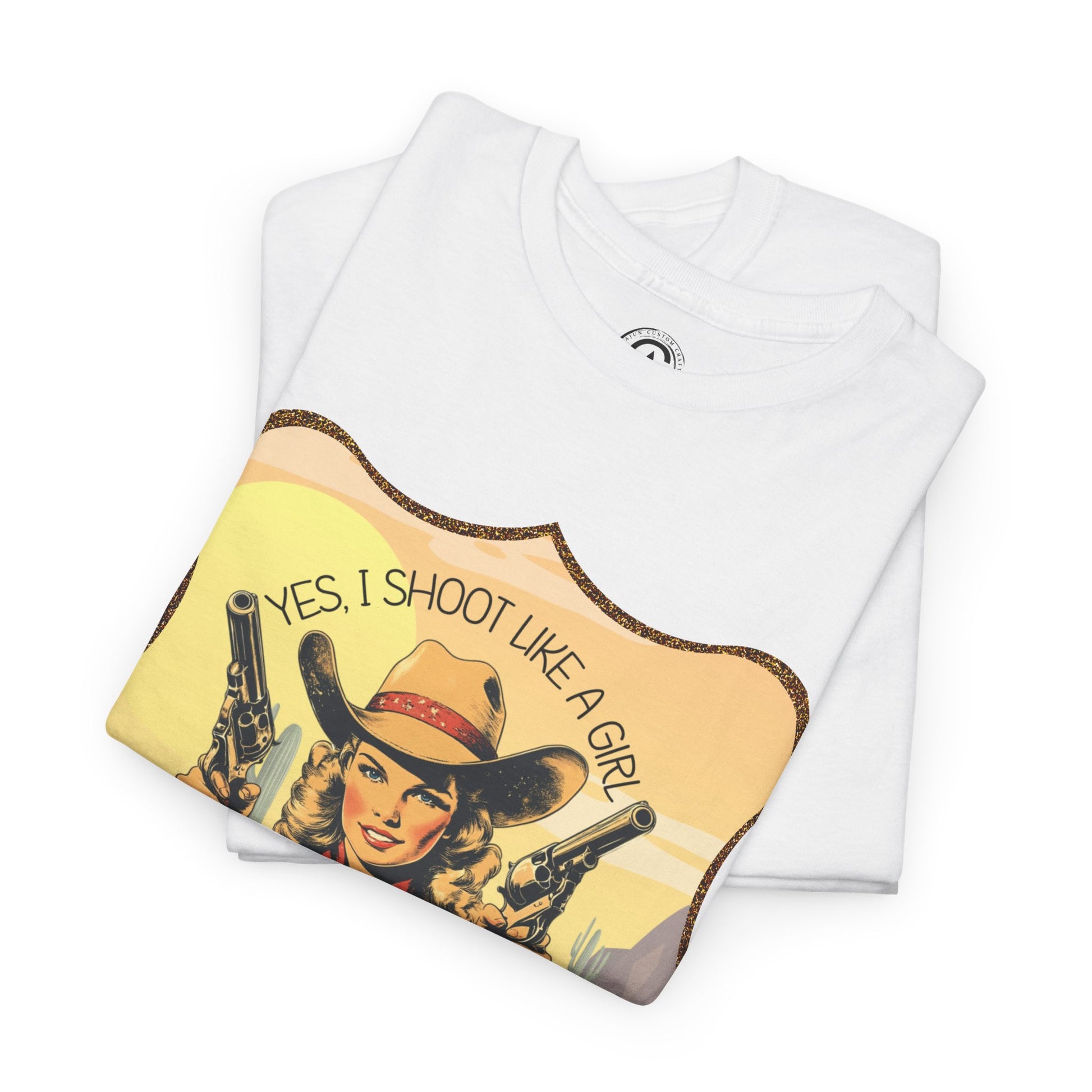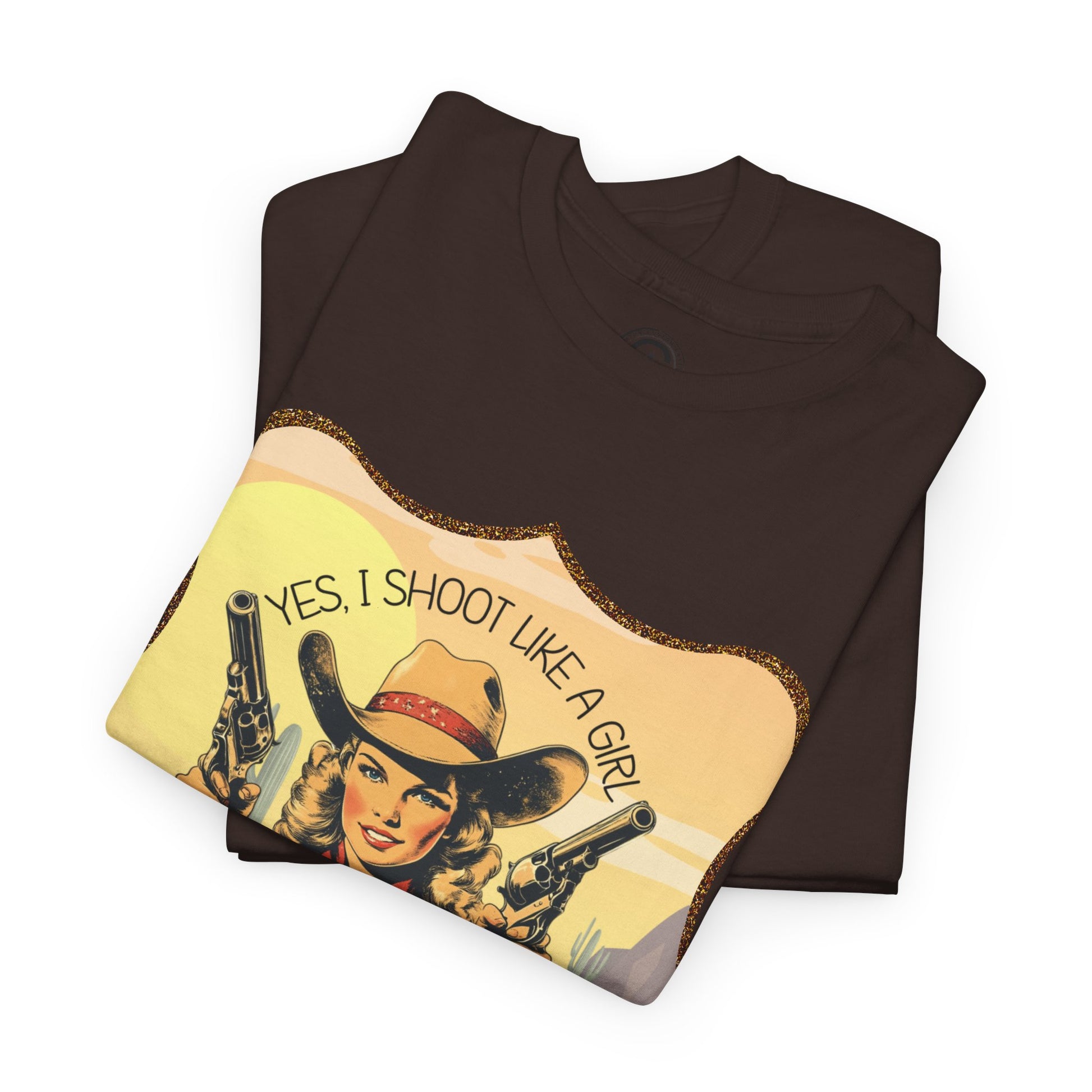 Personalized, Western Style Graphic Tee - "Yes, I Shoot Like A Girl", Cowgirl Shirt, Gift for Her, Feminist Apparel, Casualwear, Rodeo Outfit