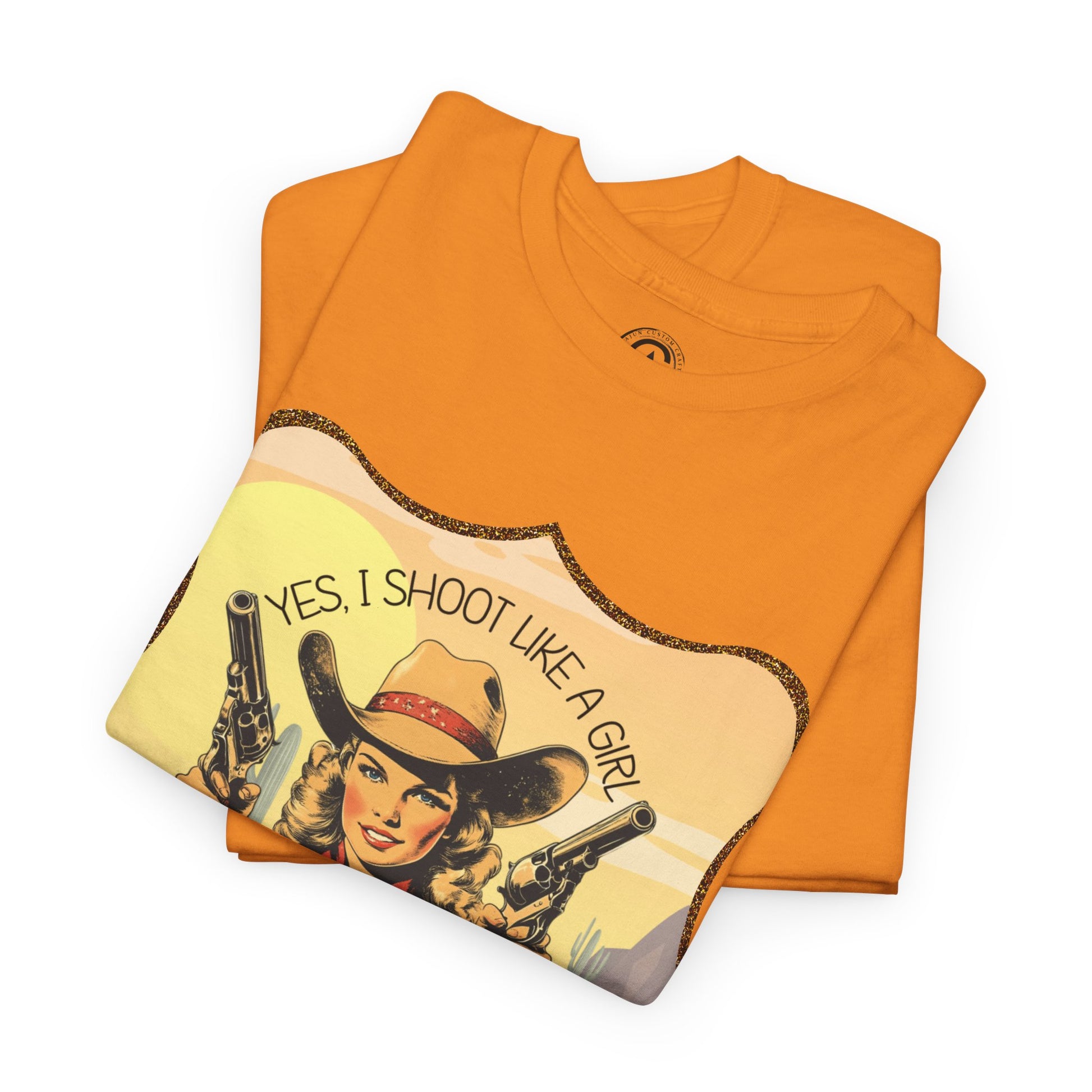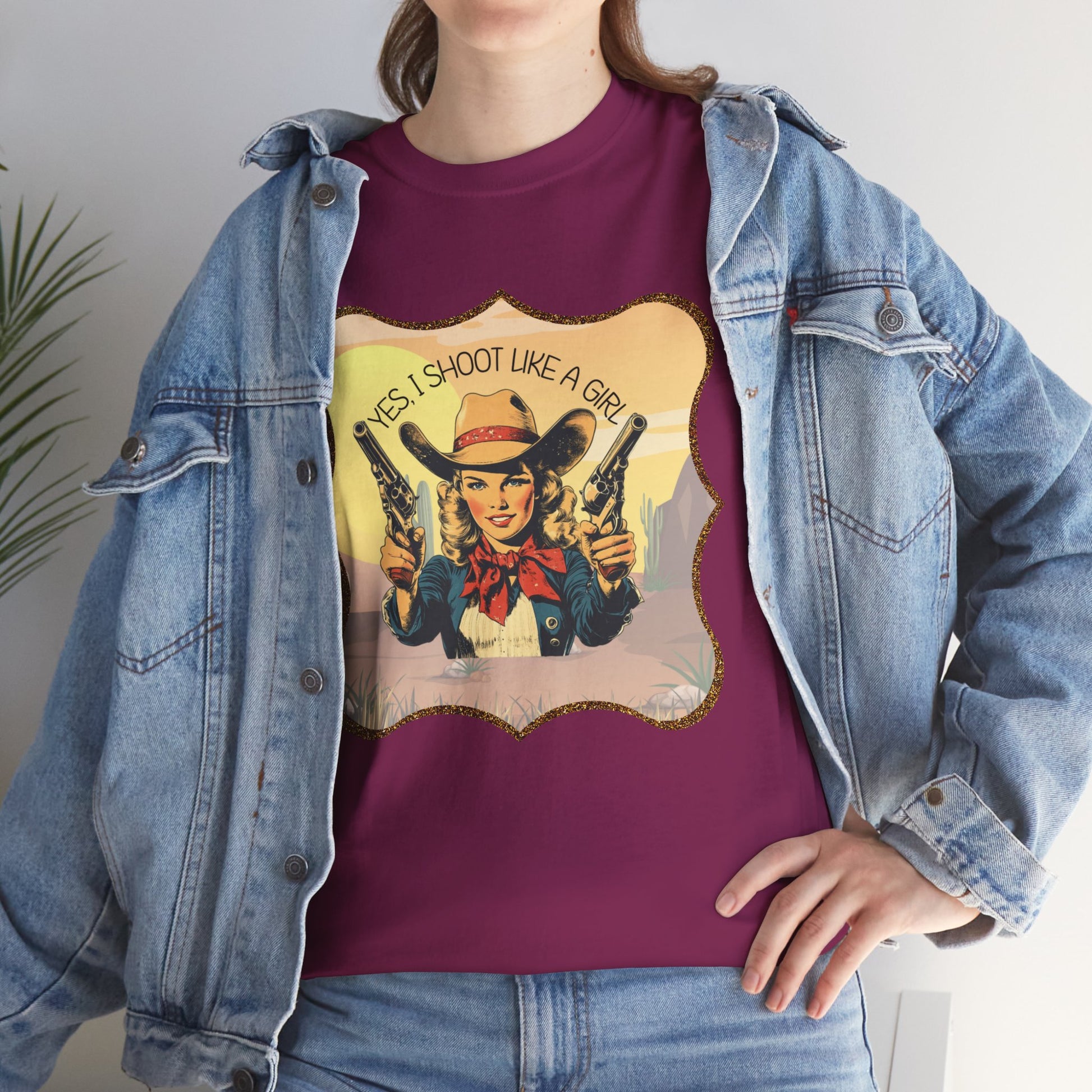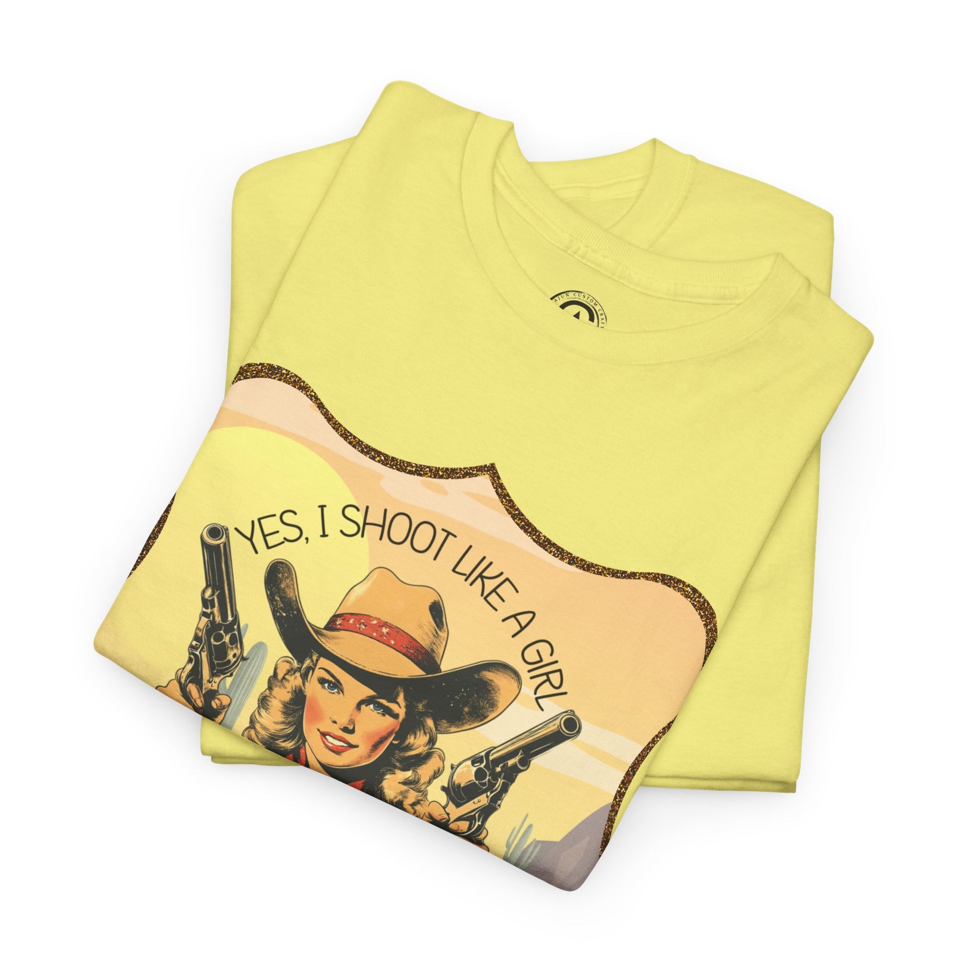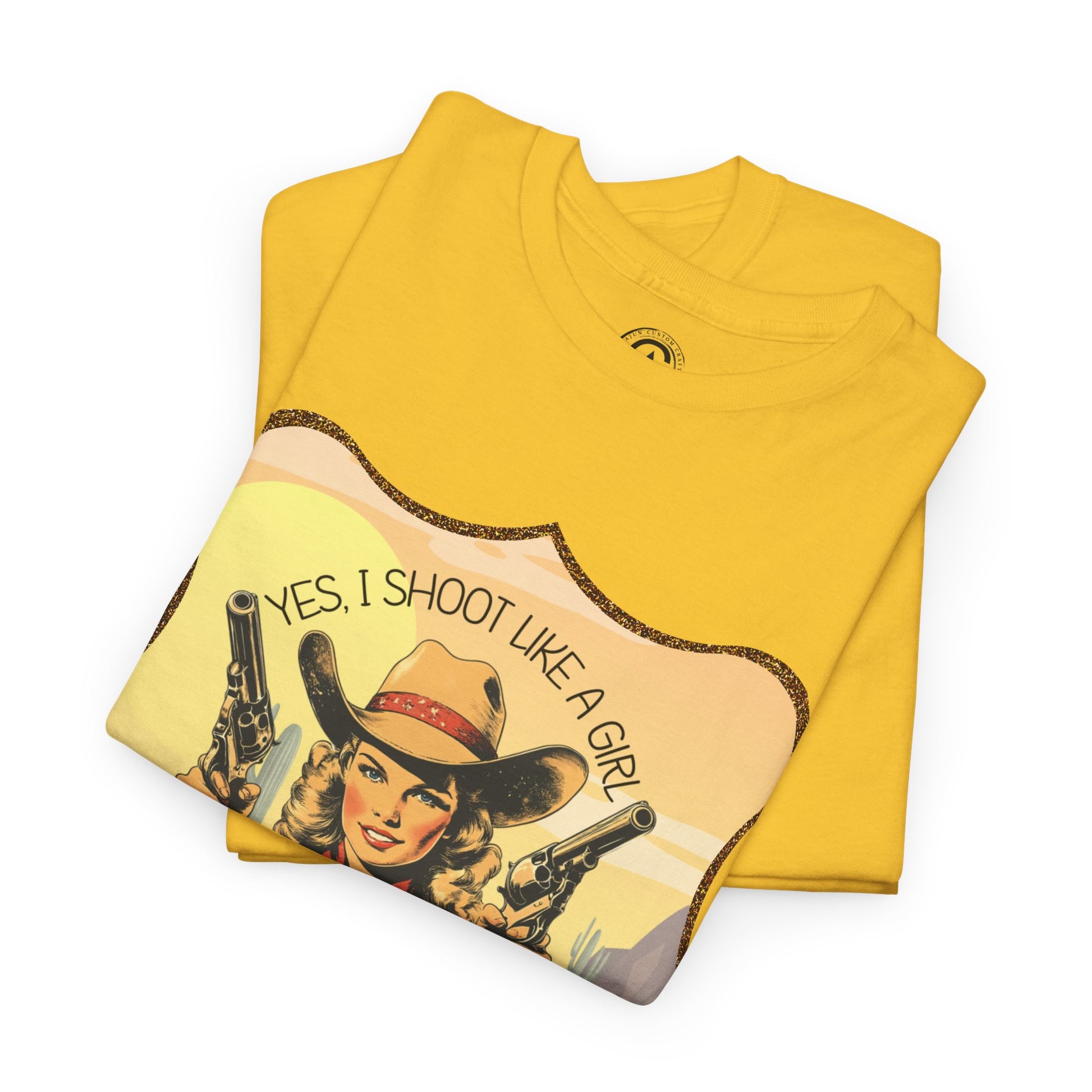 Personalized, Western Style Graphic Tee - "Yes, I Shoot Like A Girl", Cowgirl Shirt, Gift for Her, Feminist Apparel, Casualwear, Rodeo Outfit
