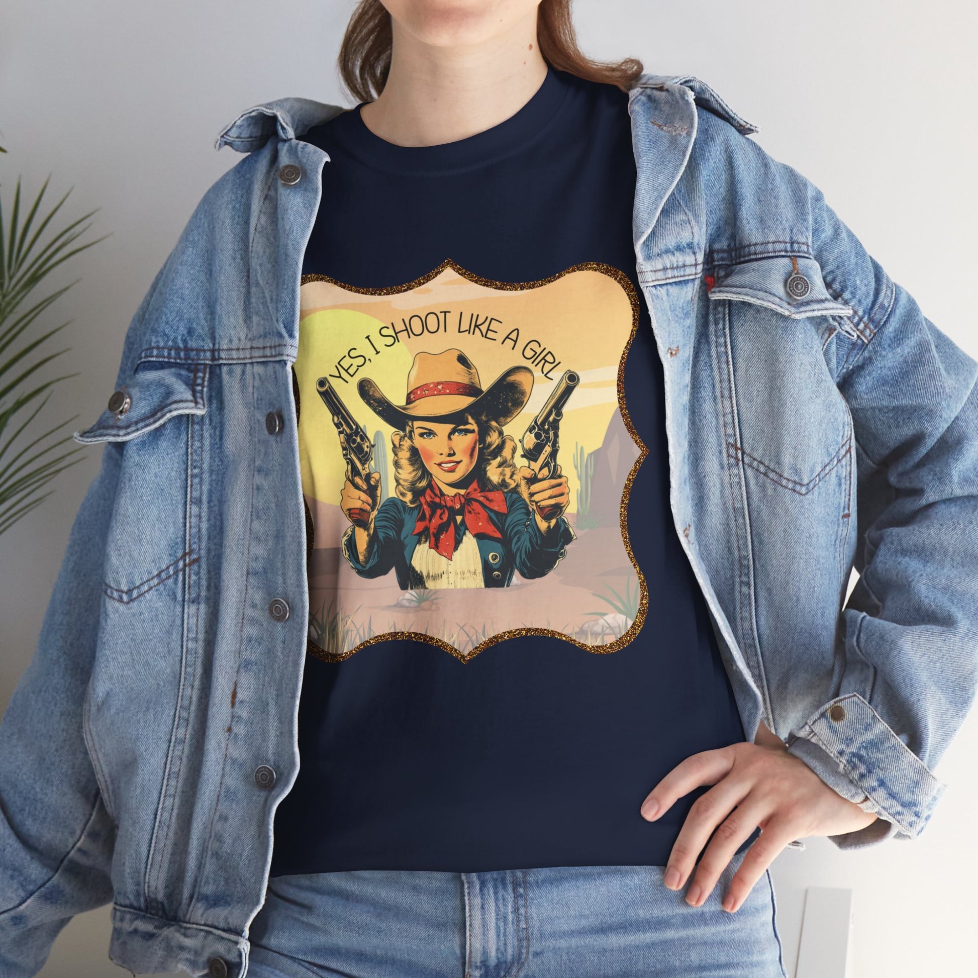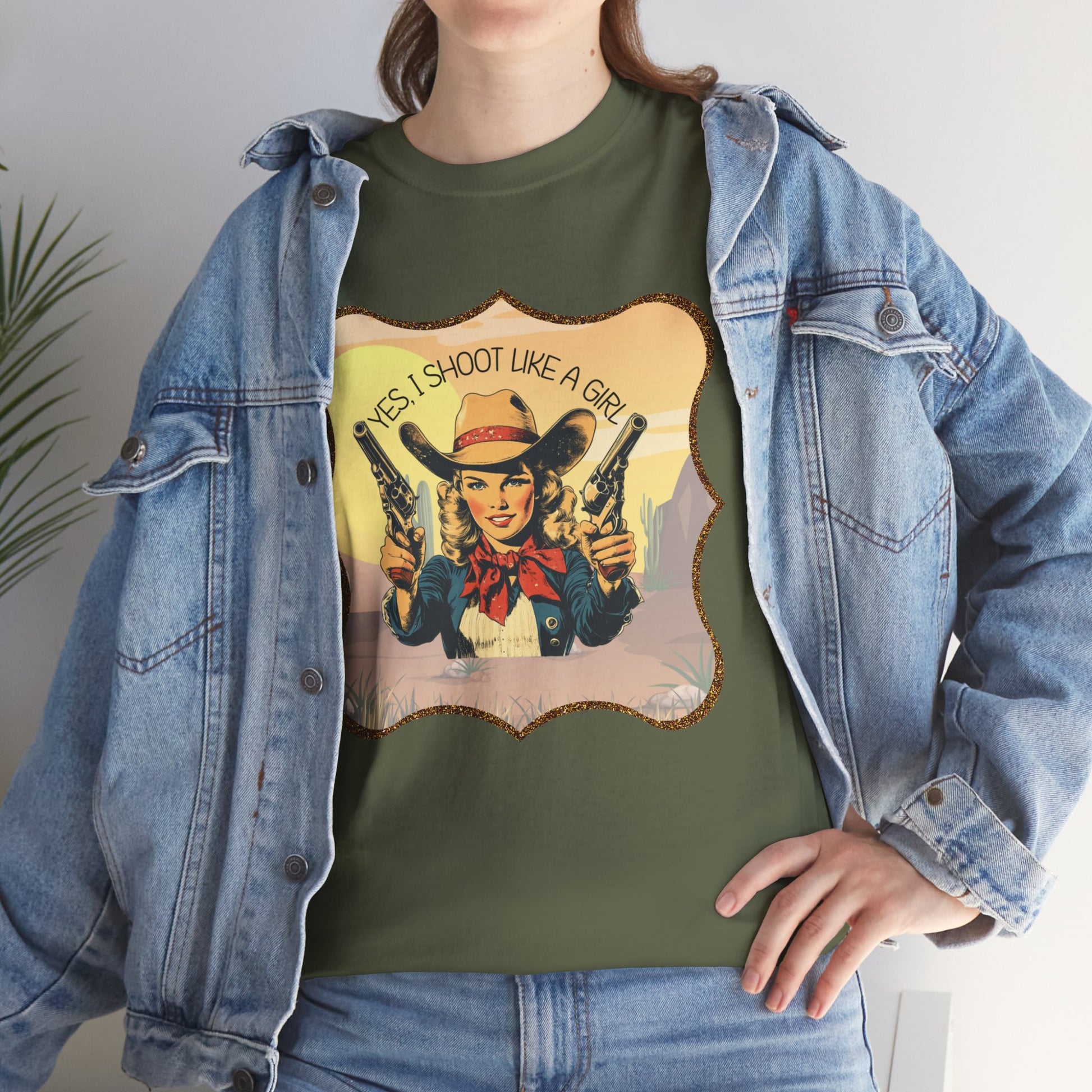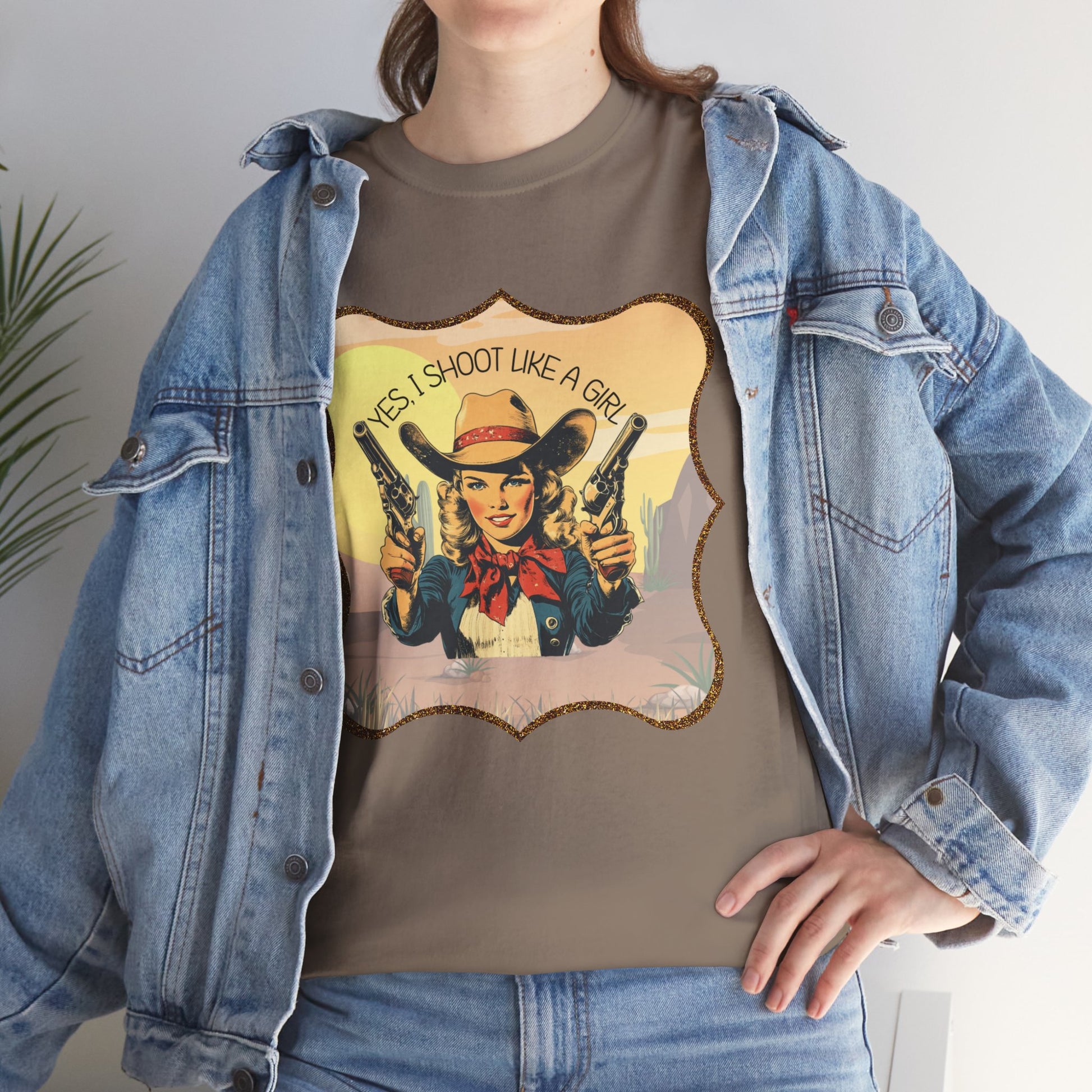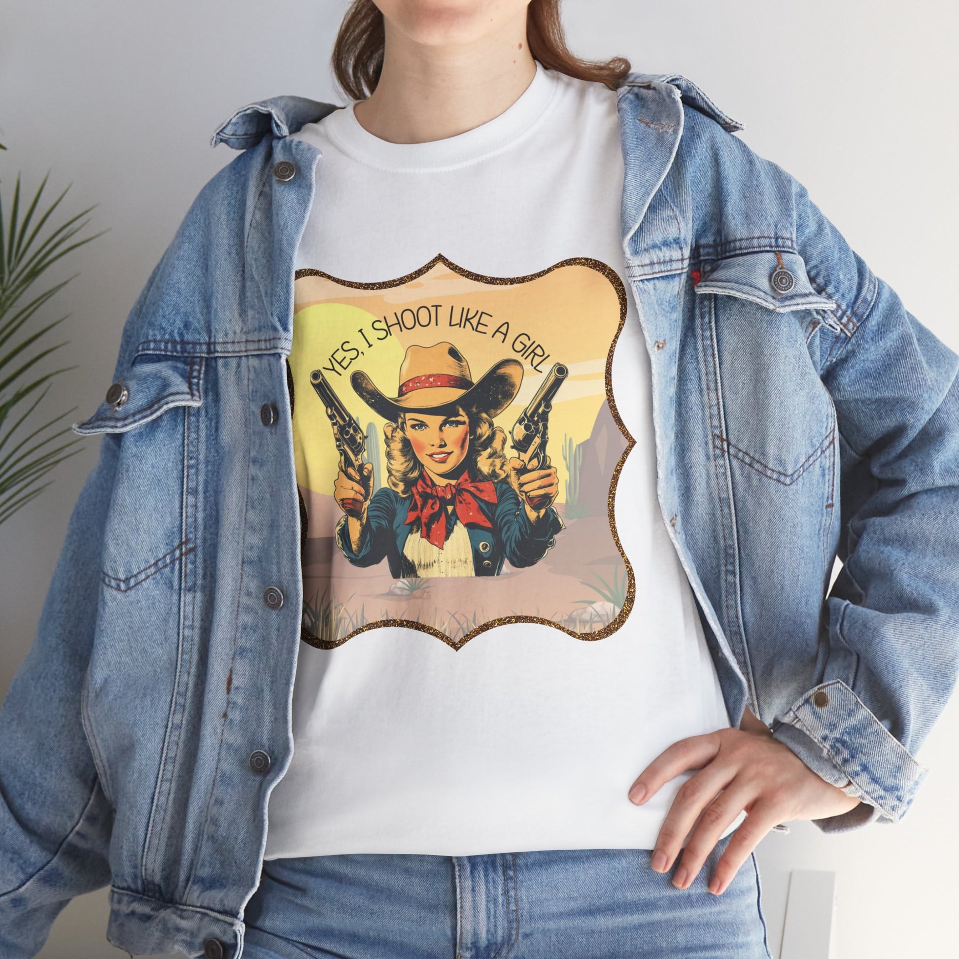 Personalized, Western Style Graphic Tee - "Yes, I Shoot Like A Girl", Cowgirl Shirt, Gift for Her, Feminist Apparel, Casualwear, Rodeo Outfit