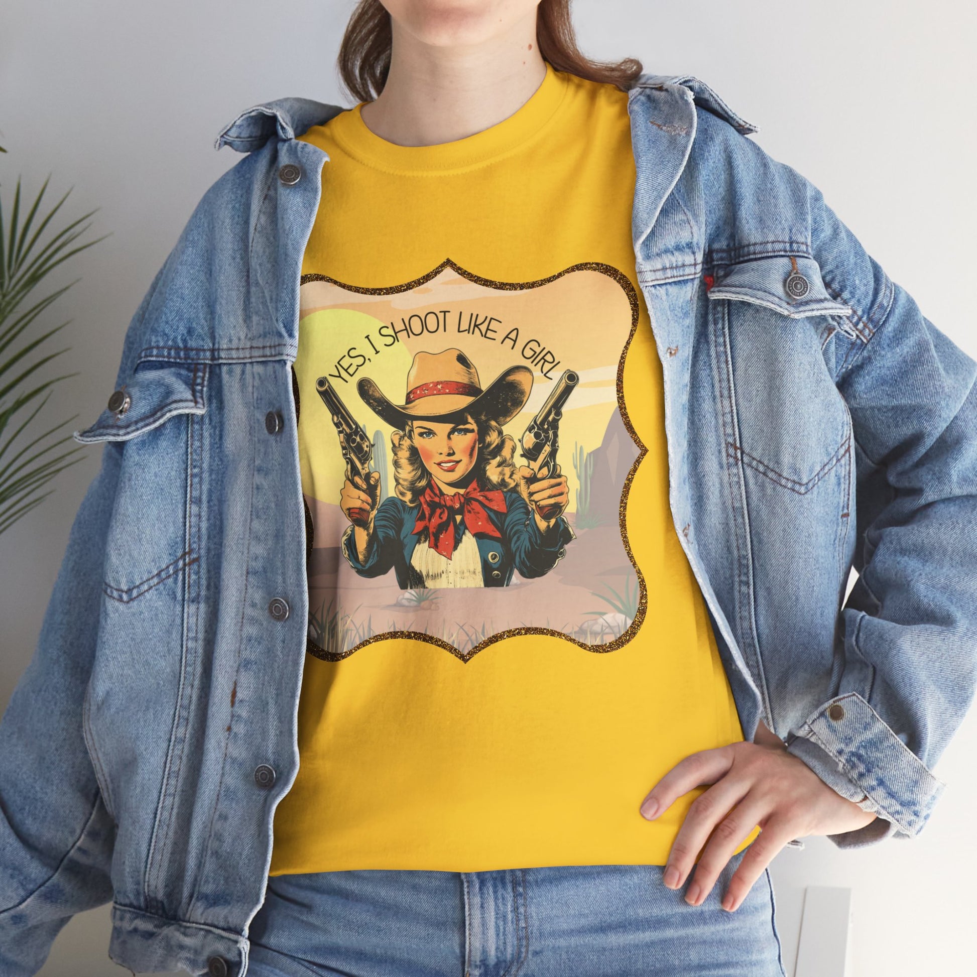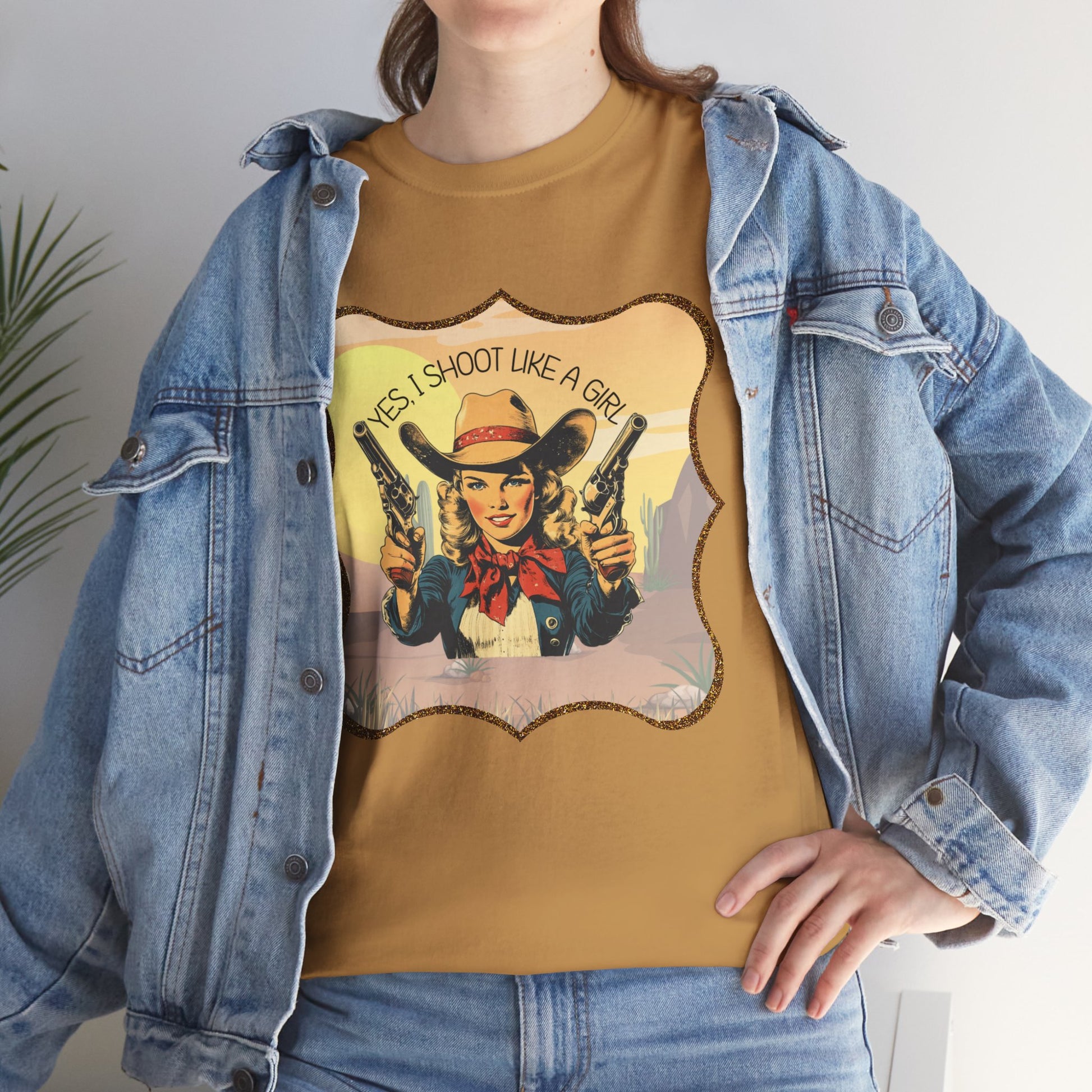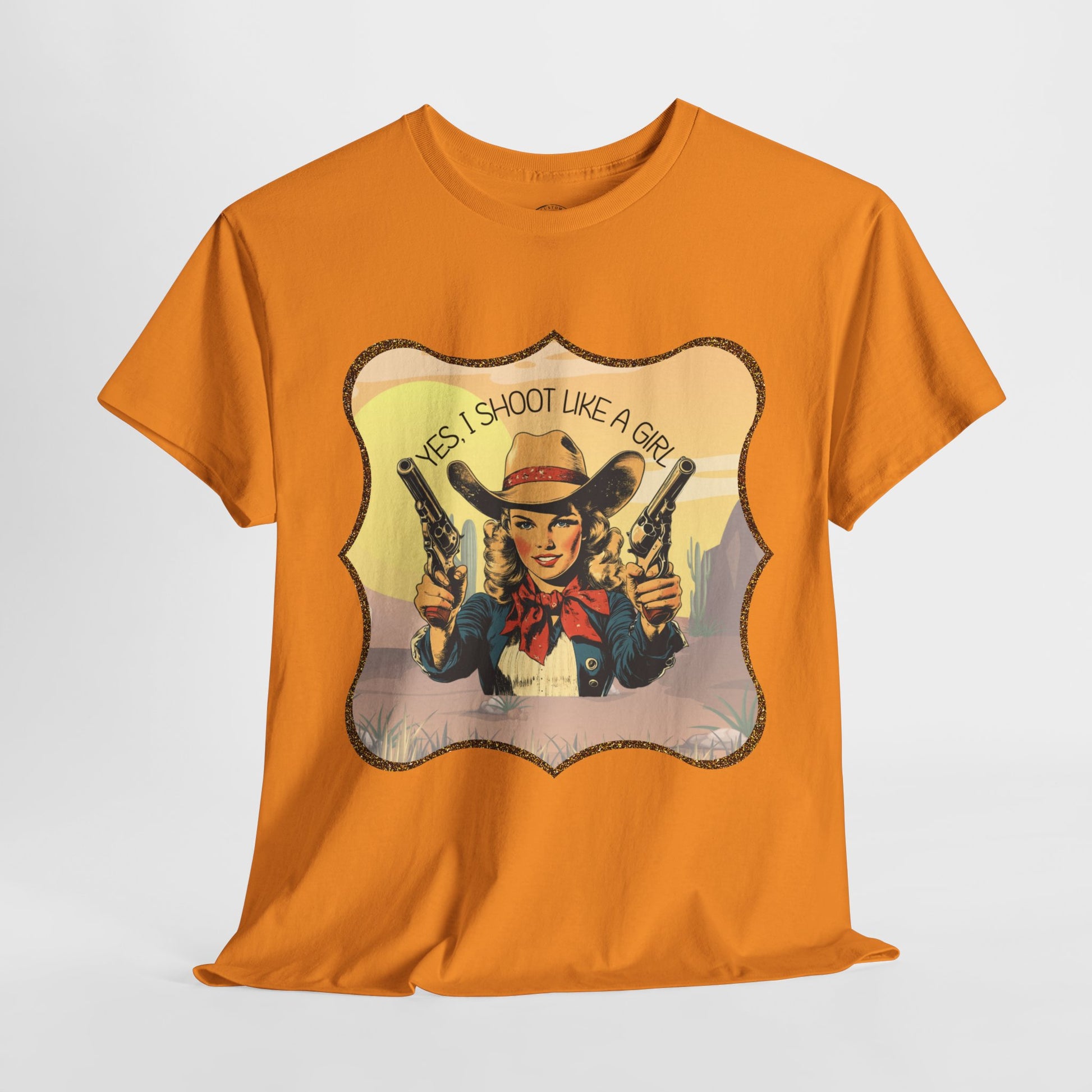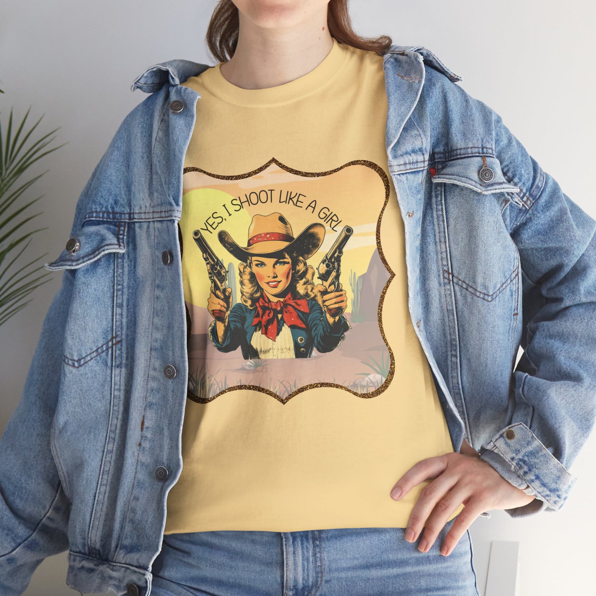 Personalized, Western Style Graphic Tee - "Yes, I Shoot Like A Girl", Cowgirl Shirt, Gift for Her, Feminist Apparel, Casualwear, Rodeo Outfit