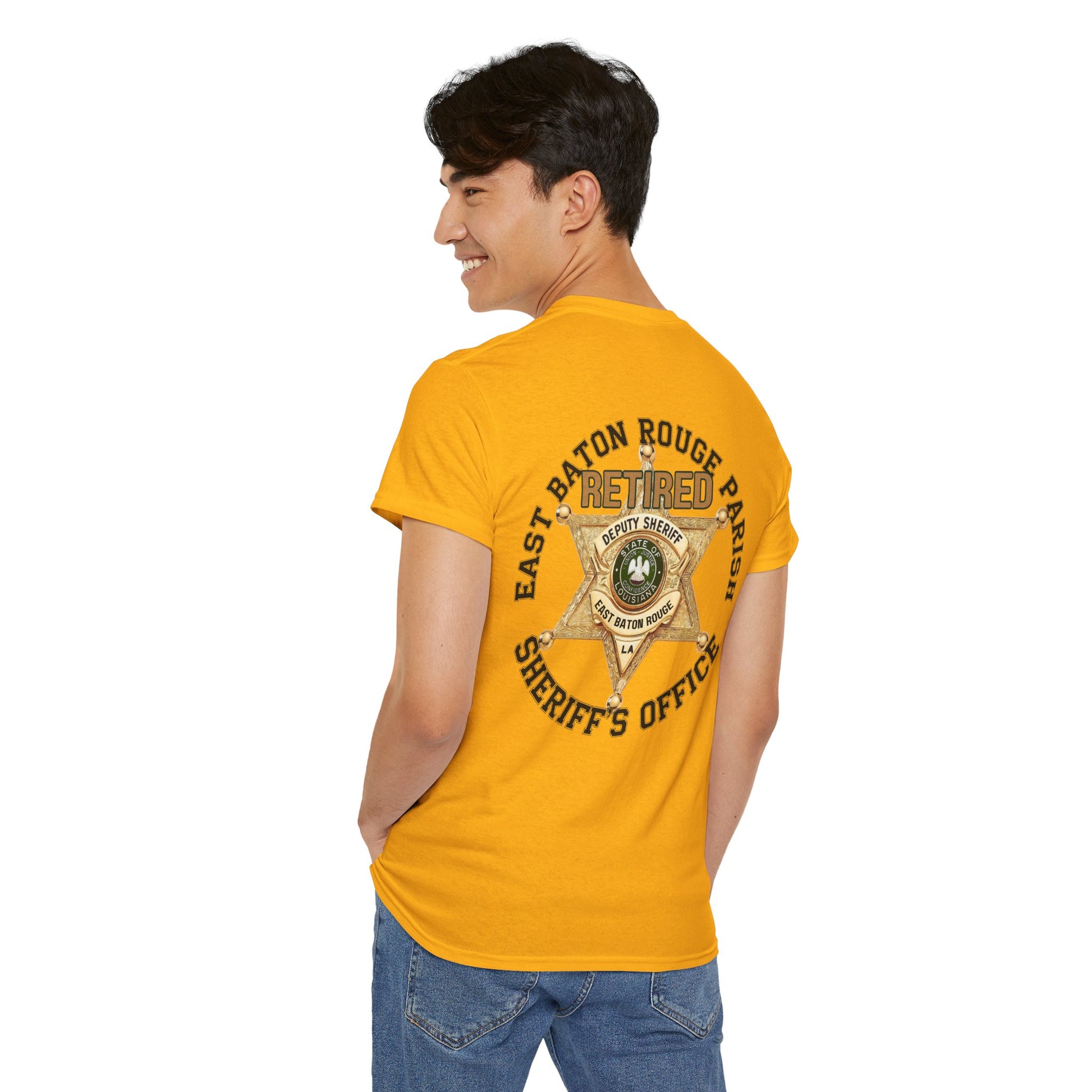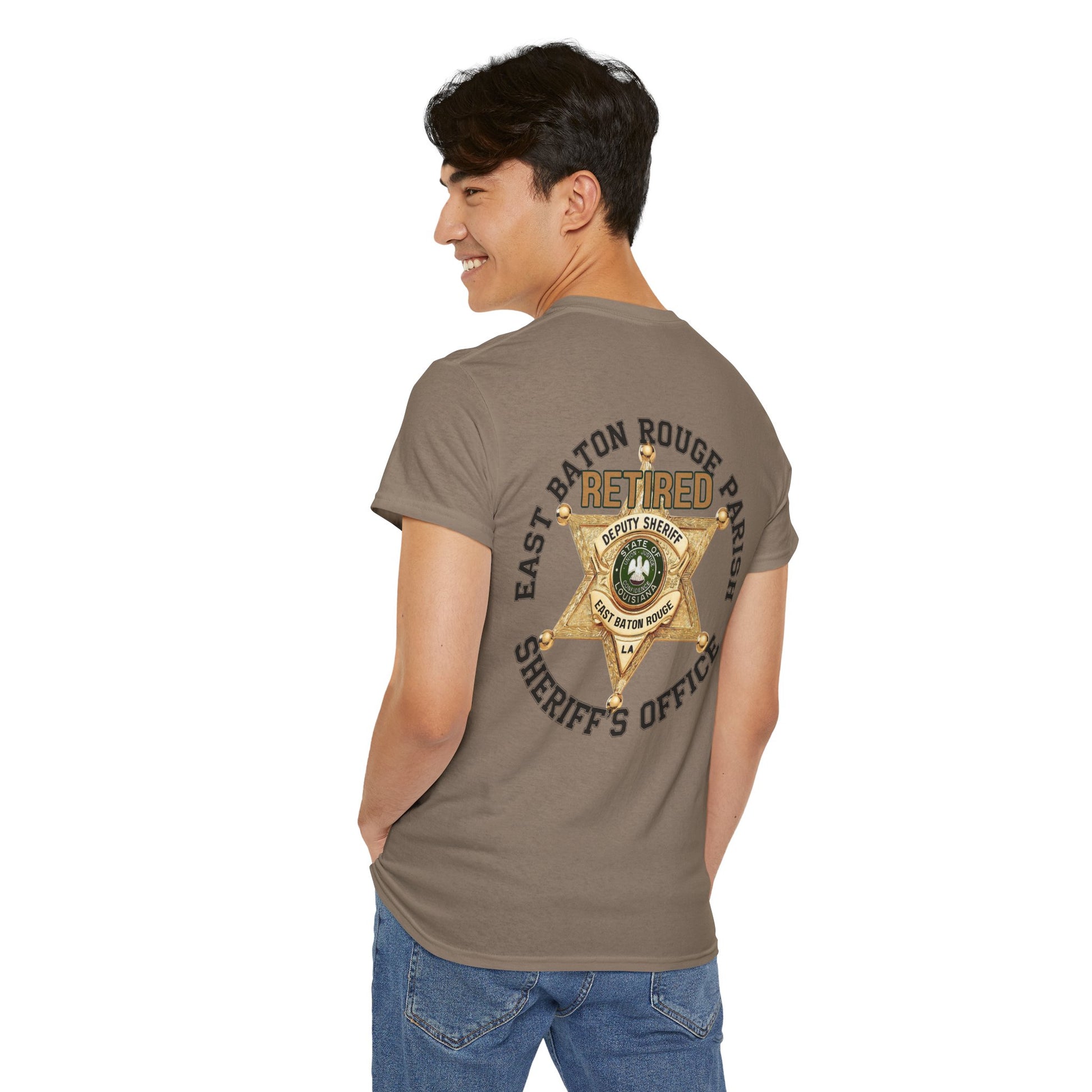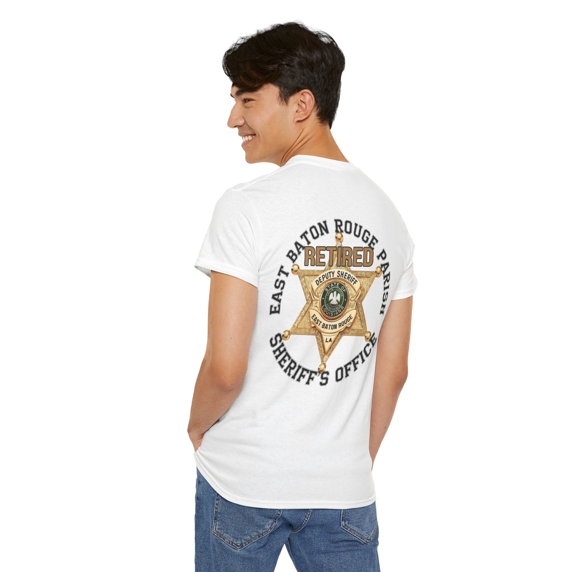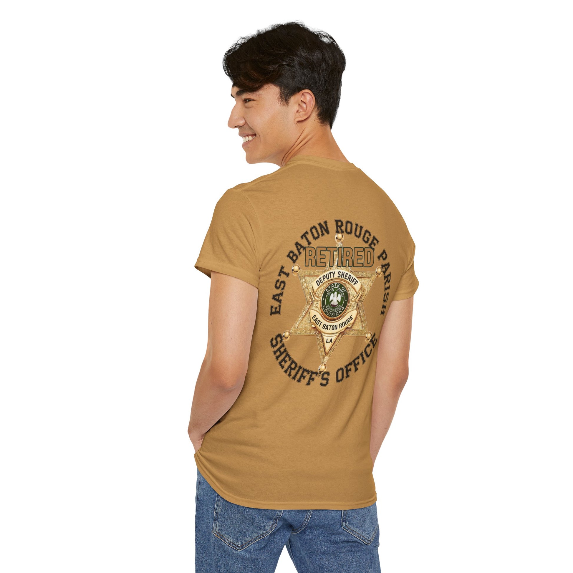 Pocket Front, Design on Back EBRSO Badge Retired Sheriff Heavy Cotton Tee, Unisex Tee, Law Enforcement Gift, Retirement Celebration T-shirt