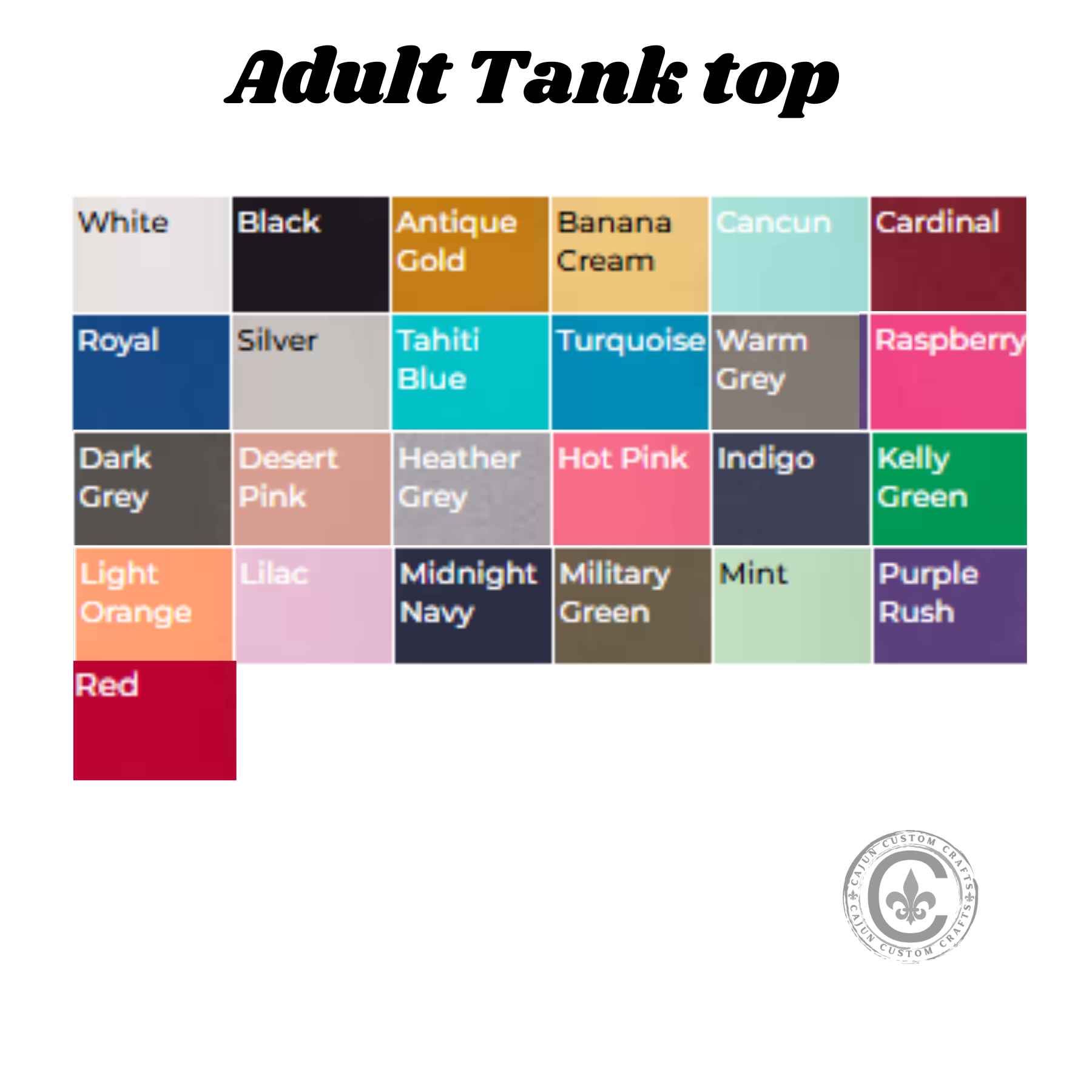 PLEASE MAKE SURE WHATEVER COLOR APPAREL YOU CHOOSE WILL GO WELL WITH THE DESIGN. EXAMPLE, IF THE DESIGN IS MOSTLY WHITE AND YOU SELECT A WHITE TOP, IT MAY NOT SHOW UP WELL