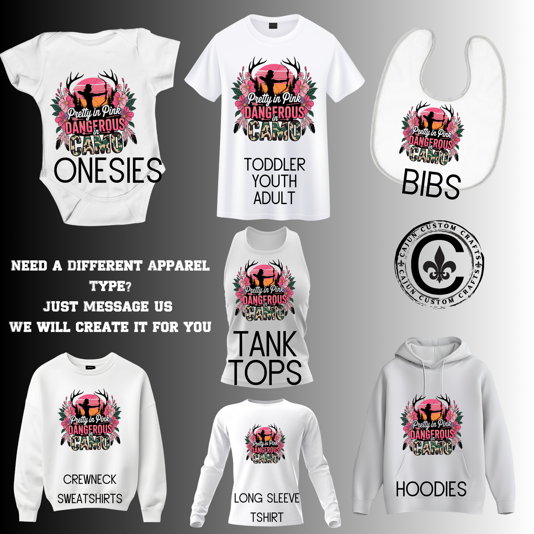 We are excited you found your way to our website! We are excited and hope to create great things for you! IF you have something in mind you are looking to order, we love creating custom items and hope to hear from you. Message us at cajuncustomcrafts@gmail.com