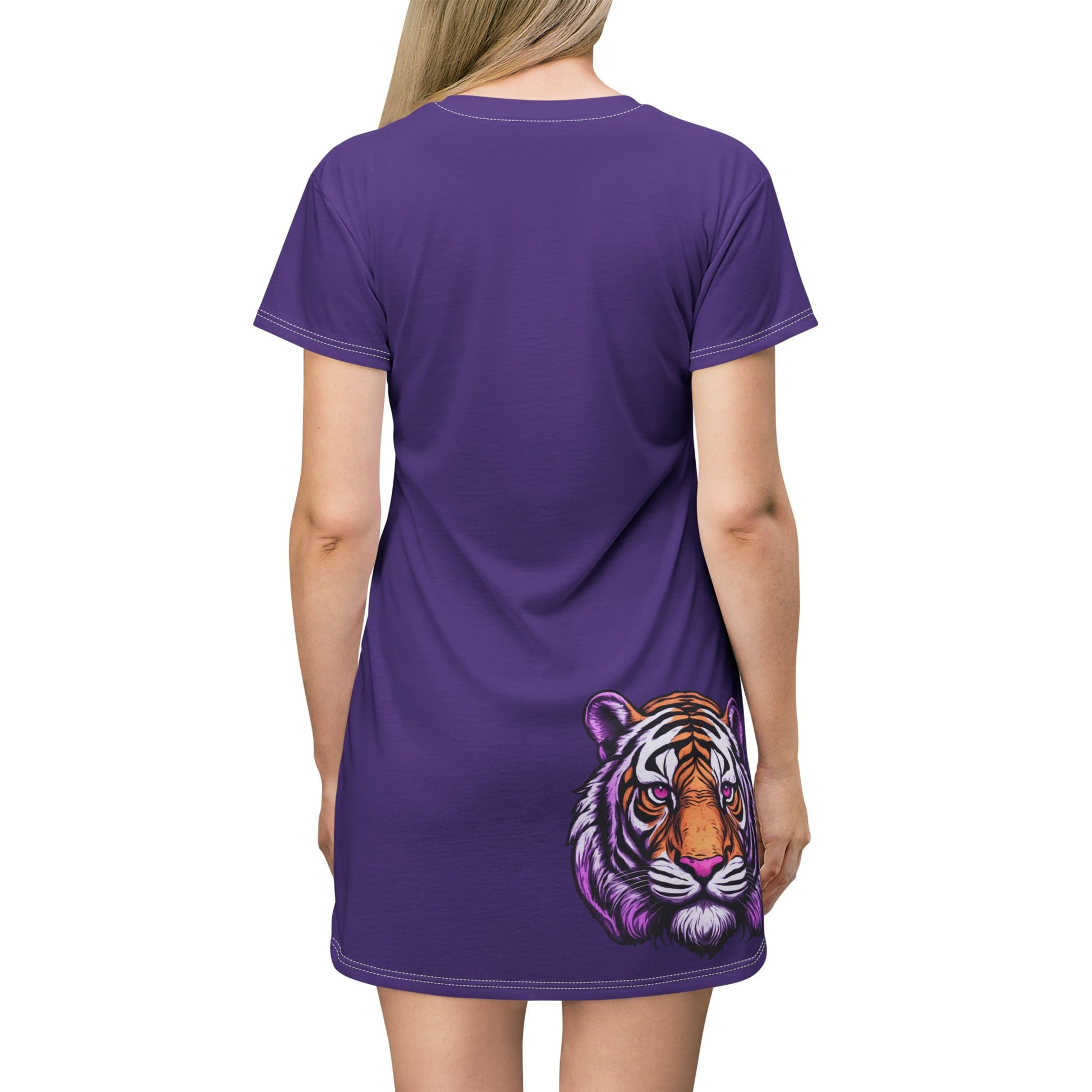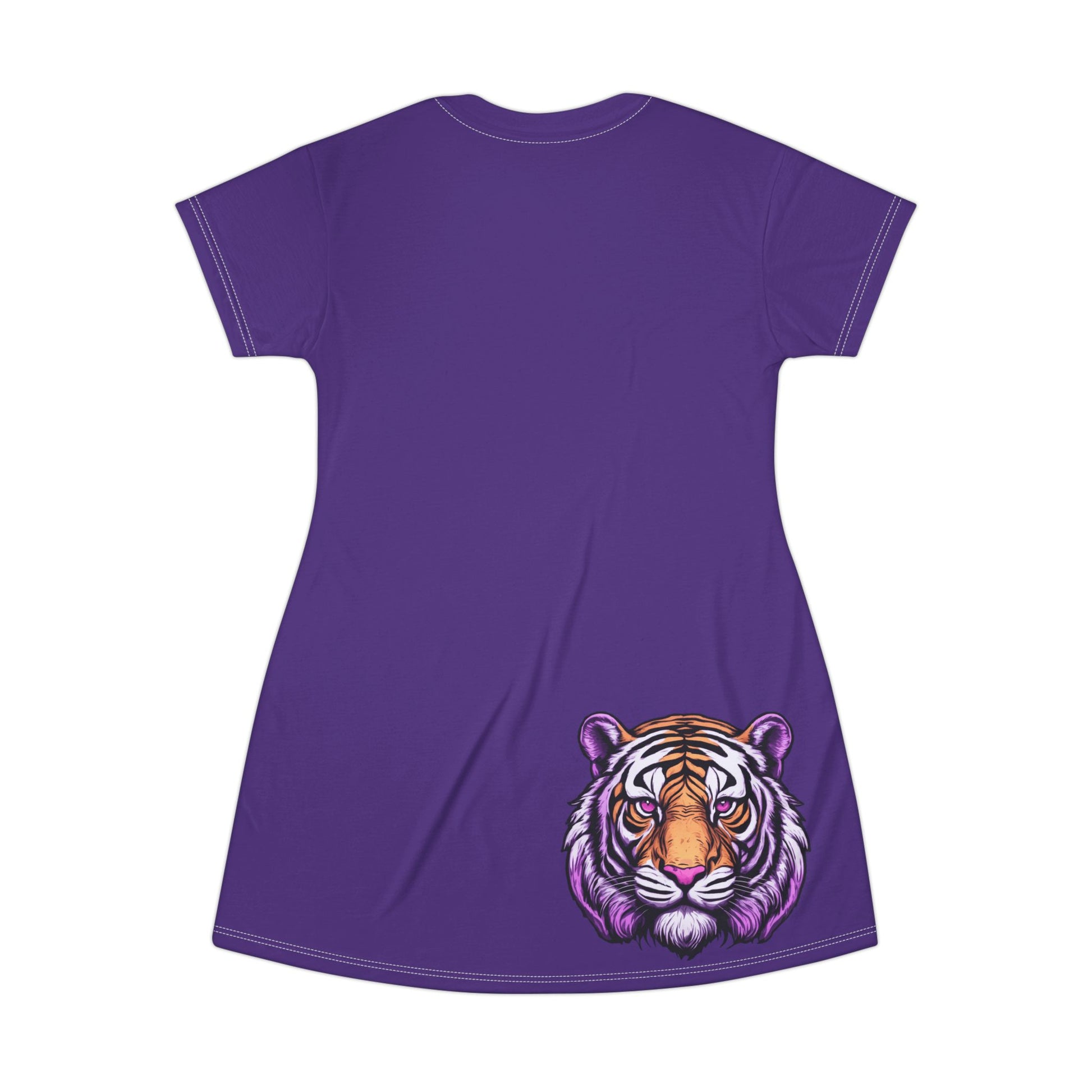 Purple Tiger Graphic T-Shirt Dress, Cute Casual Dress, Summer Fashion, Gift for Her, Game Day Outfit