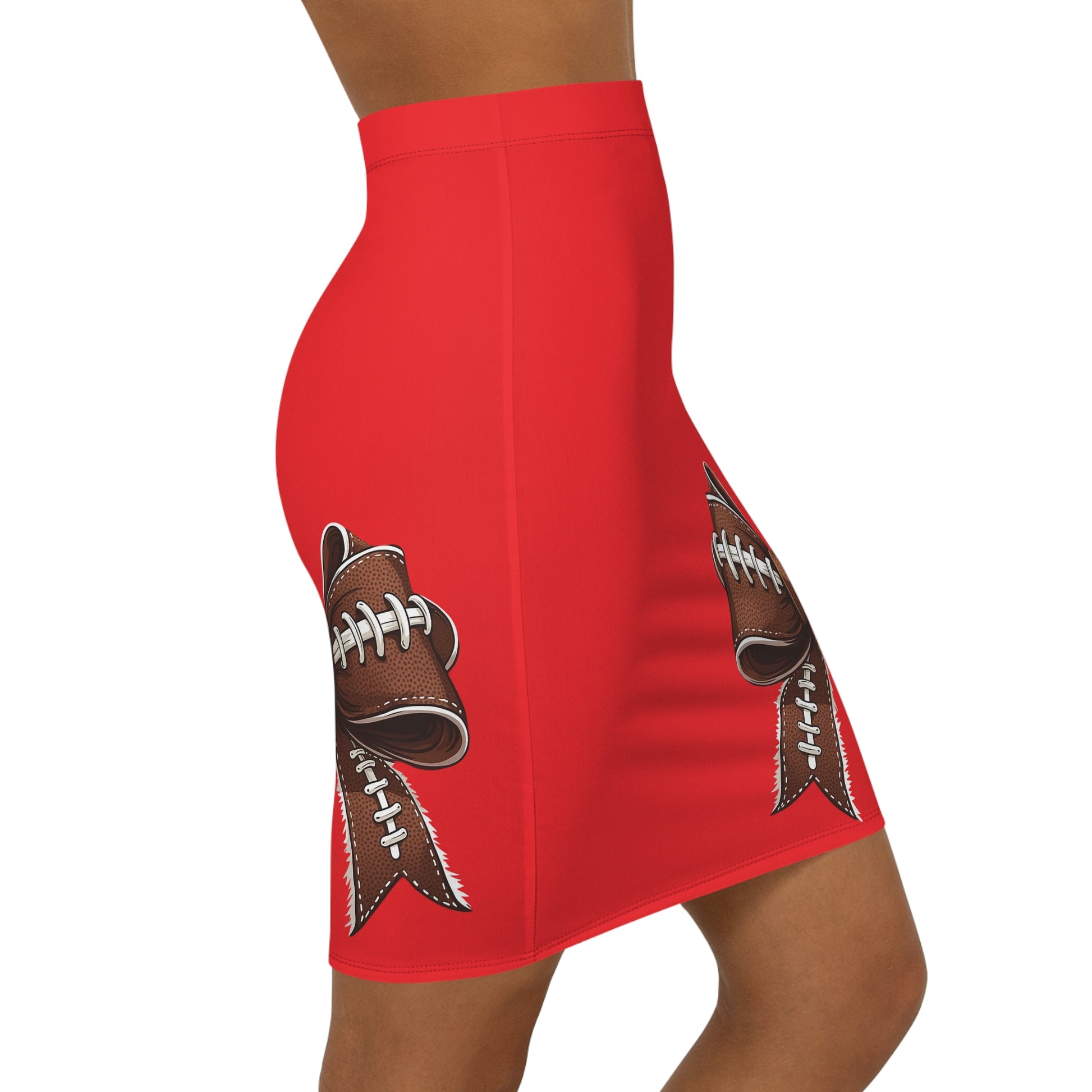 Red Football Bow Women's Pencil Skirt, Stylish Skirt Fun Night Out, Team Spirit! Game Day, homecoming