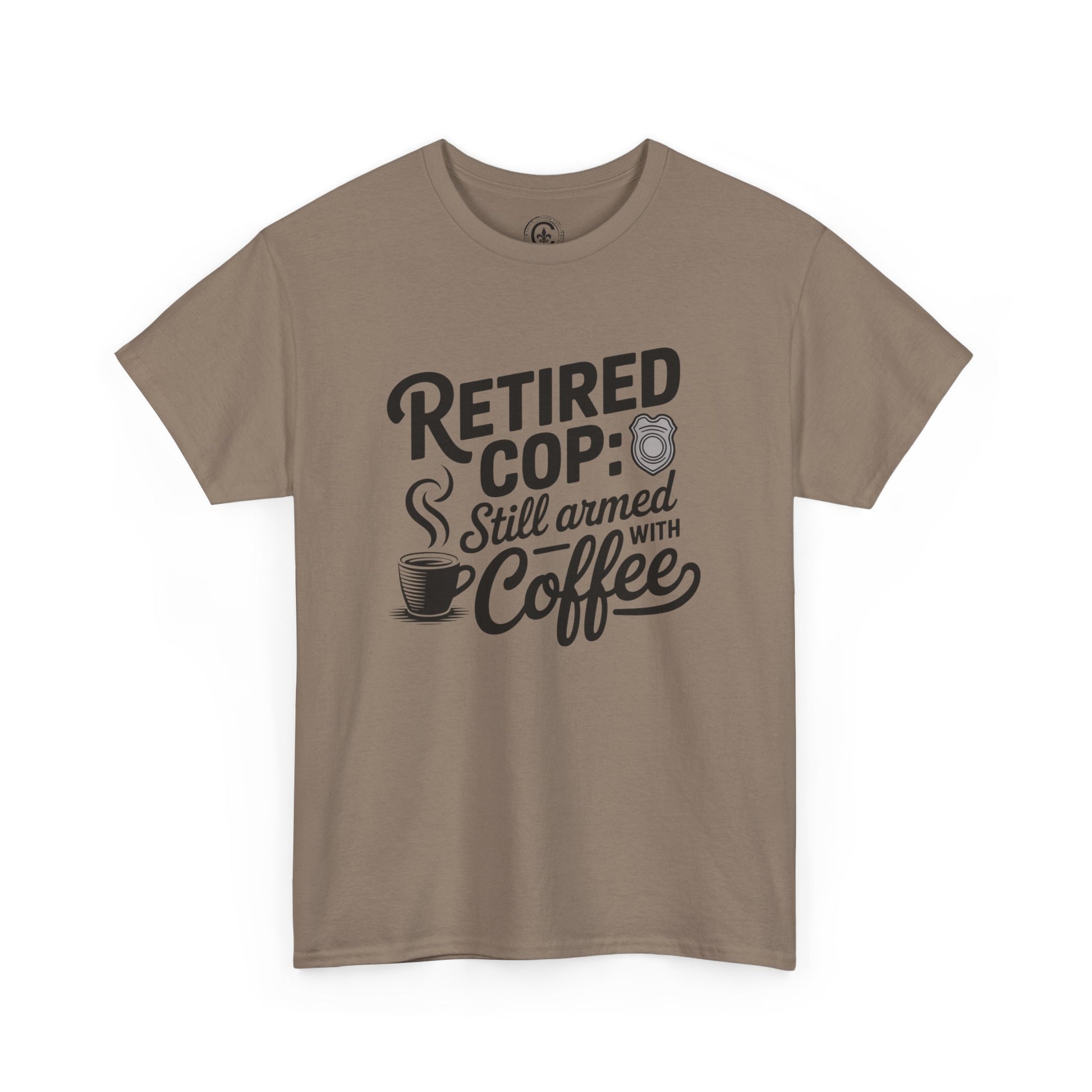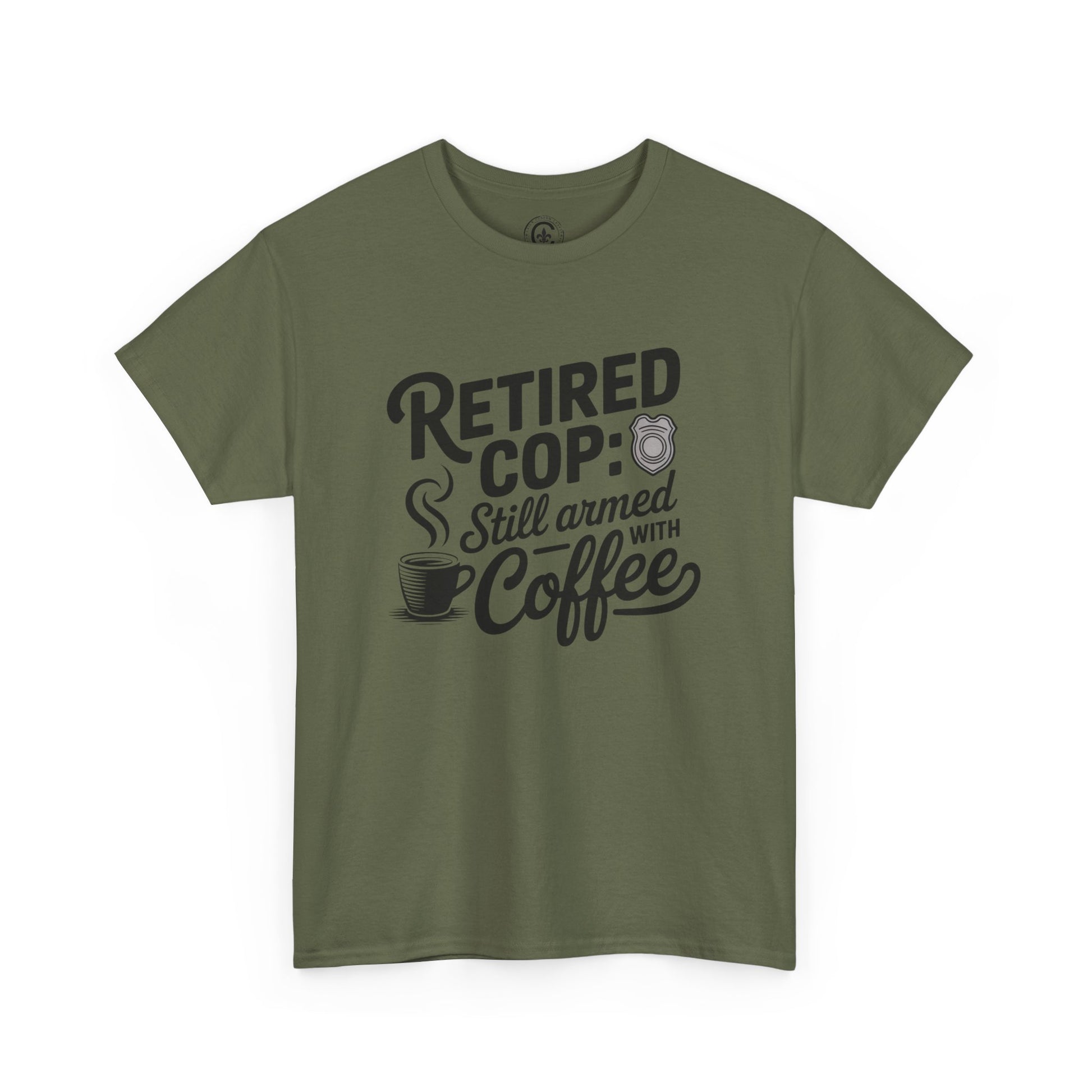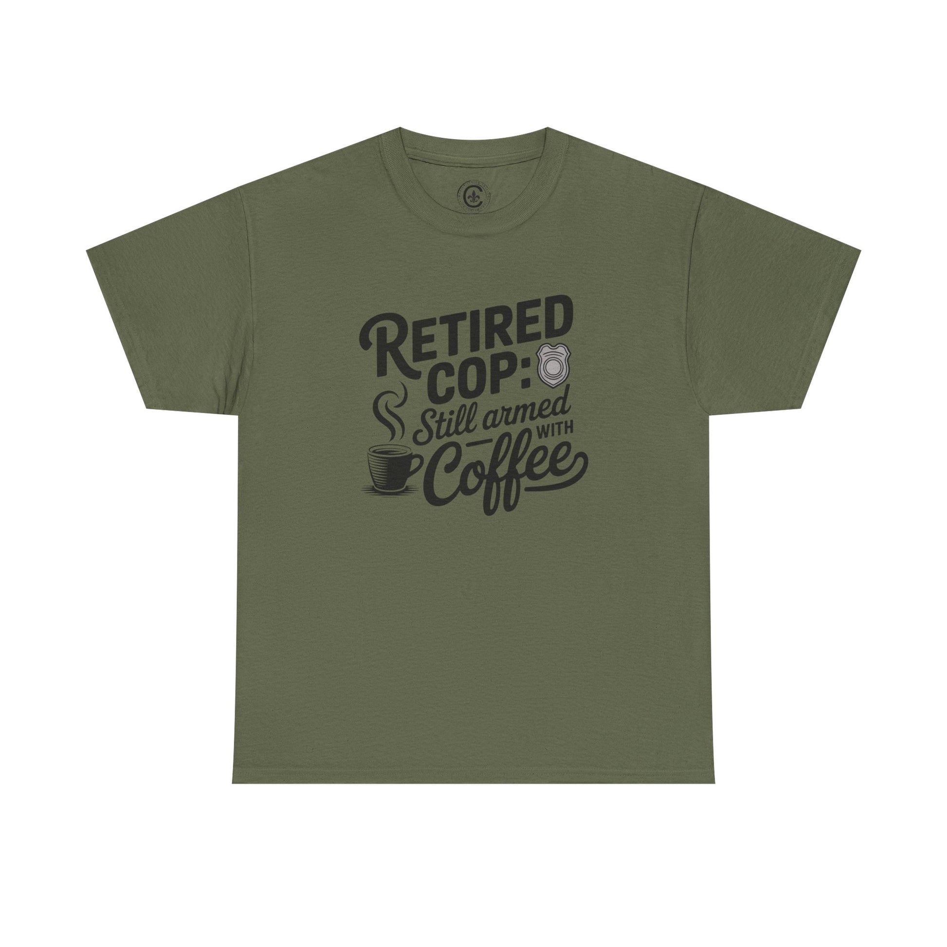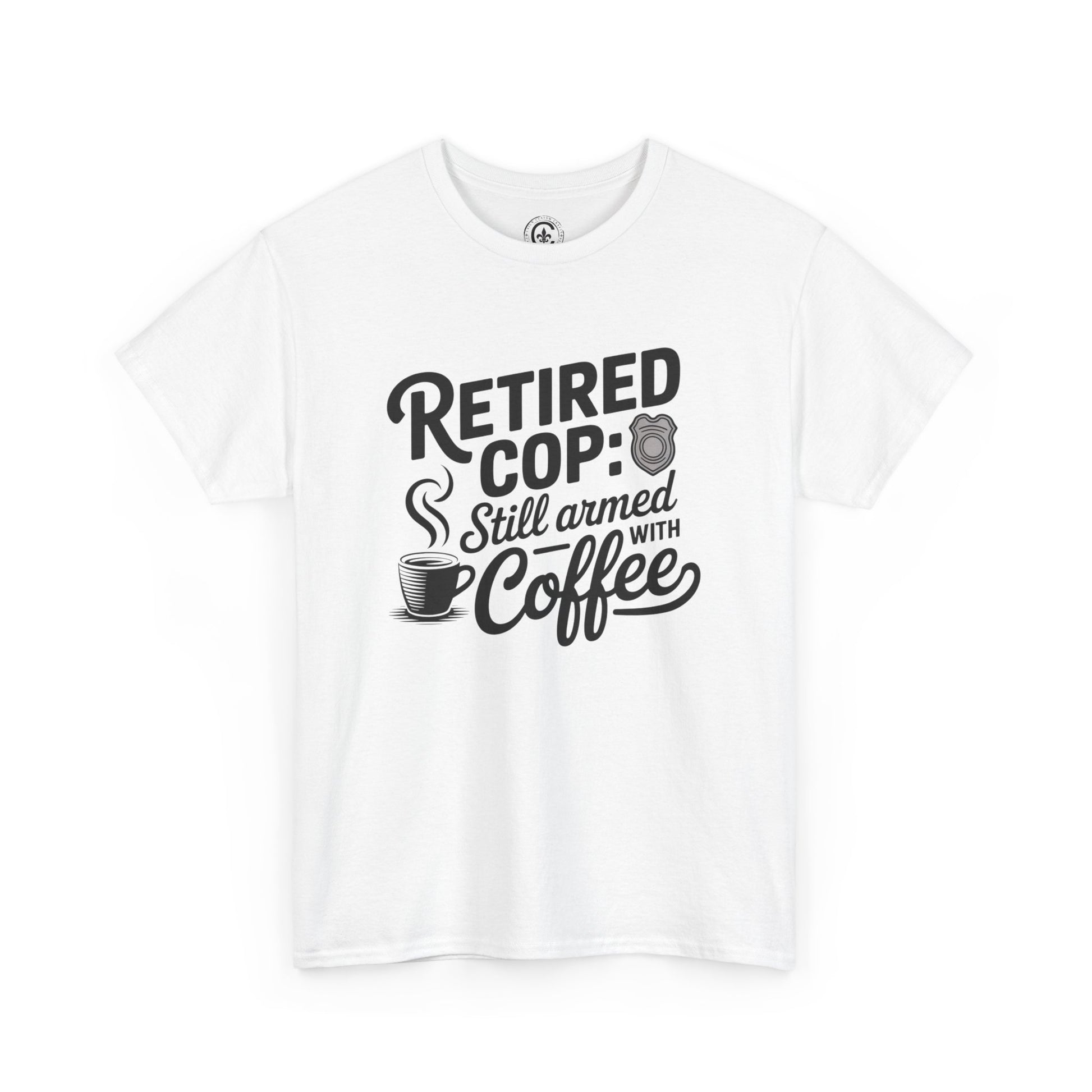Retired Cop still armed with coffee Graphic Tee, T-Shirt, Unisex Humor Shirt, Gifts for Friends, Casual Wear, law enforcement