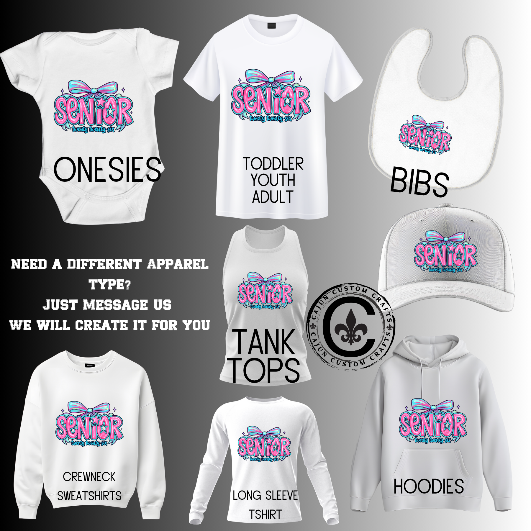 Choose from Infant, Toddler, Youth, Adult apparel for this design, all right here. We also have an array of other products listed s well. If you would like this item on another type of product, let us know if you don't already see it in the store.