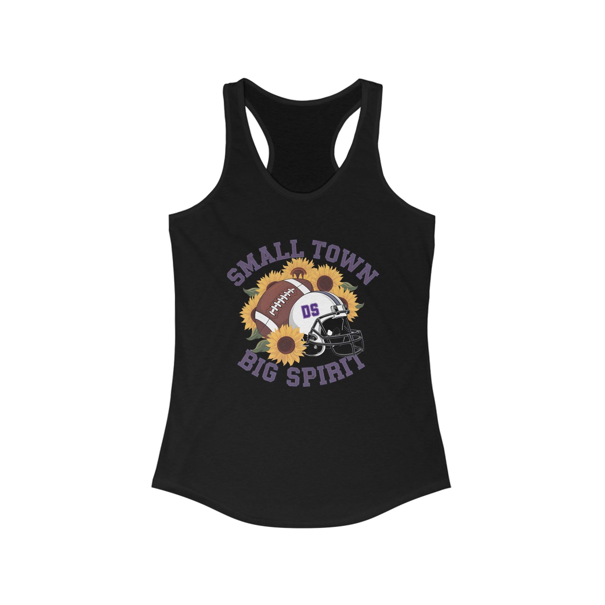 Small town, Big Spirit, Denham Springs, Football, Women's Racerback Tank Top, Perfect for Game Day, Sports Events, Tailgating, and Everyday Wear