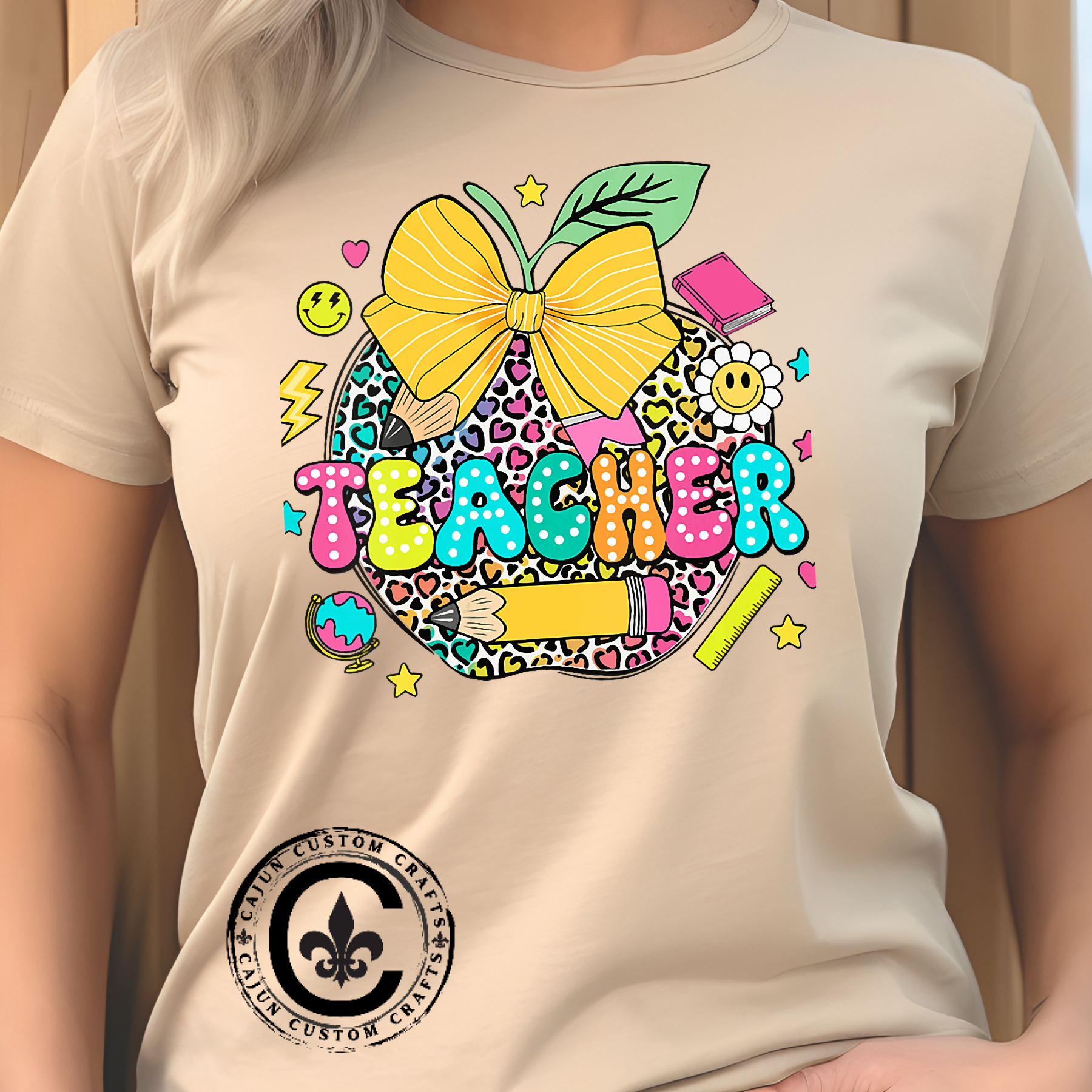 Teacher, Apple, Leopard, Cute, Back to school, Design, Tshirt