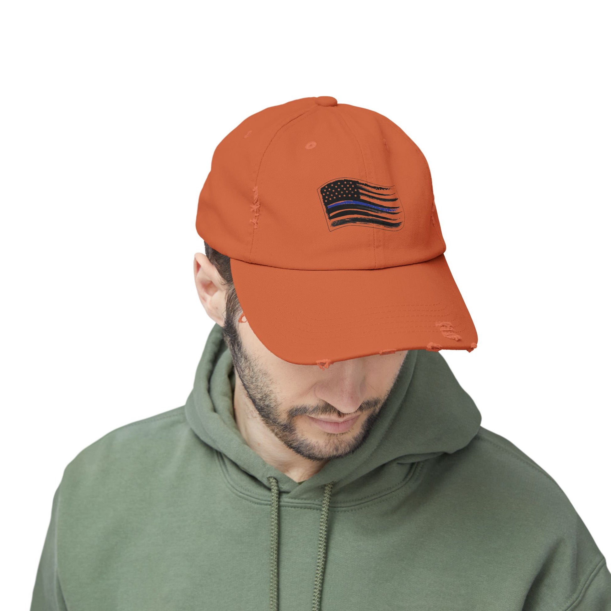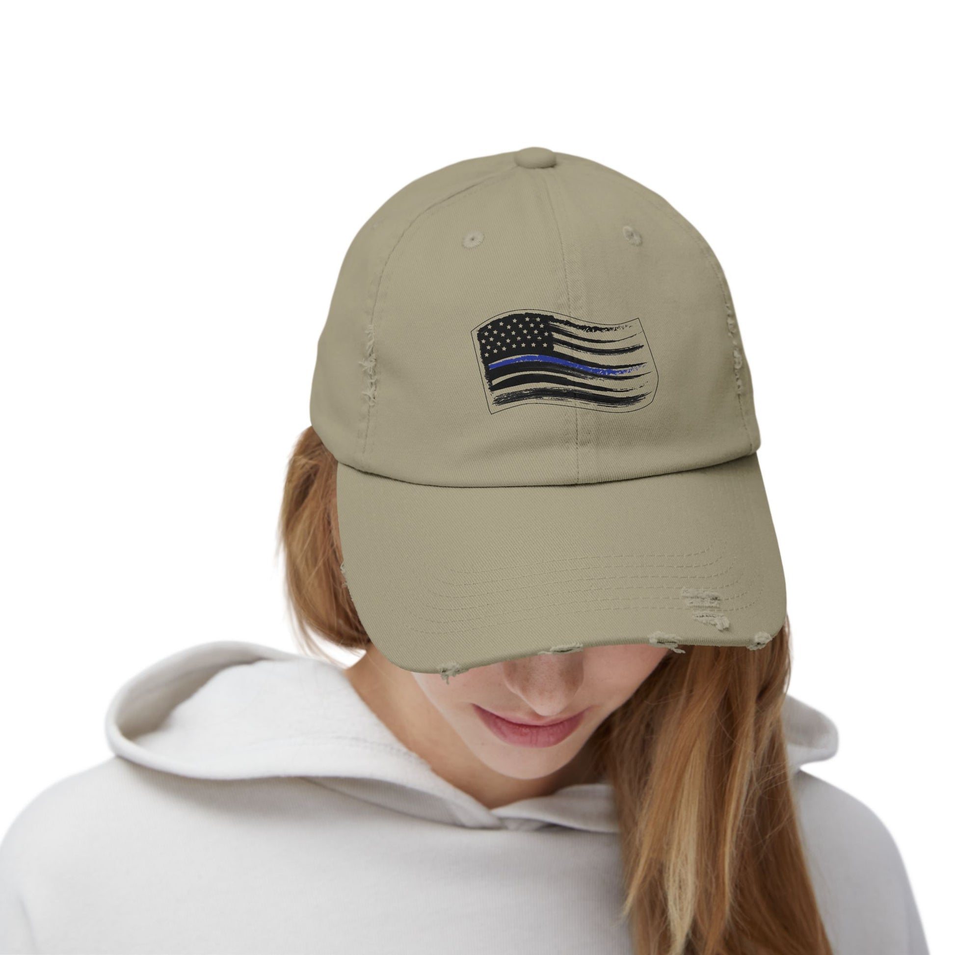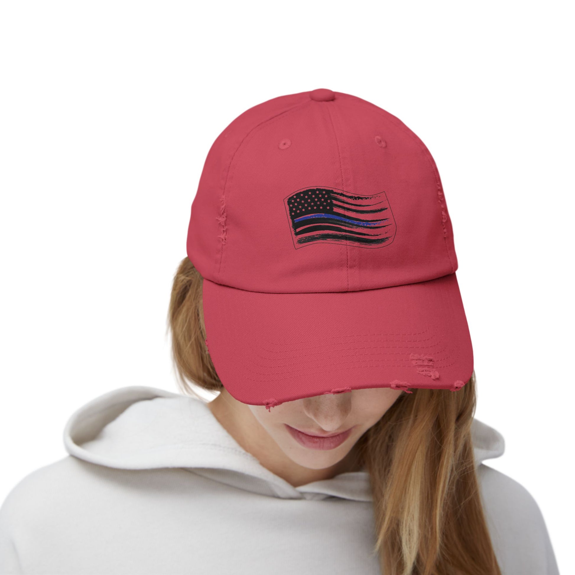 Thin Blue Line Flag, Unisex Distressed Cap, Funny Hat, Casual Gift, Everyday Wear, Cool Accessory, Adjustable Cap