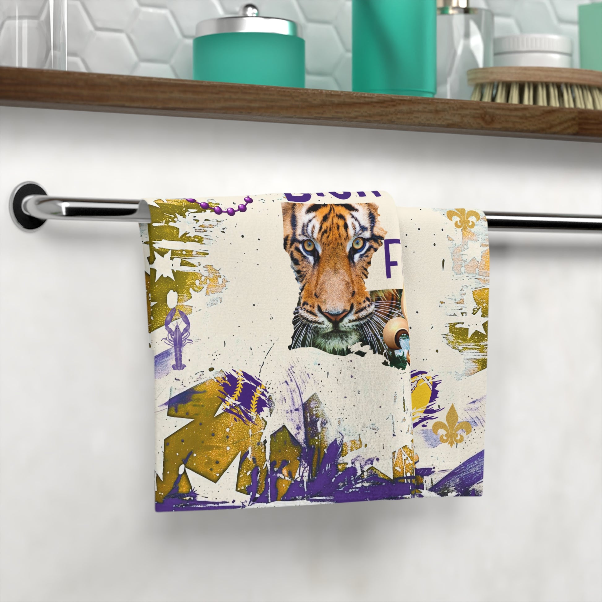 Vibrant Tigers Face Towel, Fun Gift for Home Decor, I'm from Louisiana