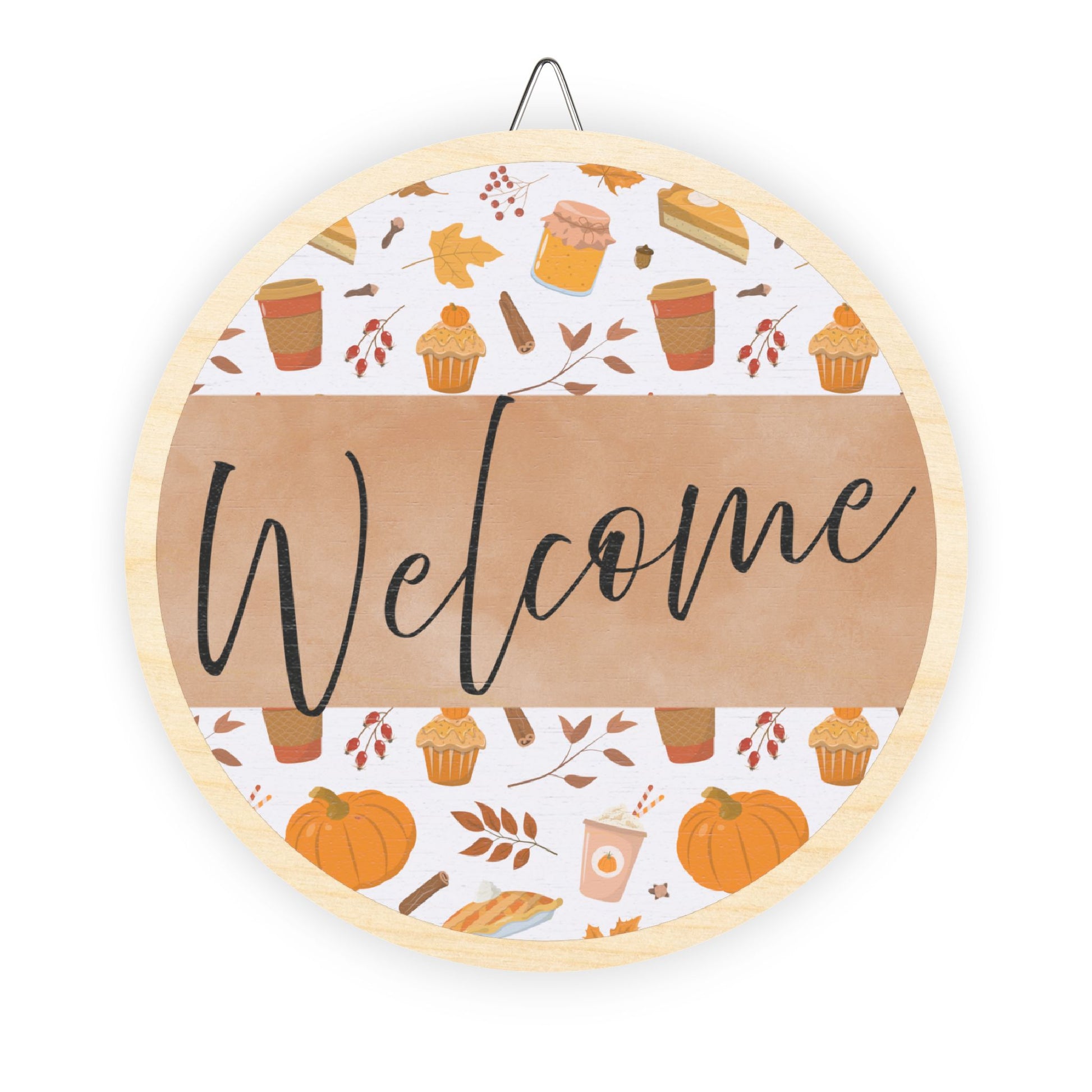 Welcome, Fall, Pumpkins, Cupcakes, Coffee, Door, Decor, Sign, Wreath, Wooden Door Hanger