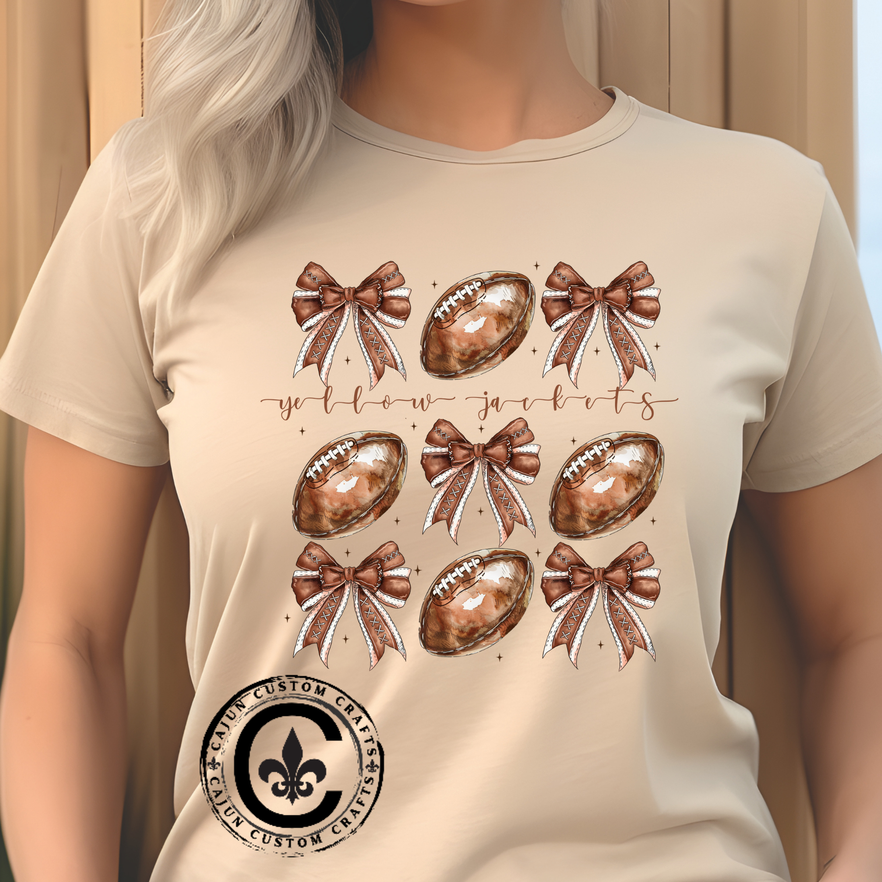 Yellow Jackets Football with bows, Tshirt, Football Season
